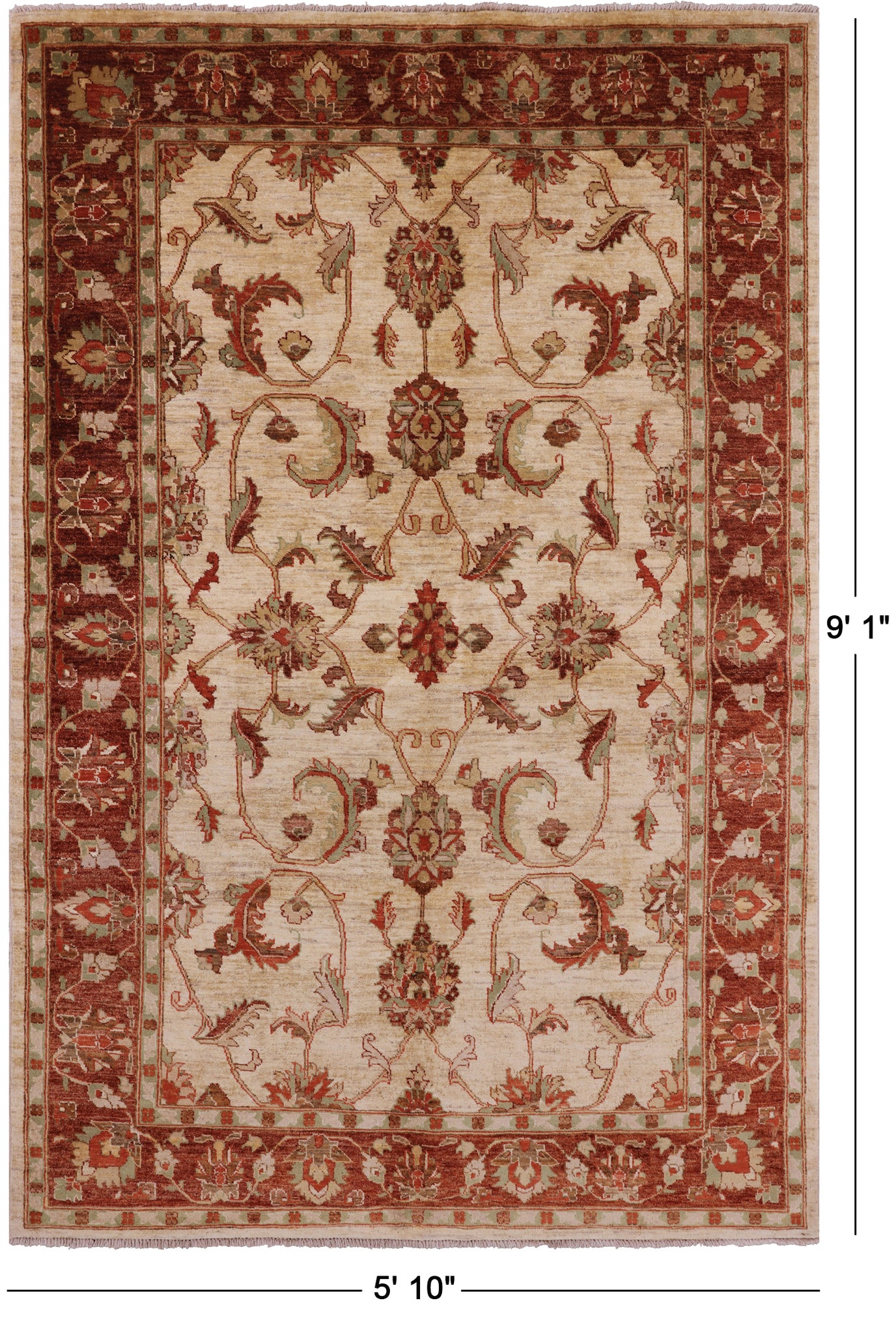 Ivory Peshawar Hand Knotted Rug - 5' 10" X 9' 1"