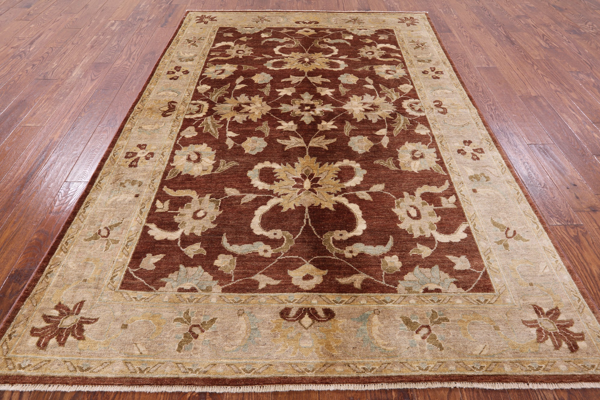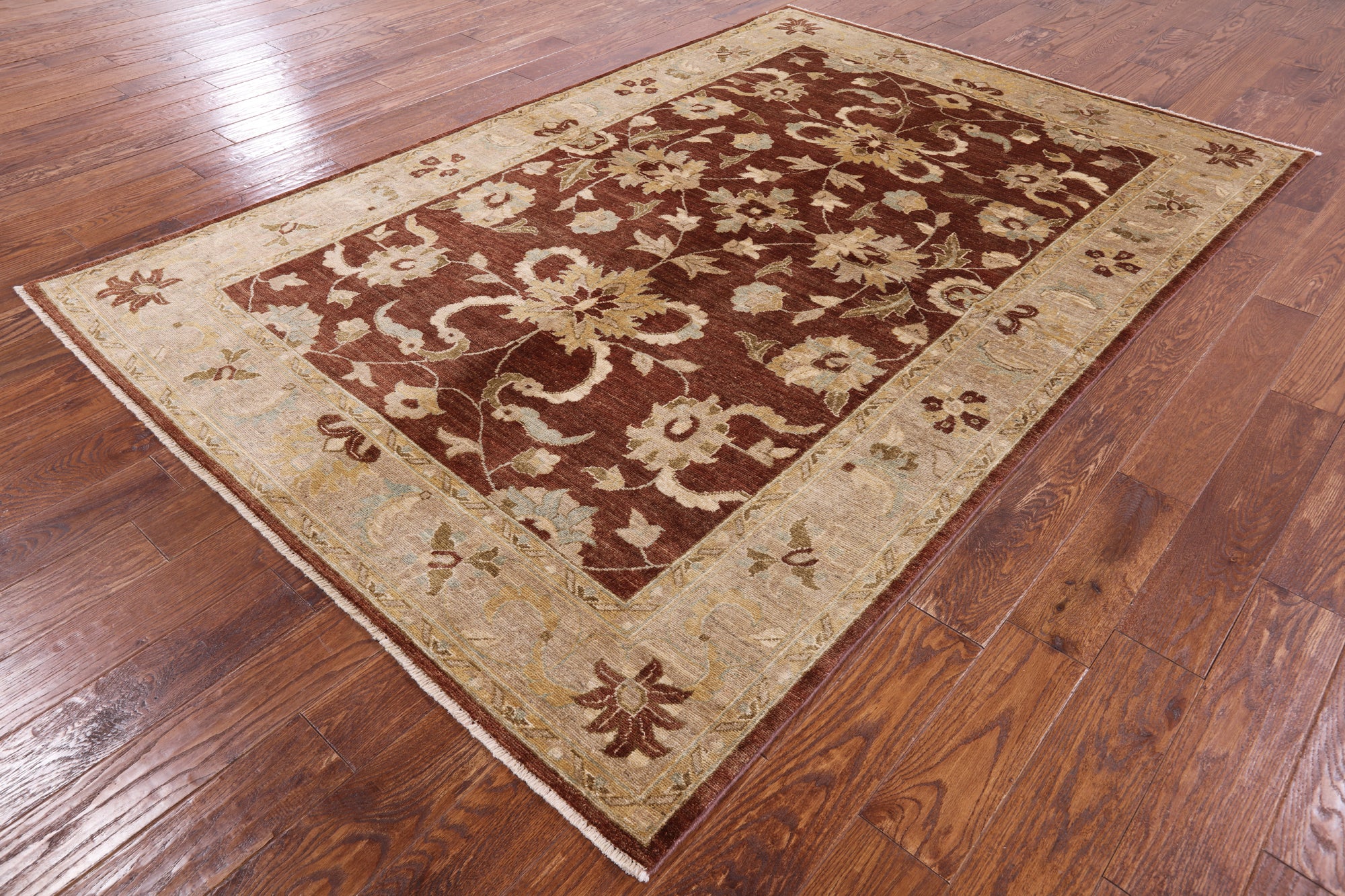 Brown Chobi Peshawar Hand Knotted Wool Area Rug - 6' 0" X 8' 9"
