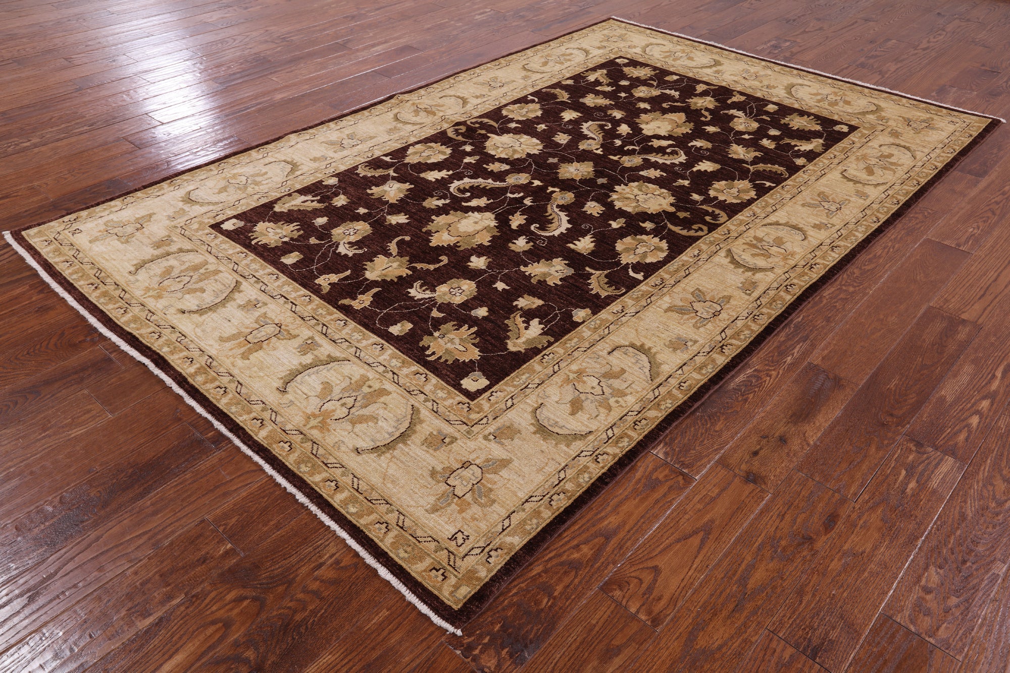 Brown Chobi Peshawar Hand Knotted Wool Area Rug - 6' 0" X 9' 2"