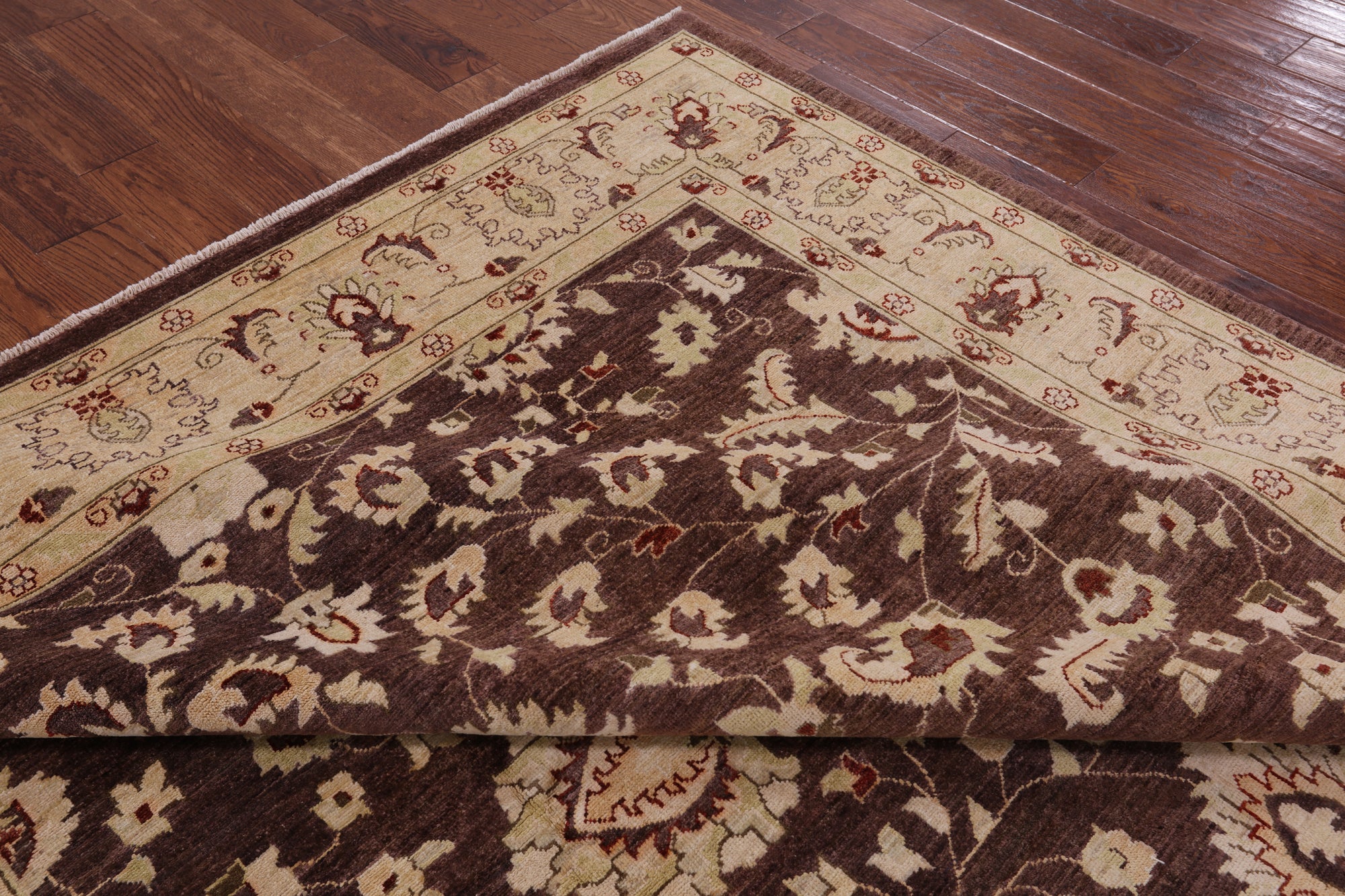 Brown Chobi Peshawar Handmade Wool Area Rug - 8' 1" X 9' 10"