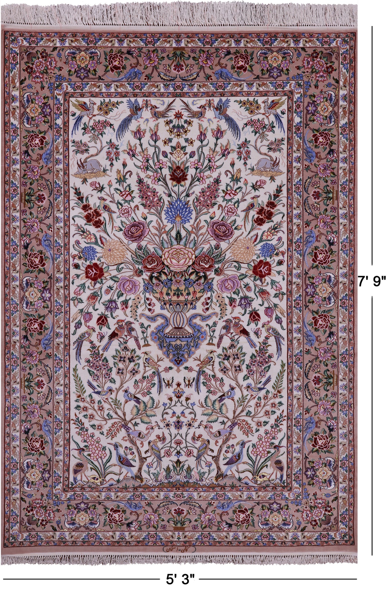 Ivory Isfahan Authentic Persian Hand Knotted Wool & Silk Area Rug - 5' 3" X 7' 9"
