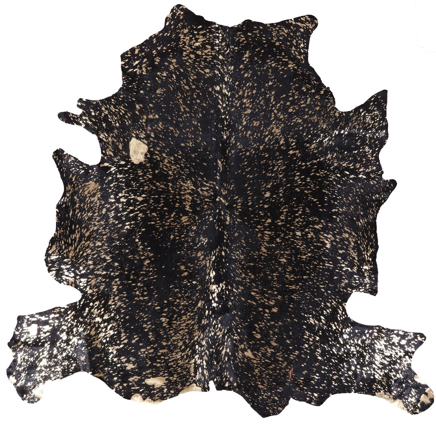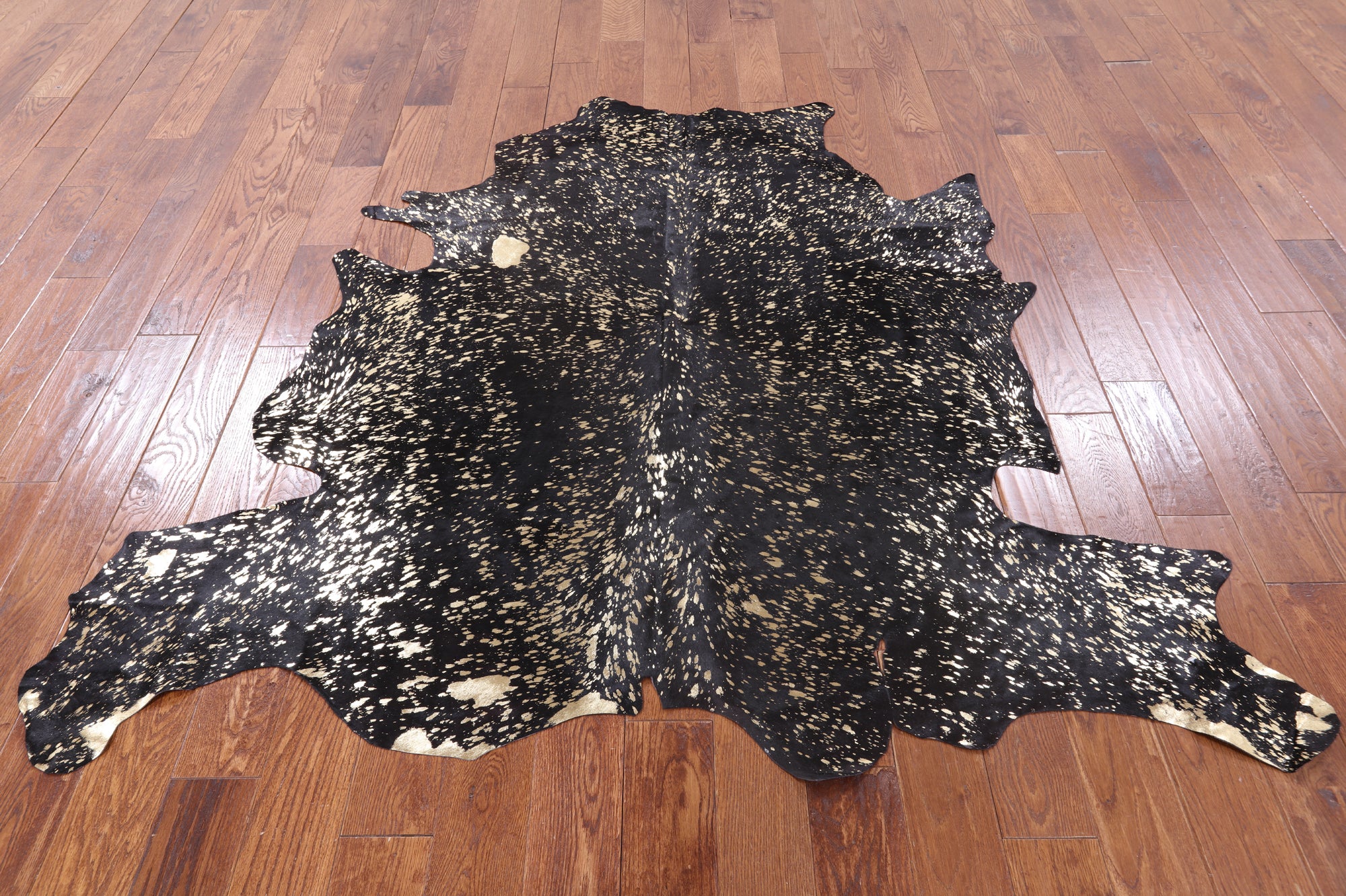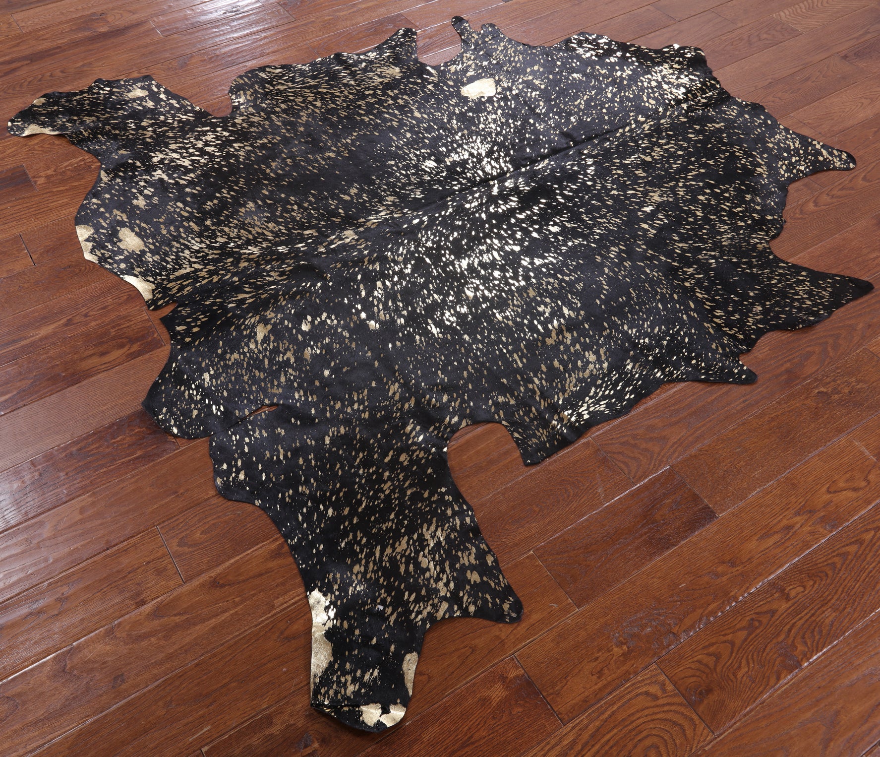 Cowhide Hairhide Metallic Gold on Black Rug - 5' 9" X 6' 4"
