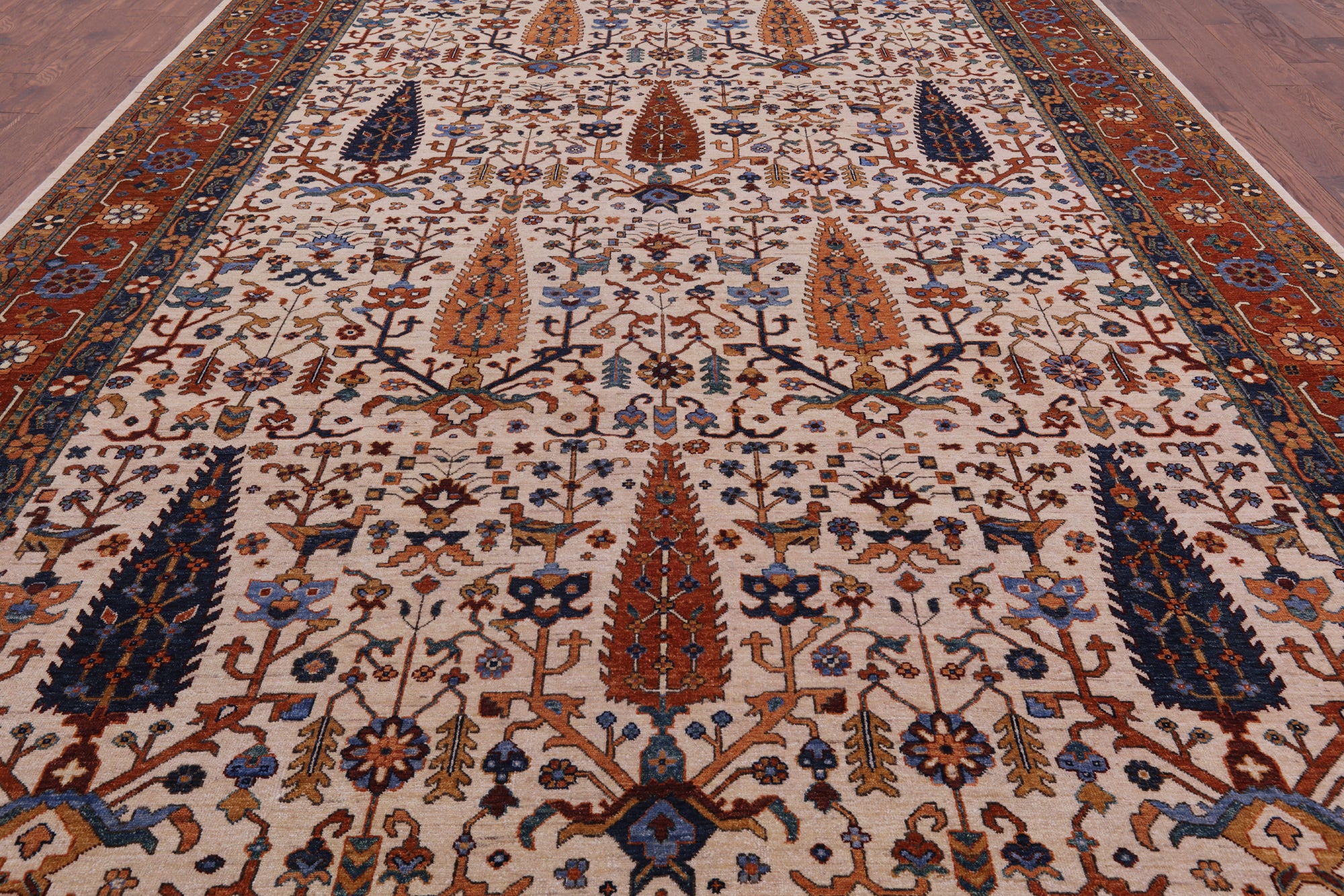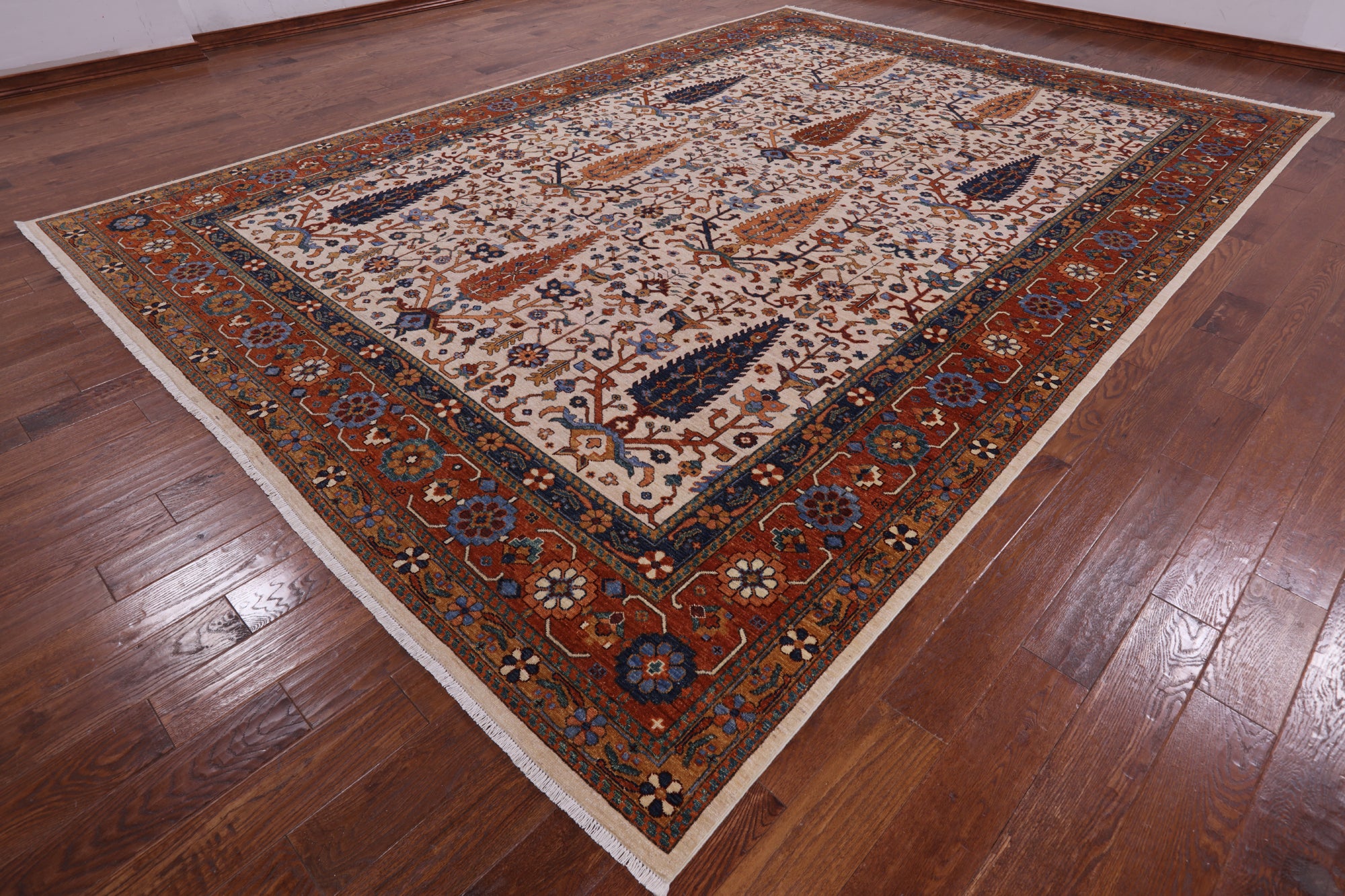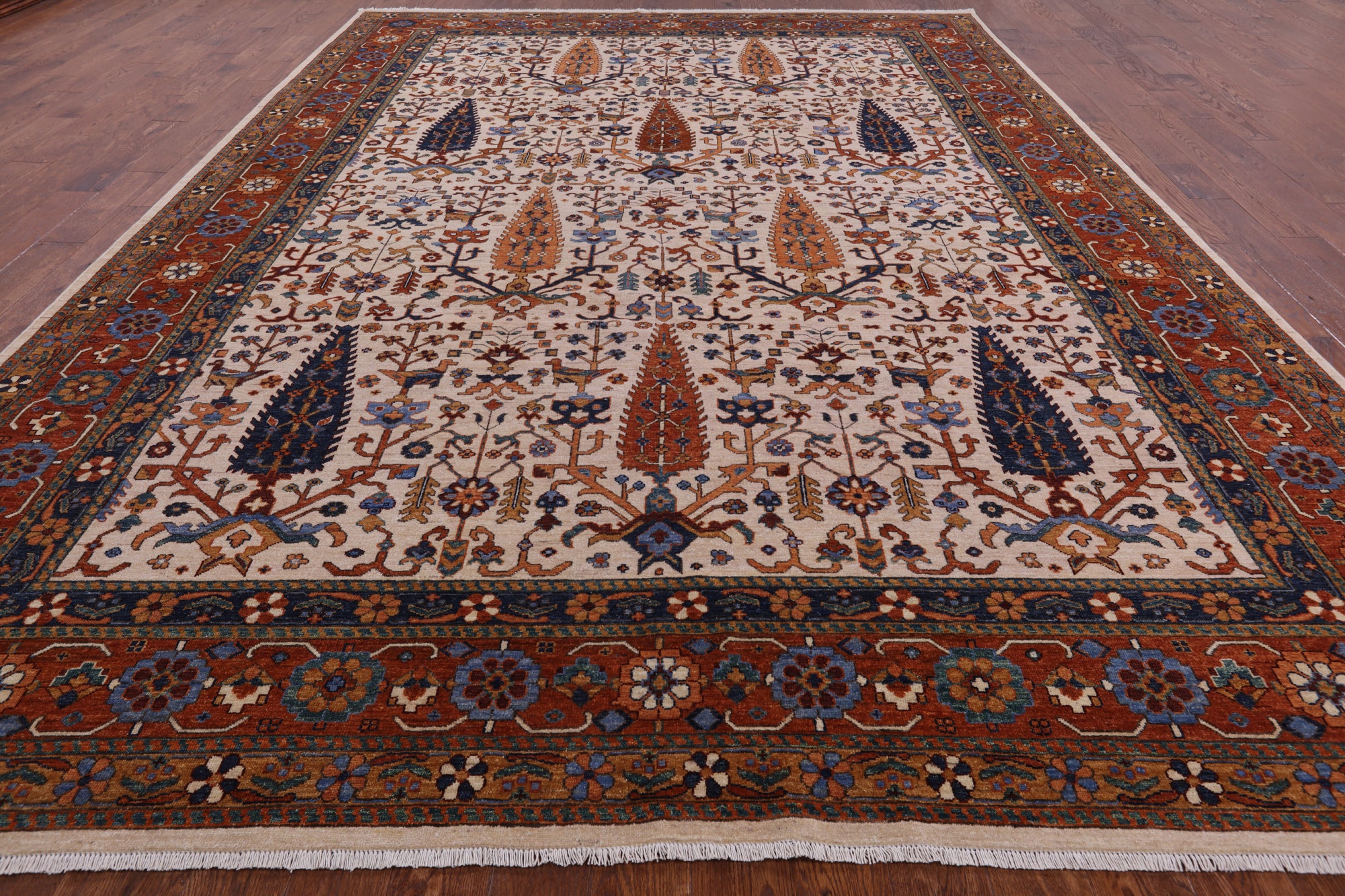 Ivory Cypress Tree Hand Knotted Wool Rug - 10' 0" X 14' 1"