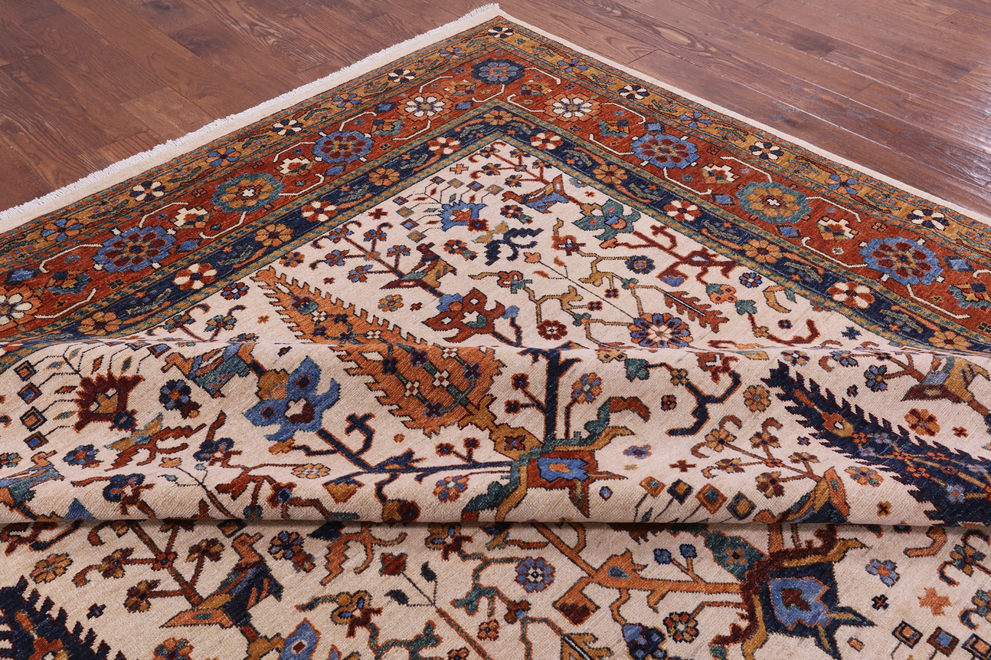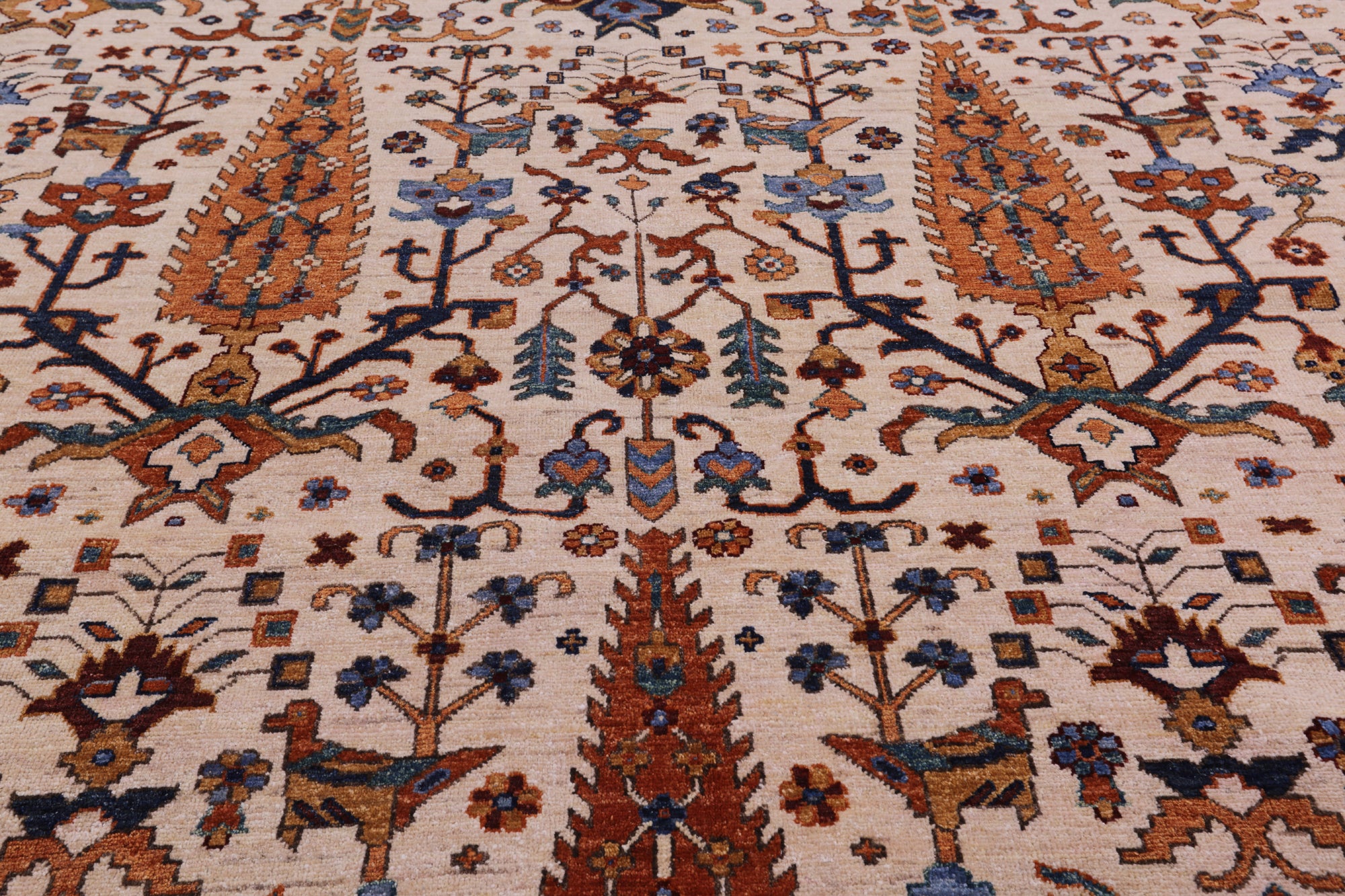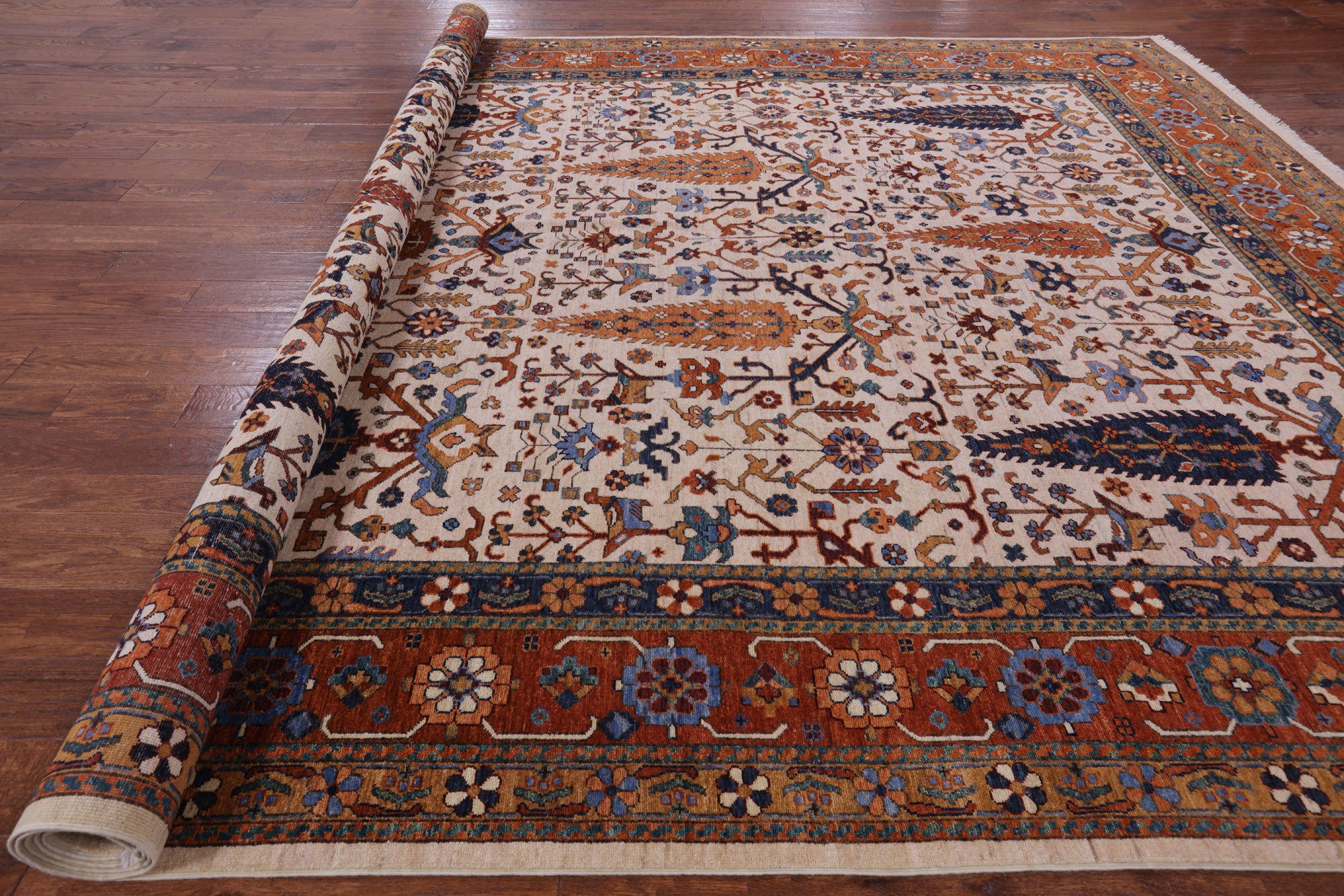 Ivory Cypress Tree Hand Knotted Wool Rug - 10' 0" X 14' 1"