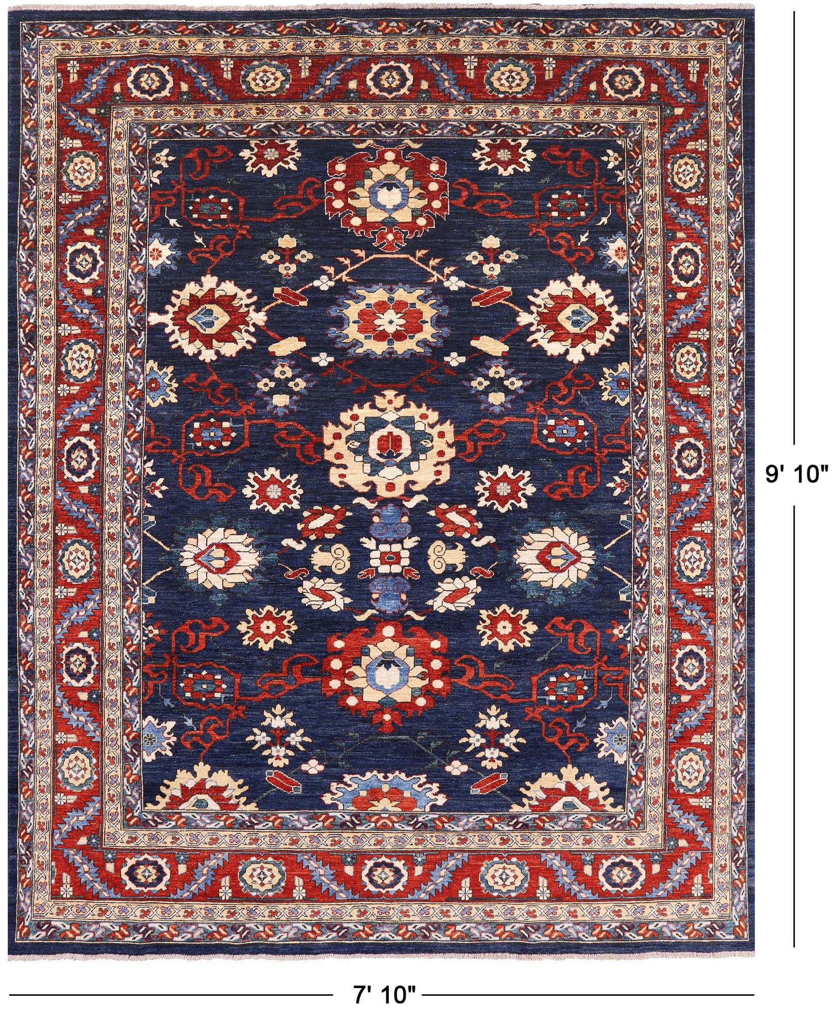 Serapi Rugs also known as Heriz, are known as the best handmade carpets with both geometric and curvilinear floral patterns. Their geometric figures, unique colors, high-quality construction and attention to detail makes Serapi Rugs the most iconic styles of Persian Rugs. Their colors consist of unique shades of blue, black, red, green & ivory.