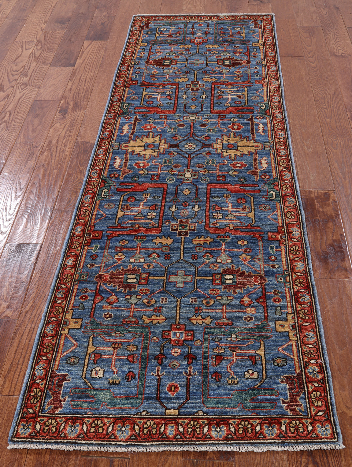 The nature-inspired color palette of Serapi/Heriz rugs gives them an antique look, which has historically sought after for many years. They commonly feature intricate medallions, followed by abstract florals and geometric designs. What makes the Serapi/Heriz so desirable, is their high endurance and longevity under high traffic. Serapi/Heriz rugs are constructed by a labor intensive hand knotting process, made from thick plush piles of wool.