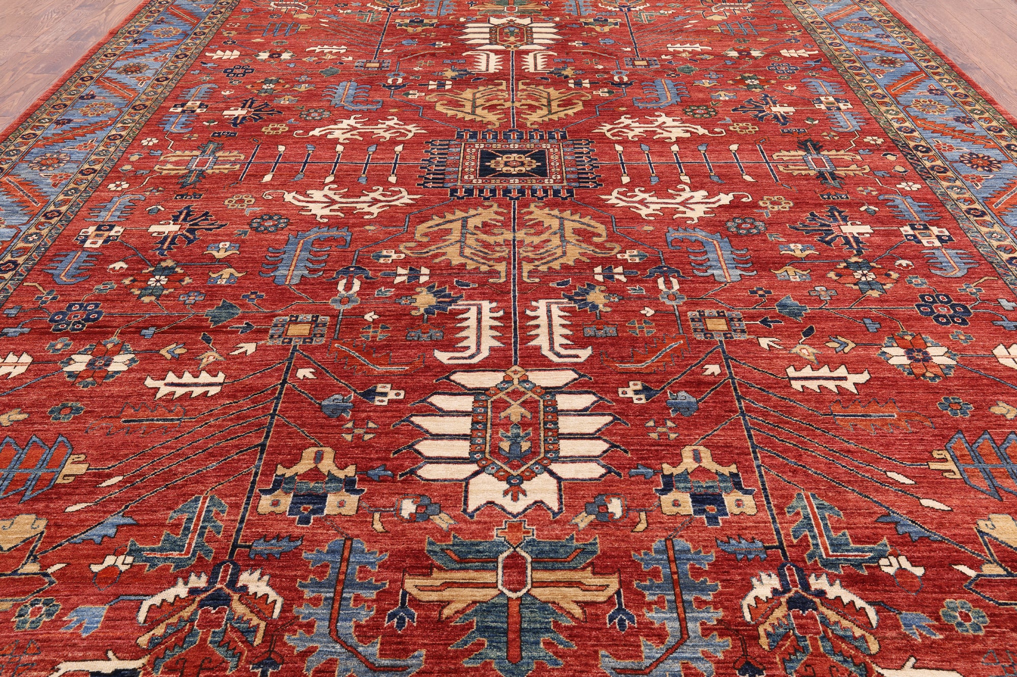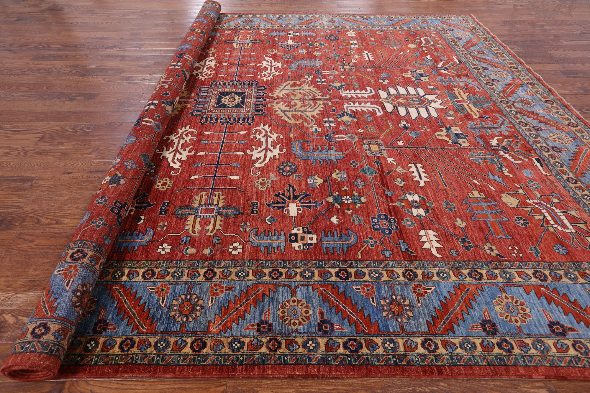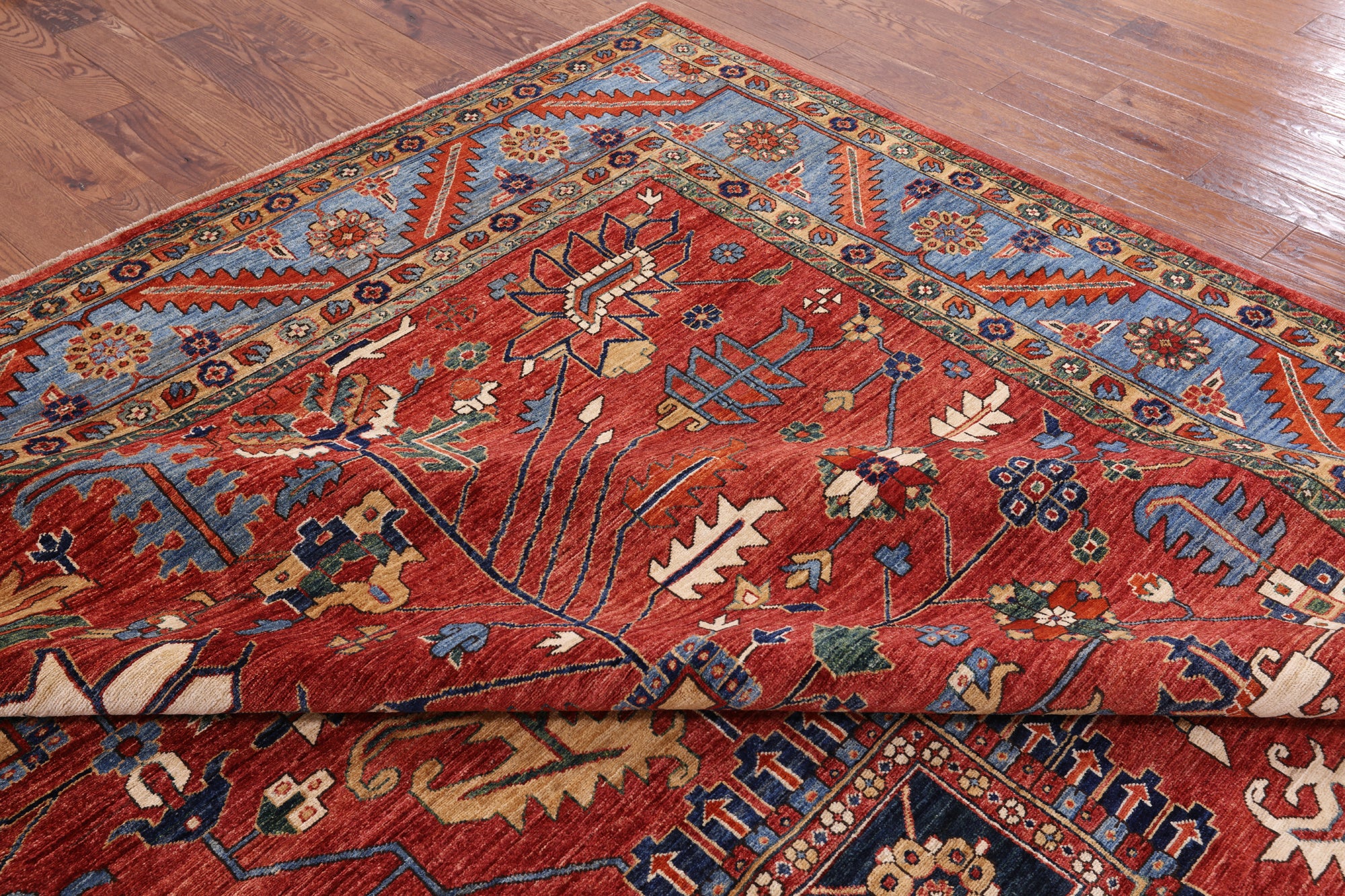 Serapi Rugs also known as Heriz, are known as the best handmade carpets with both geometric and curvilinear floral patterns. Their geometric figures, unique colors, high-quality construction and attention to detail makes Serapi Rugs the most iconic styles of Oriental Rugs. Their colors consist of unique shades of blue, black, red, green & ivory.
