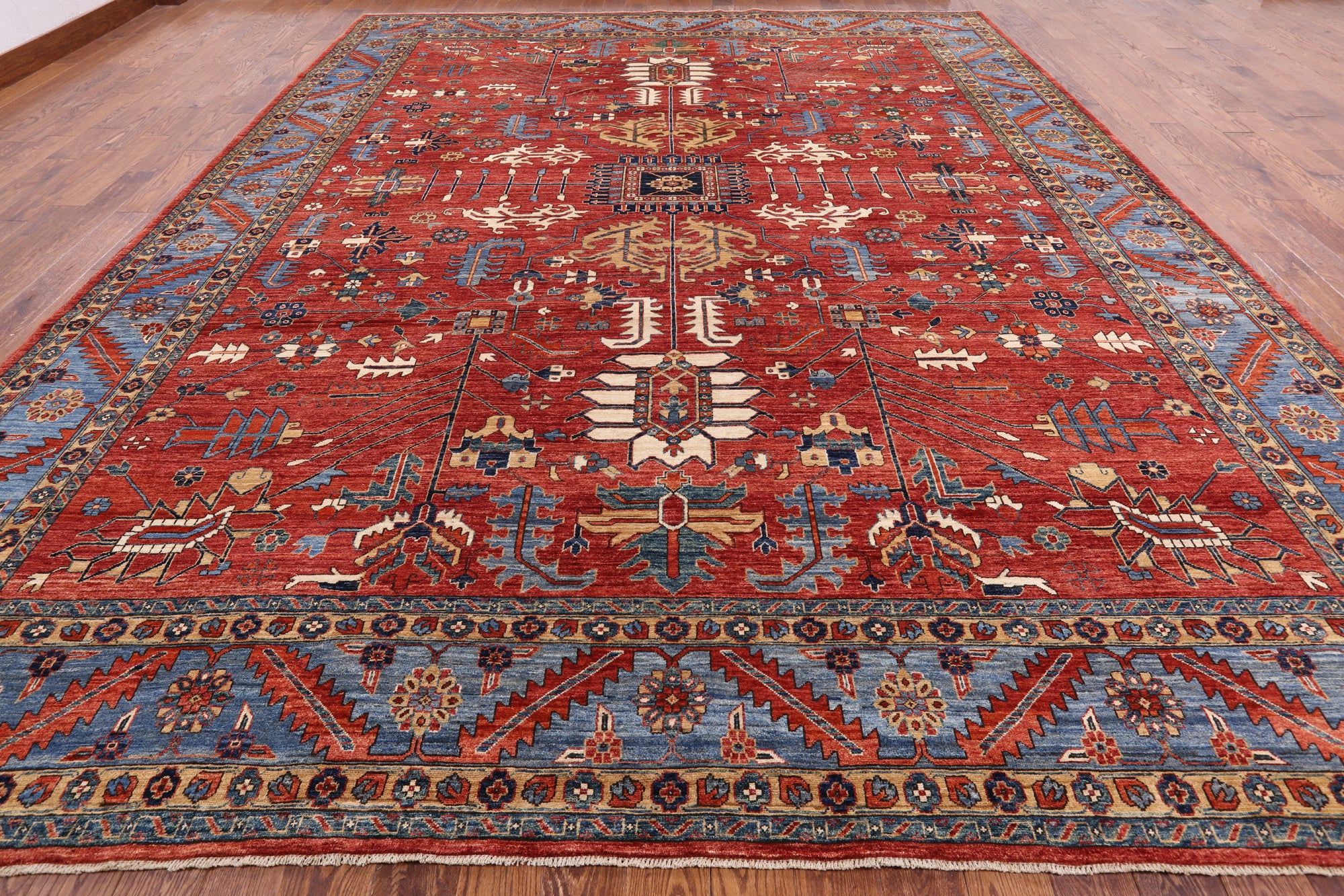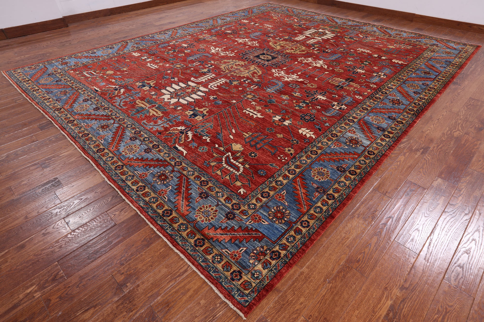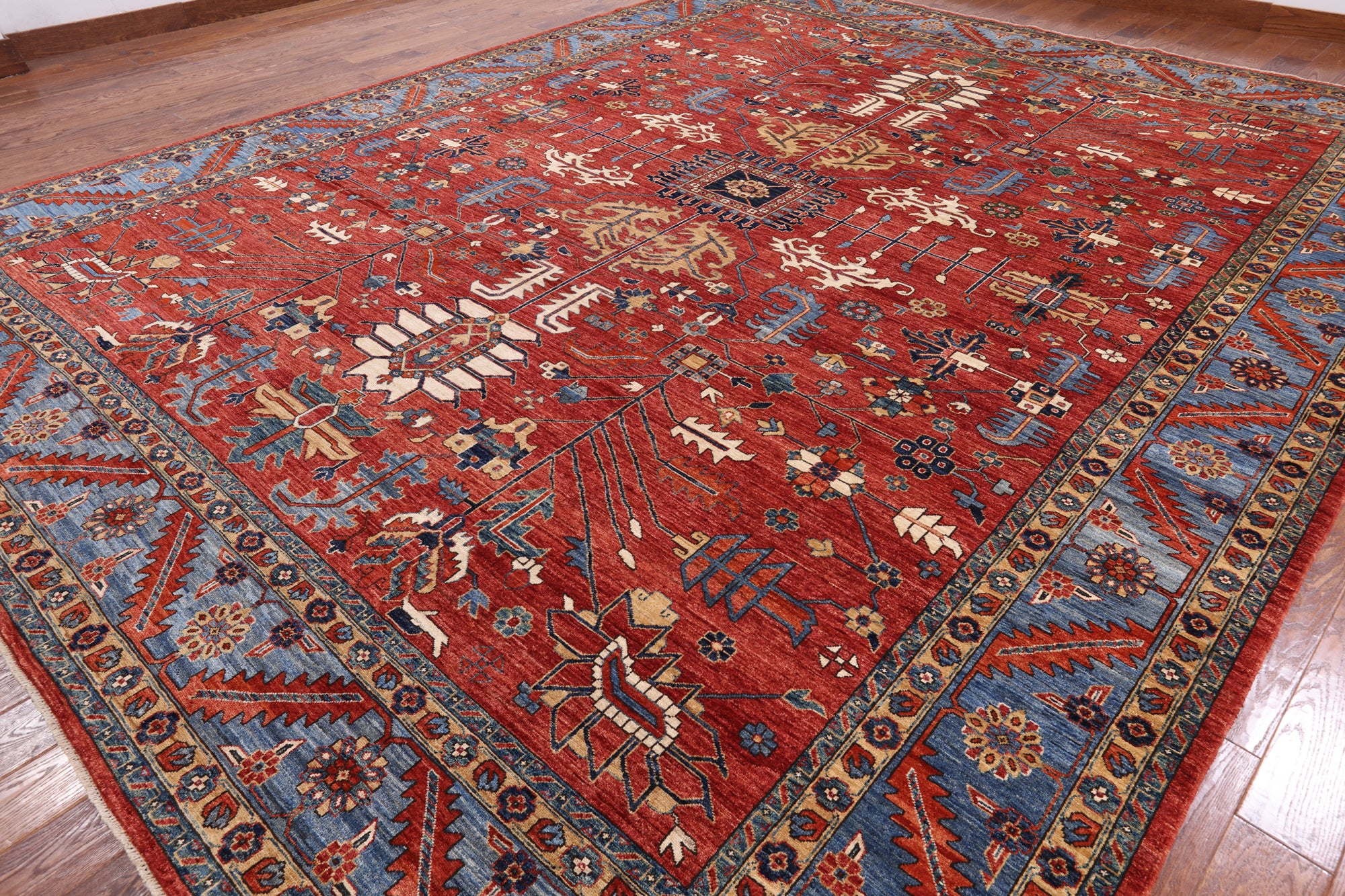Serapi Rugs also known as Heriz, are known as the best handmade carpets with both geometric and curvilinear floral patterns. Their geometric figures, unique colors, high-quality construction and attention to detail makes Serapi Rugs the most iconic styles of Oriental Rugs. Their colors consist of unique shades of blue, black, red, green & ivory.
