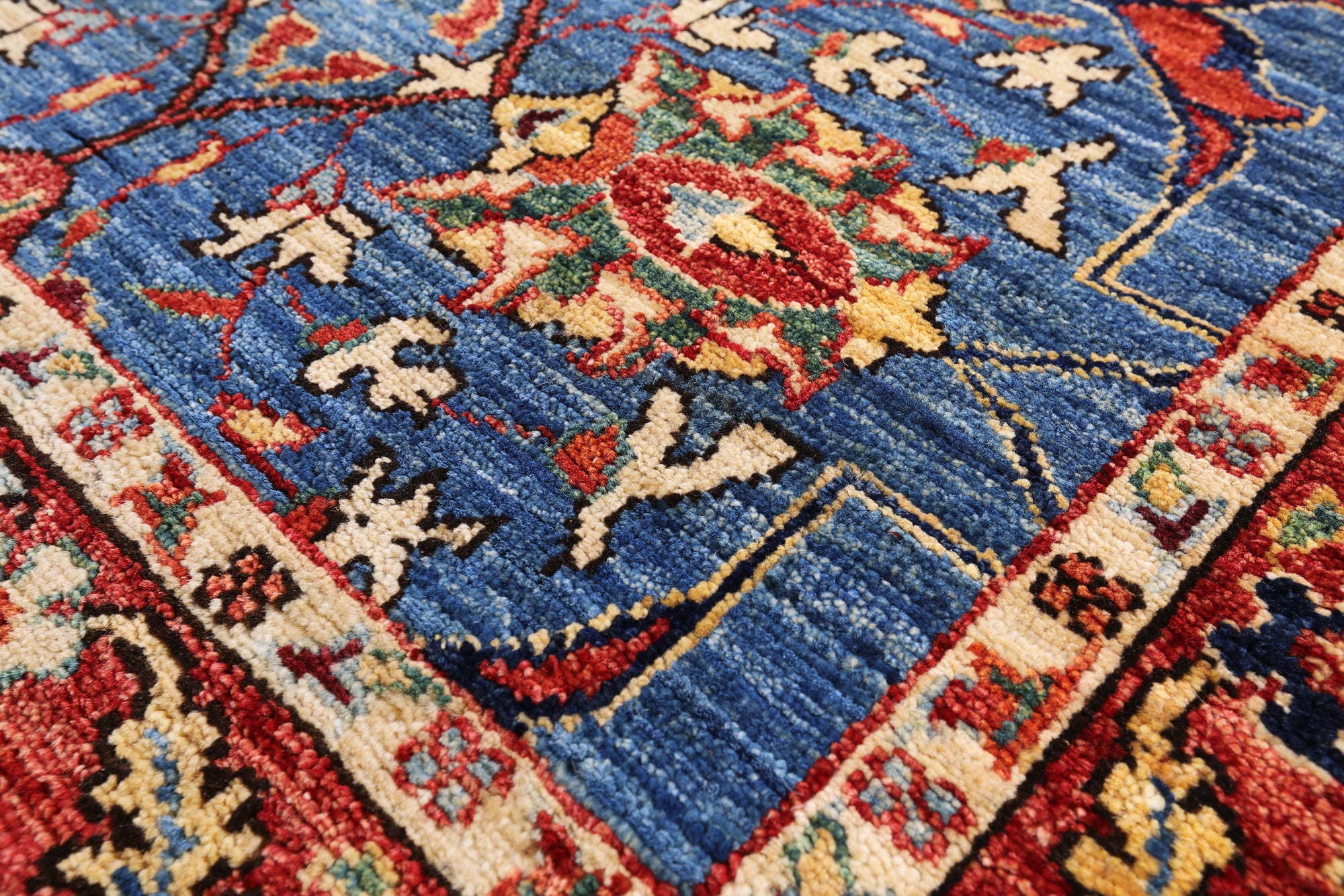 Serapi Rugs also known as Heriz, are known as the best handmade carpets with both geometric and curvilinear floral patterns. Their geometric figures, unique colors, high-quality construction and attention to detail makes Serapi Rugs the most iconic styles of Oriental Rugs. Their colors consist of unique shades of blue, black, red, green & ivory.