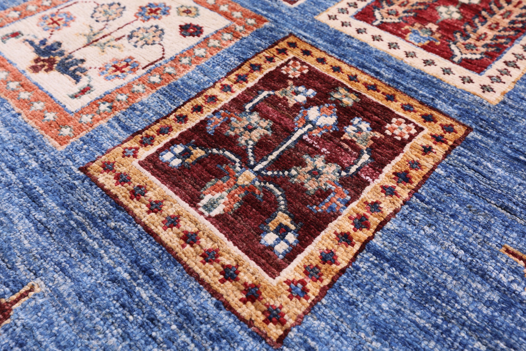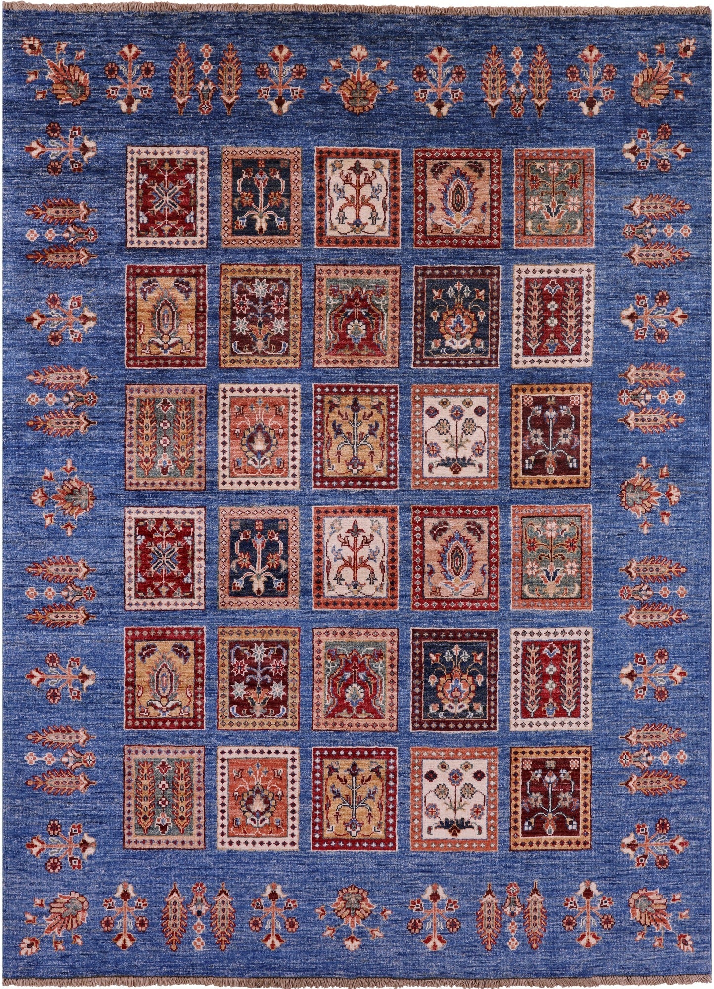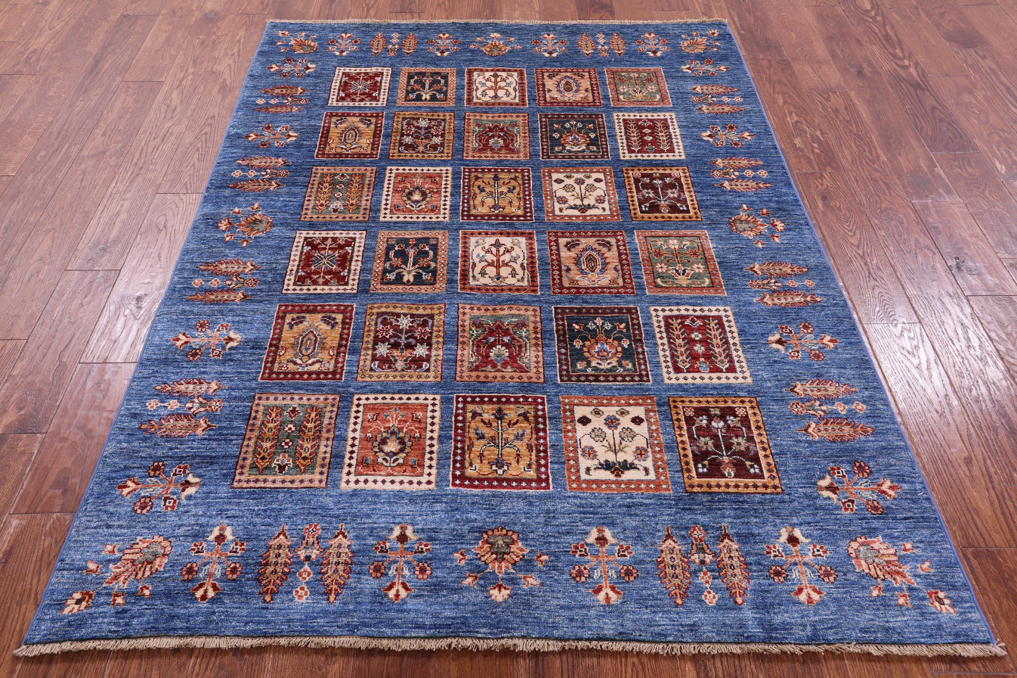 Blue Garden Design Persian Hand Knotted Wool Rug - 5' 0" X 6' 8"