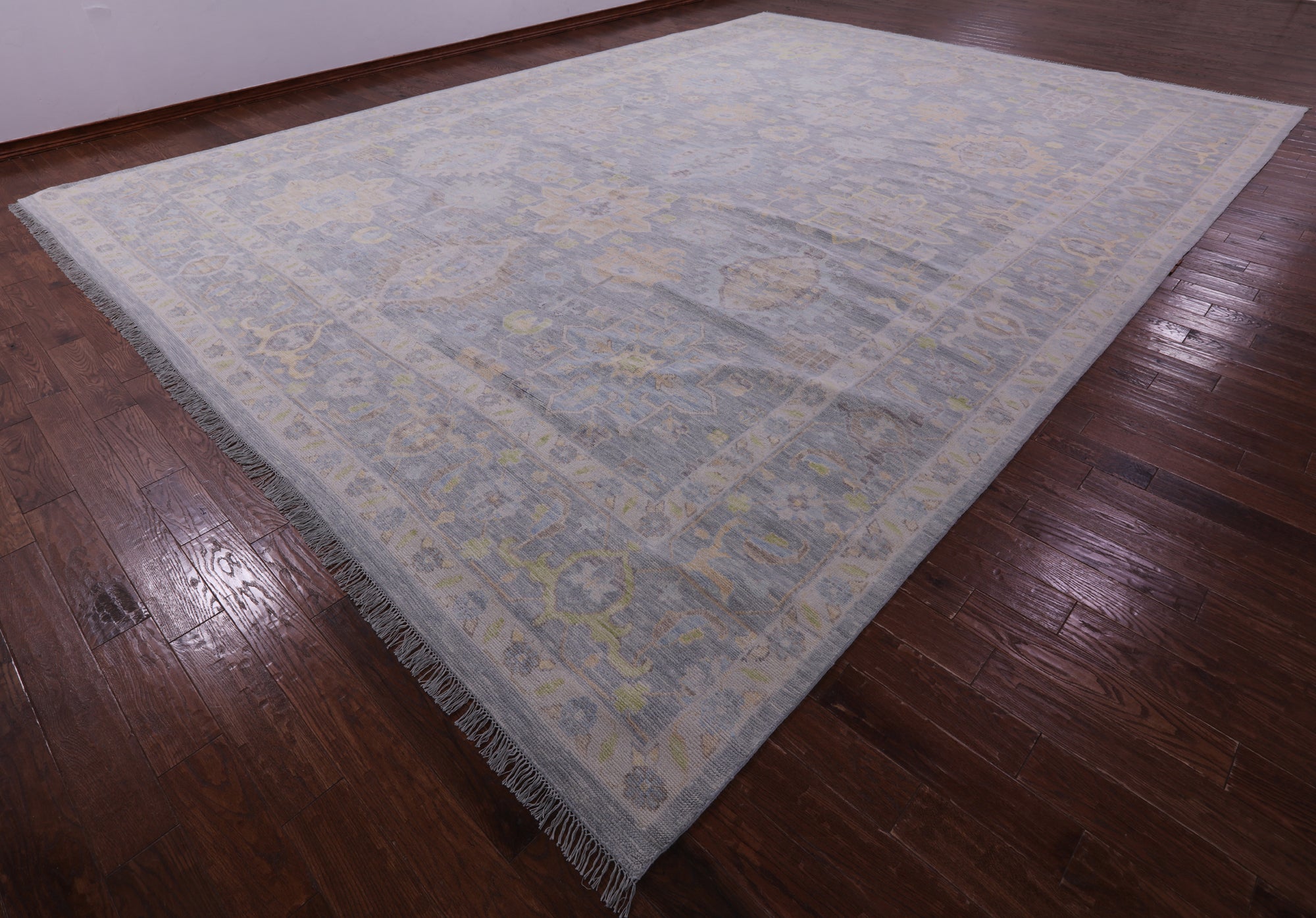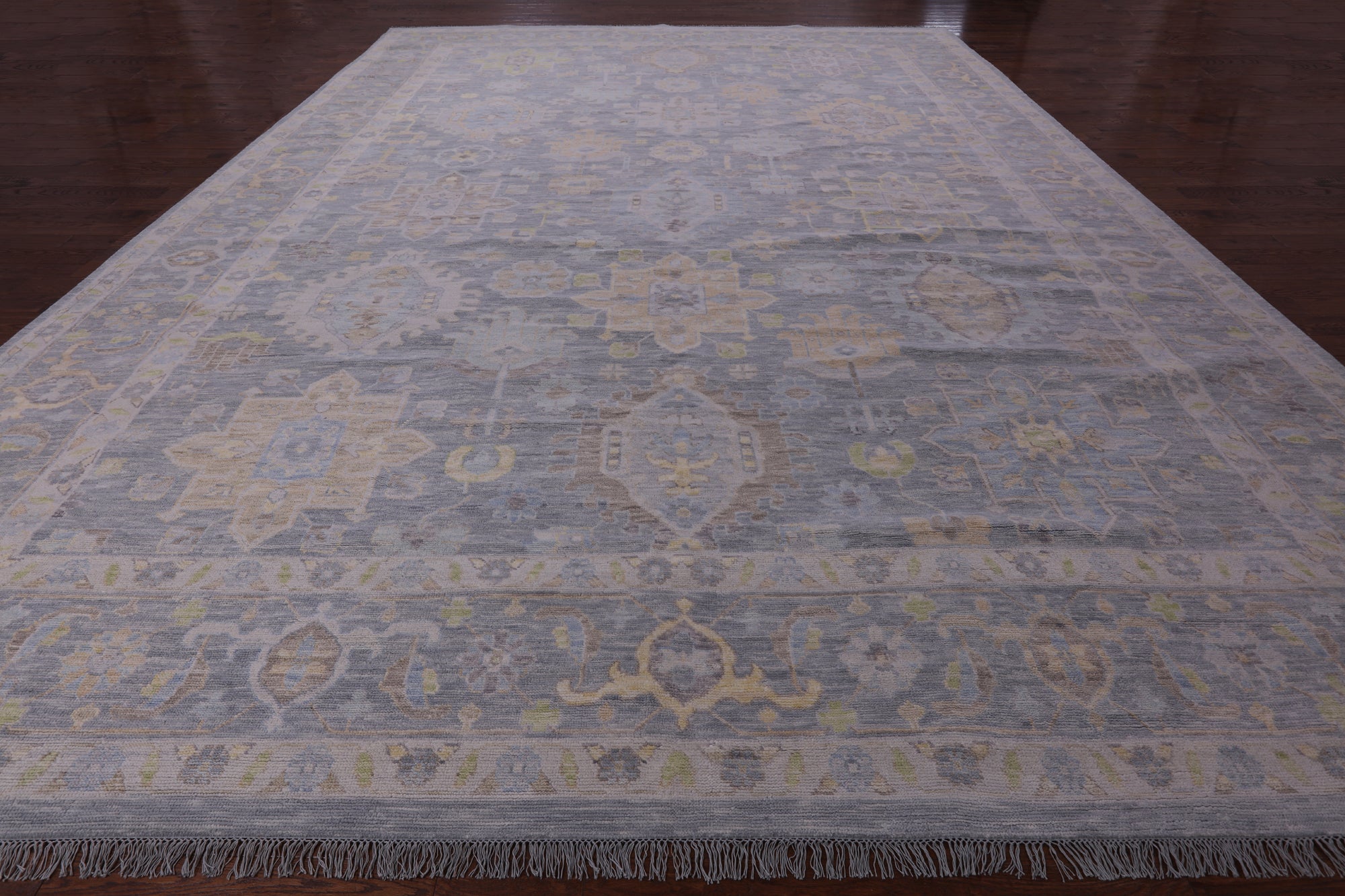 Grey Geometric Fine Serapi Hand Knotted Wool Rug - 14' 3" X 20' 0"
