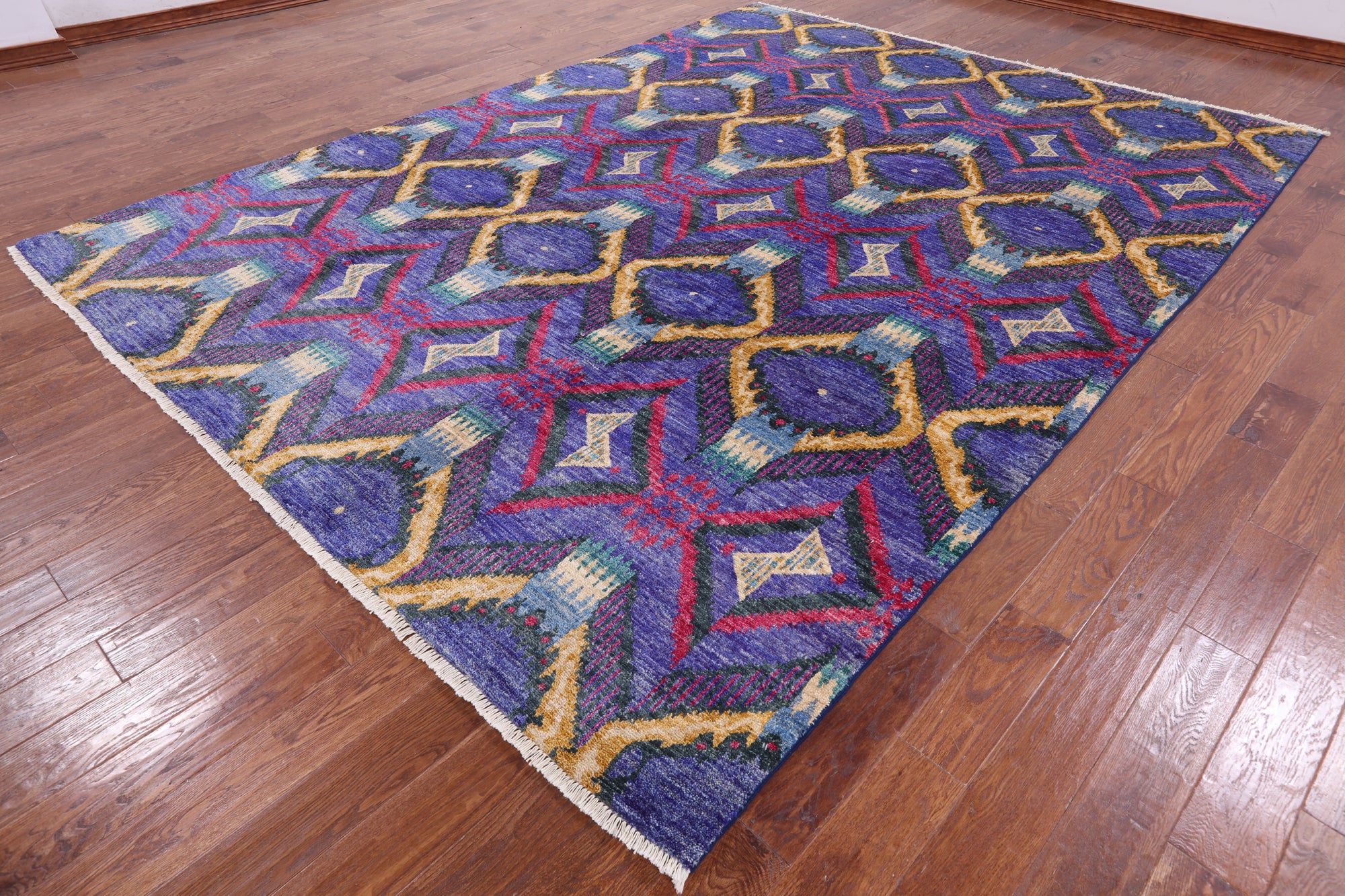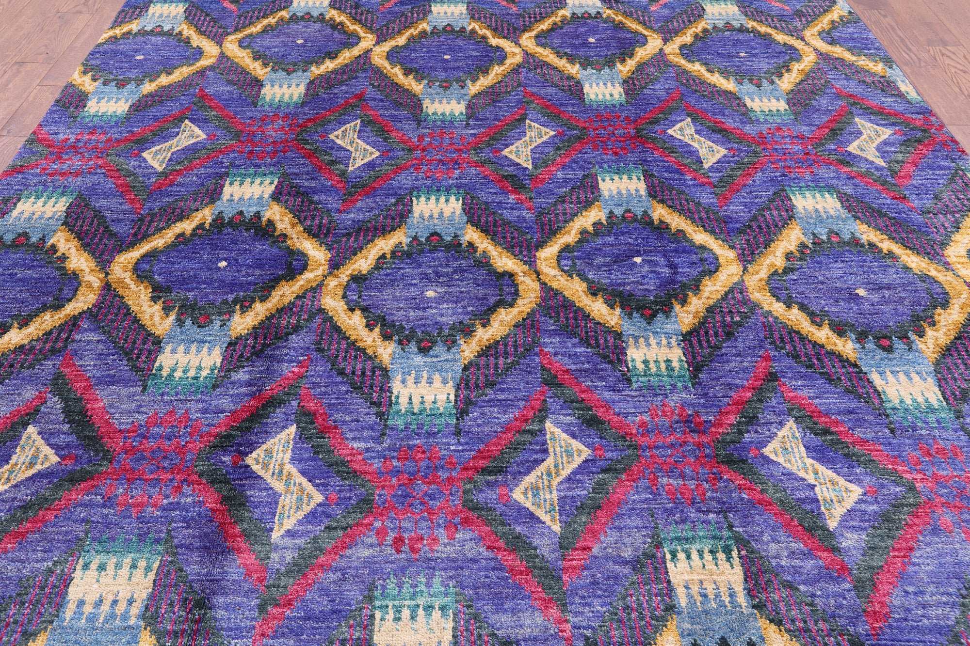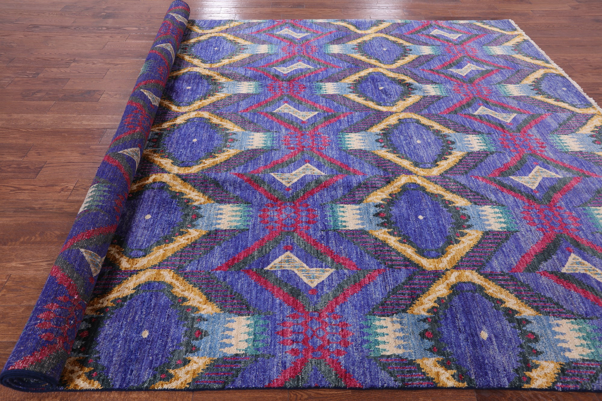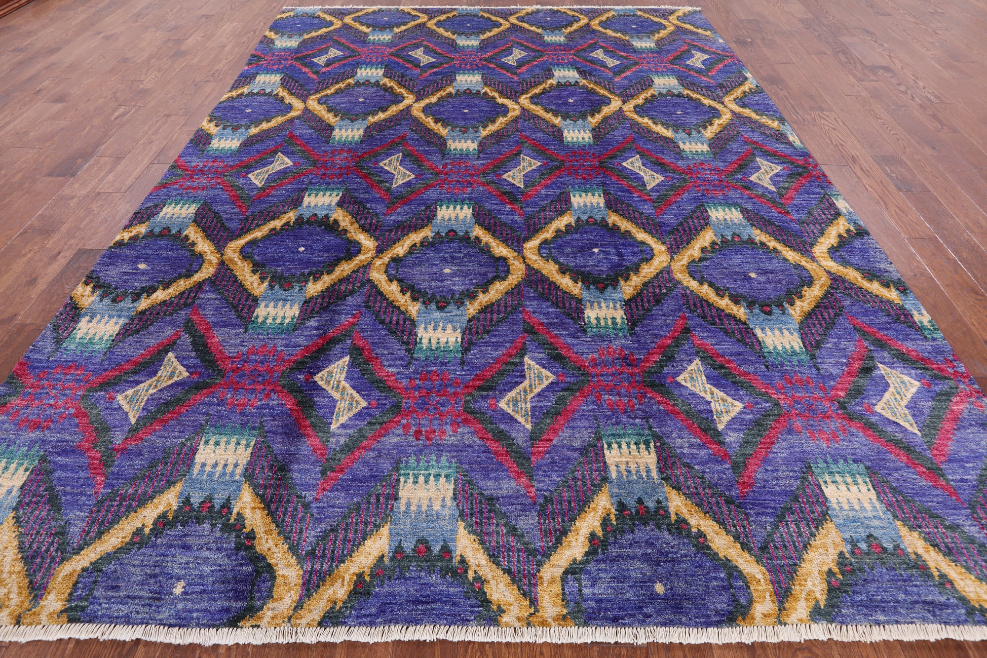 Ikat Hand Knotted Wool Area Rug - 8' 10" X 11' 10"