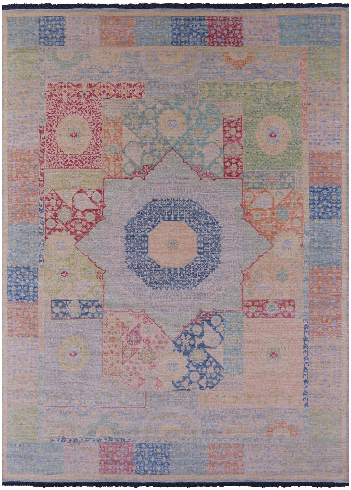 Mamluk Hand-knotted rugs are particularly resplendent. These carpets can be described as having a sublime quality; more than just fine Handmade carpets, they are evocative works of art.