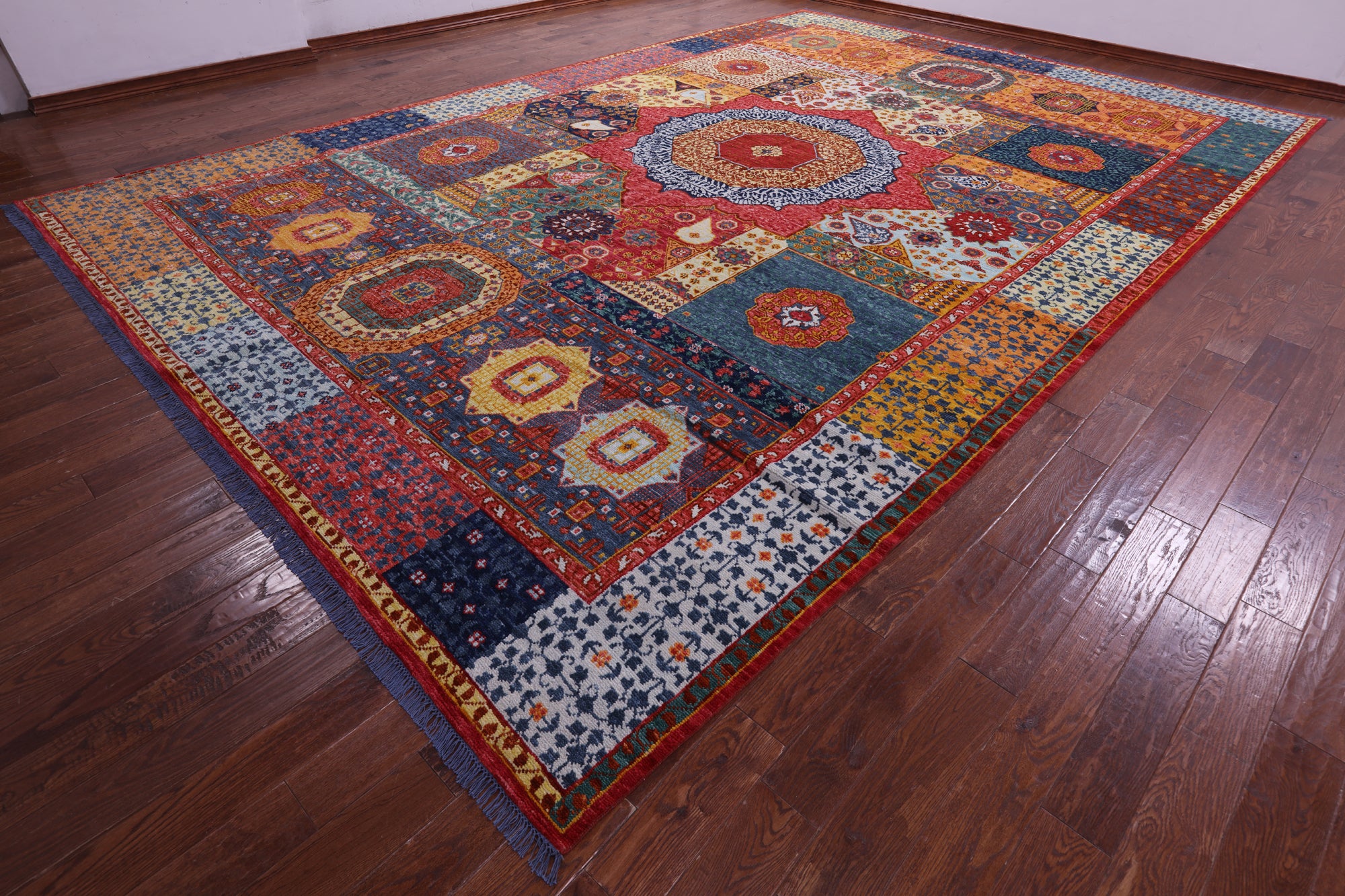 Geometric Persian Mamluk Hand Knotted Wool Rug - 12' 1" X 17' 10"