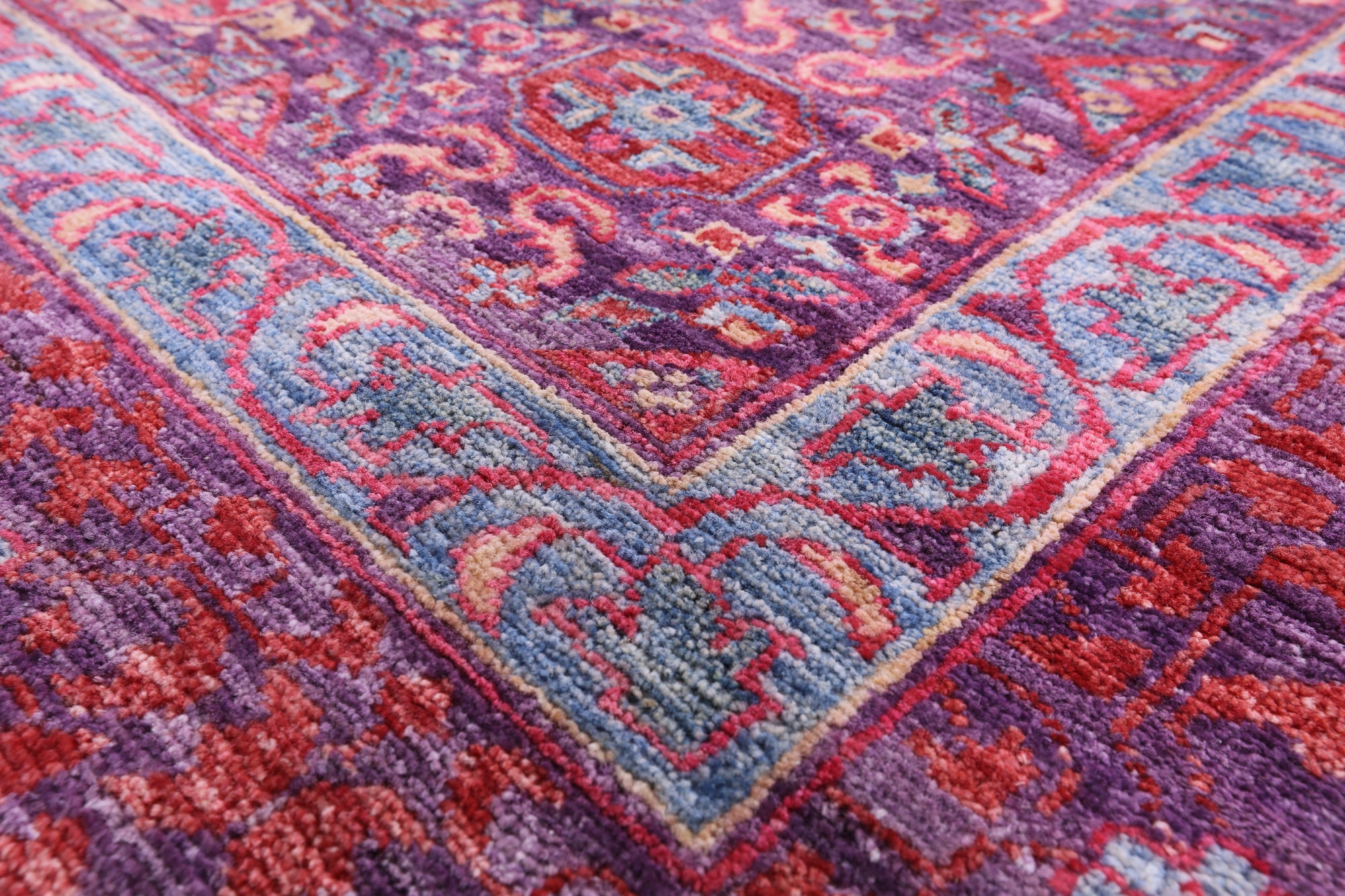 Purple Geometric Persian Mamluk Hand Knotted Wool Rug - 9' 9" X 13' 5"