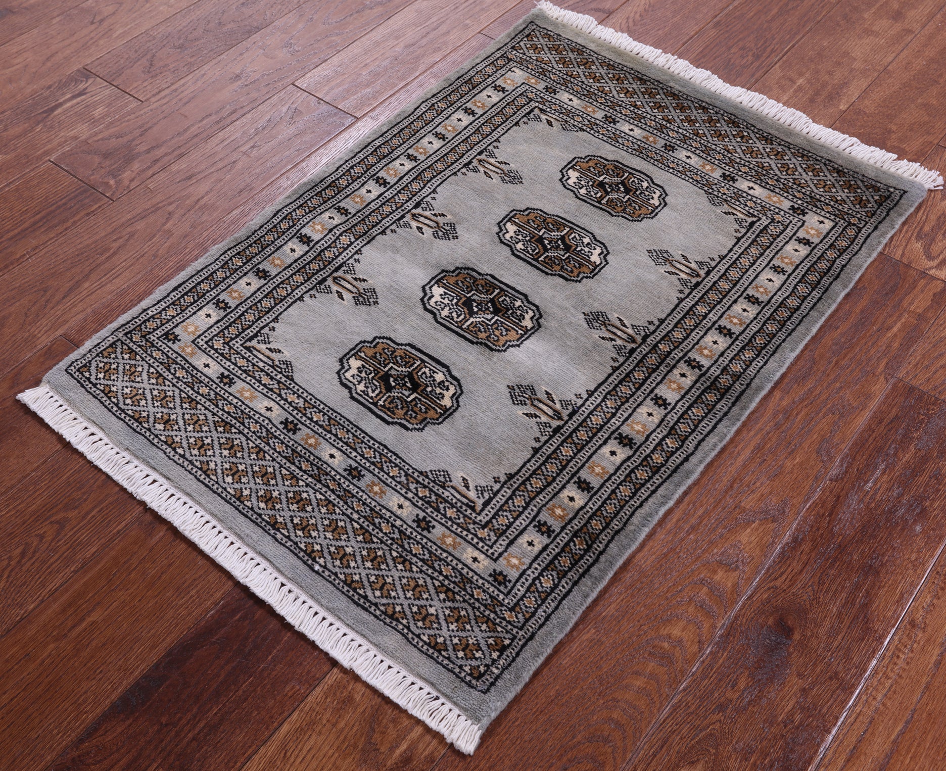 Grey Bokhara Handmade Wool Rug - 2' 0" X 3' 0"