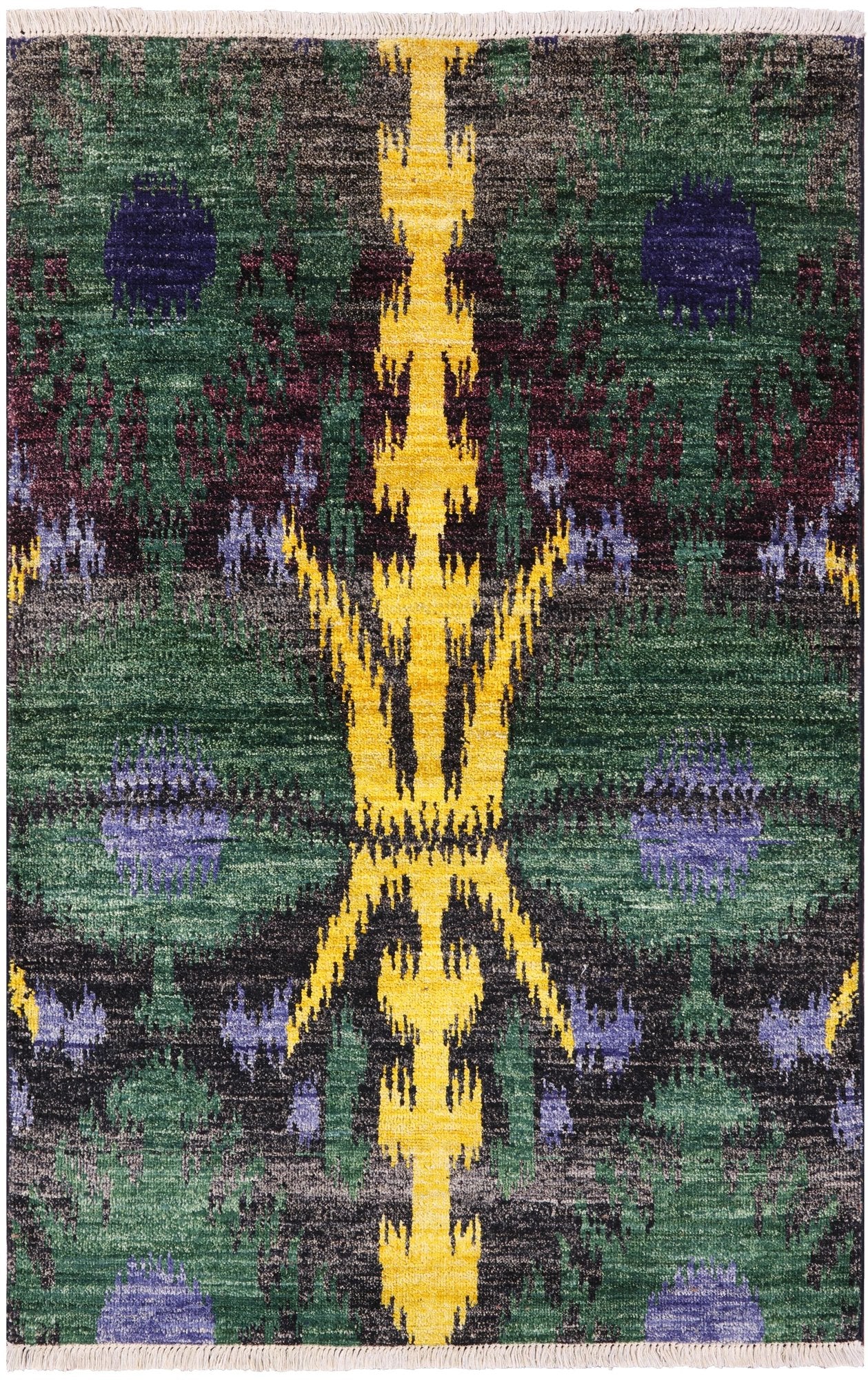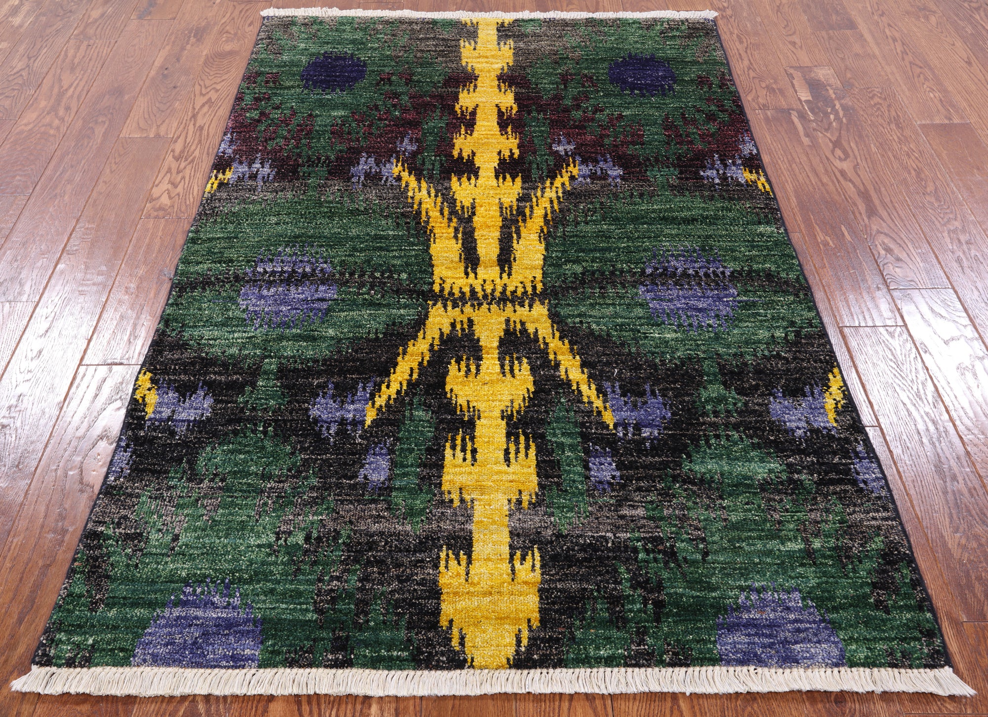Ikat Handmade Wool Area Rug - 4' 3" X 6' 4"