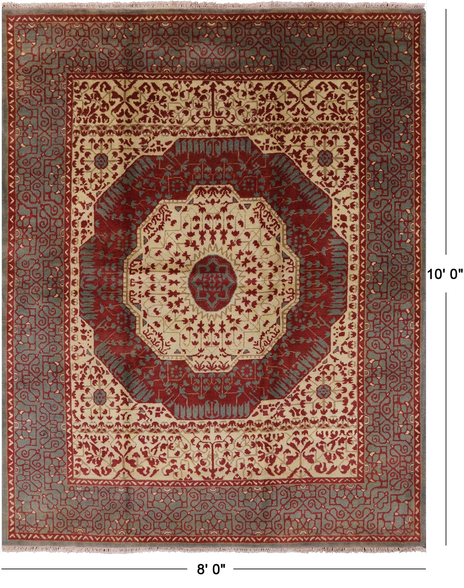 Geometric Persian Mamluk Hand Knotted Wool Rug - 8' 0" X 10' 0''