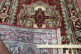 Heriz/Serapi Rugs are hand-knotted with a thick, heavy pile and a rich color palette. Most designs are large geometric medallions or an all over highly stylized floral motif design. Serapi's are made with pure natural vegetable dyes, hand-spun wool, graphic designs and inspired artistry. Traditional Heriz colors are red, black, blues, & ivory.