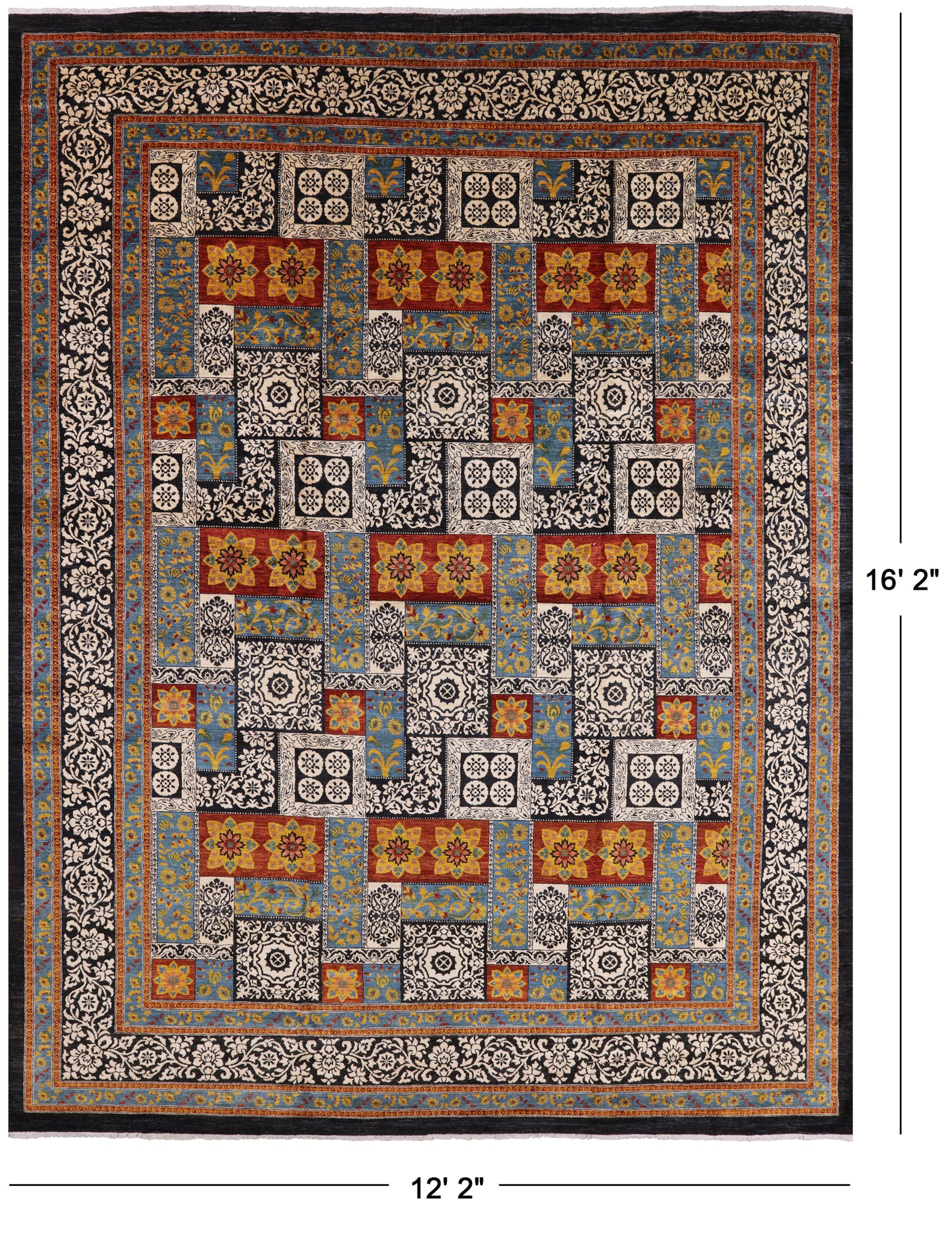 Black William Morris Handmade Wool Area Rug - 12' 2" X 16' 2"