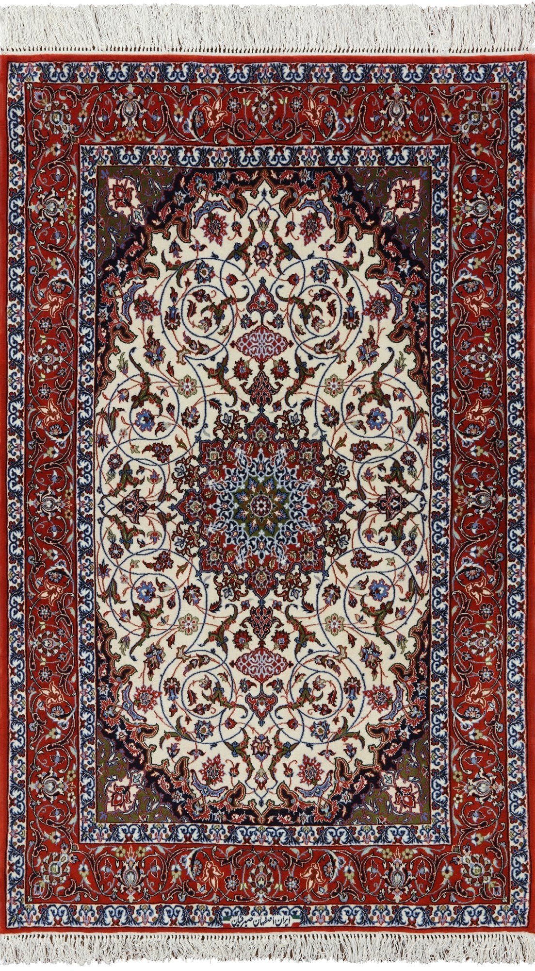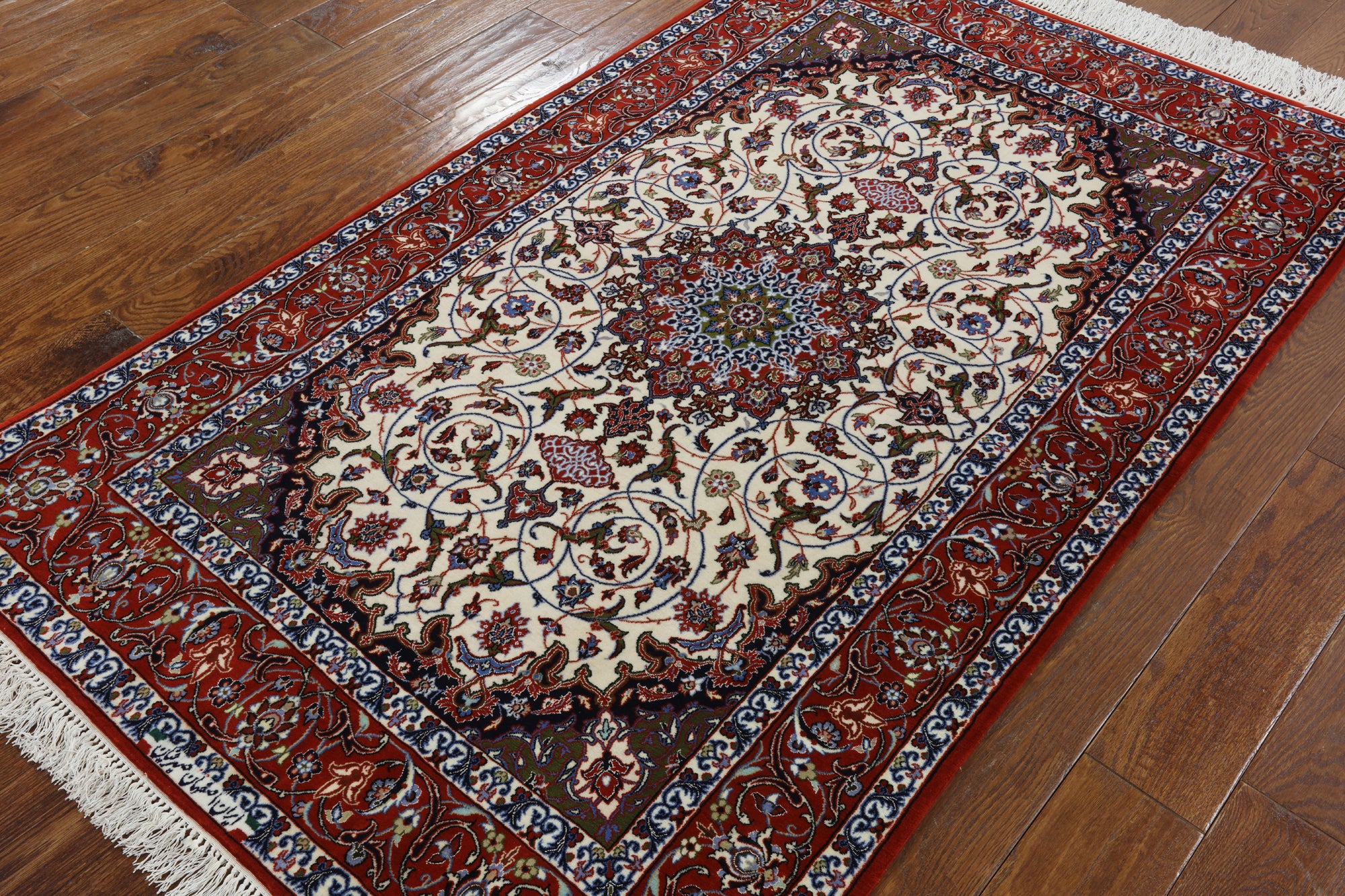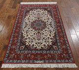 Handmade Signed Authentic Persian Isfahan Wool & Silk Rug 3' 8" X 6'