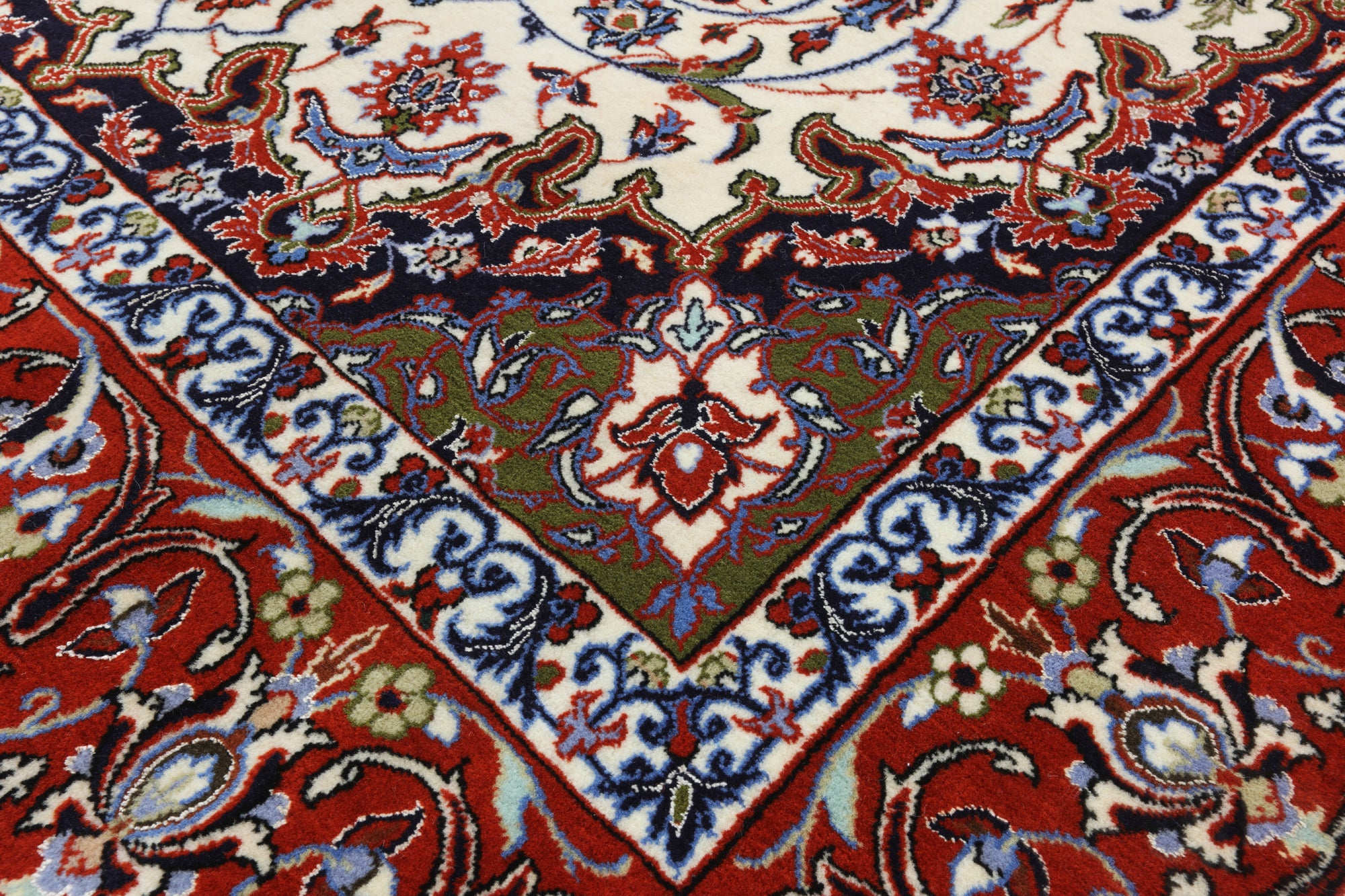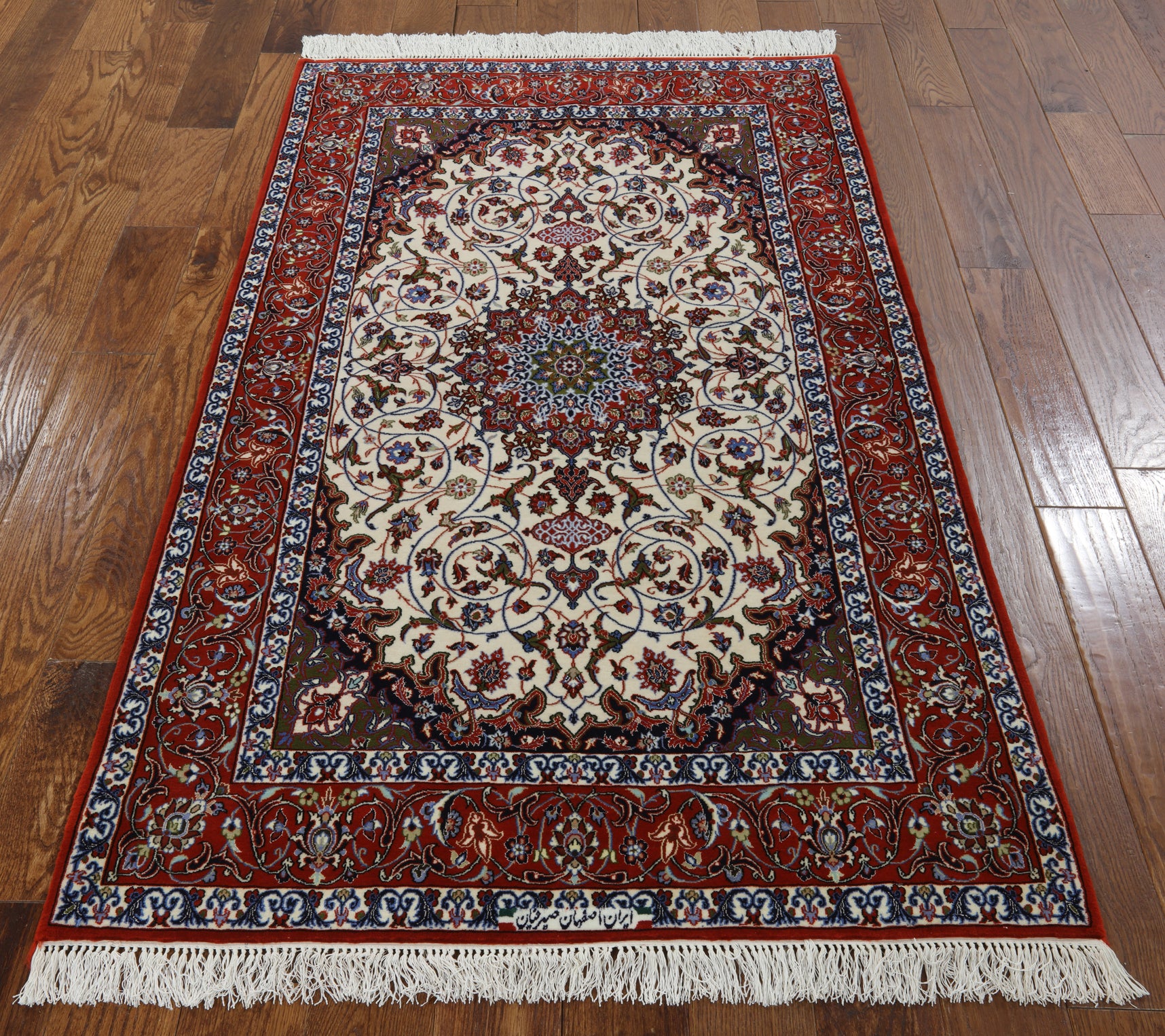 The Isfahan rugs are made with exceptionally good quality of wool & silk. They use traditional motifs inspired by architectural tiles that once decorated the historical buildings from which these rugs originated in. When it comes to high class designs the composition, patterns, and materials of Isfahan meets those expectations. The motifs usually consist of medallions with palmetts and also figural motifs. Isfahan rugs have an extremely high knot density and are woven with silk and golden threads, which give them their luxurious look.