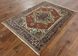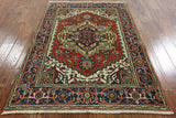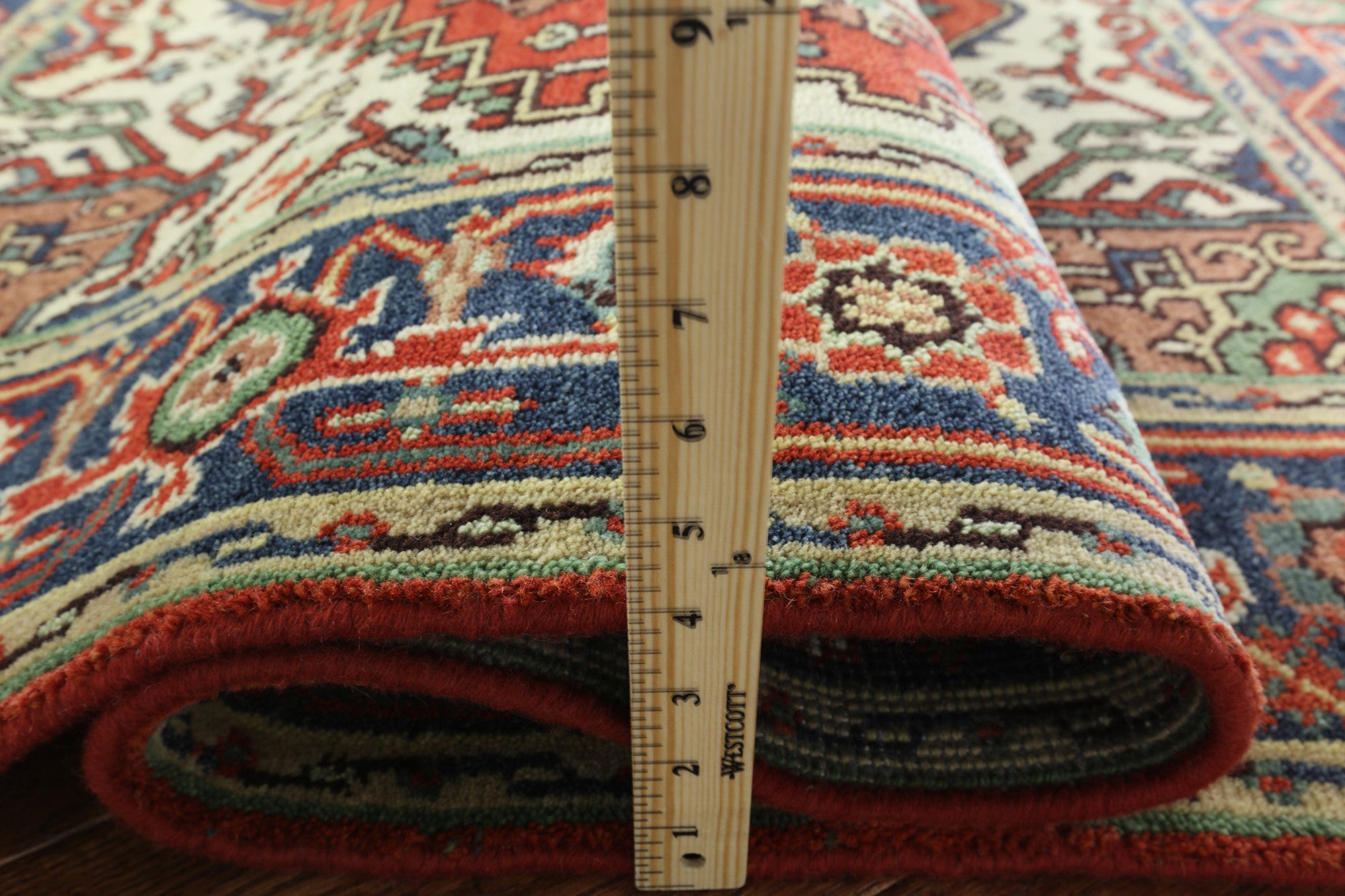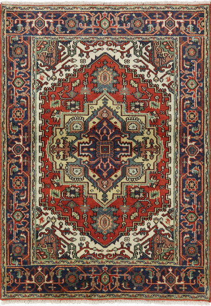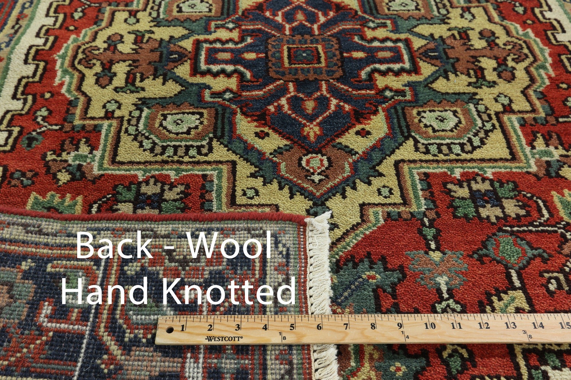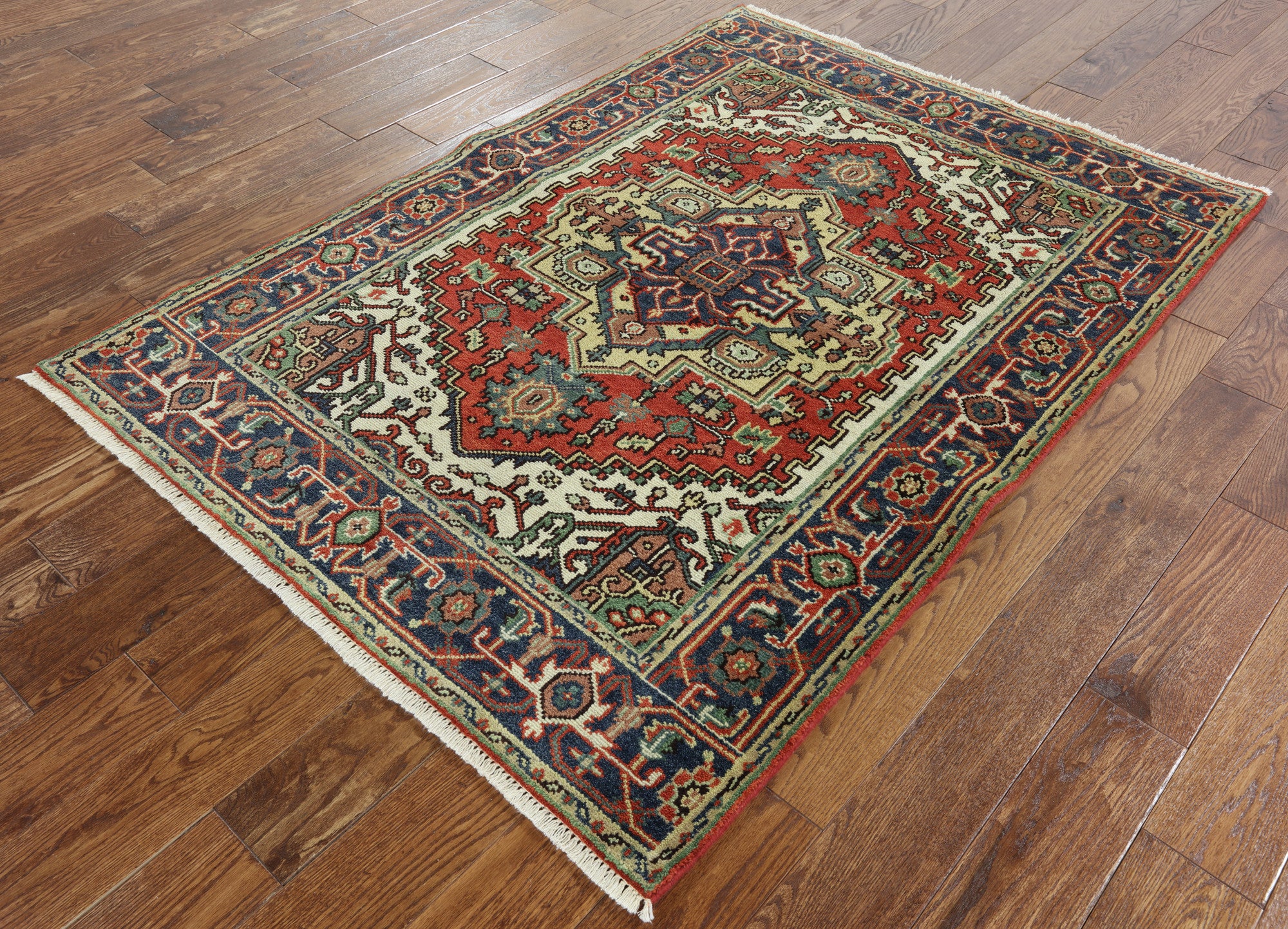 Heriz/Serapi Rugs are hand-knotted with a thick, heavy pile and a rich color palette. Most designs are large geometric medallions or an all over highly stylized floral motif design. Serapi’s are made with pure natural vegetable dyes, hand-spun wool, graphic designs and inspired artistry. Traditional Heriz colors are red, black, blues, & ivory.