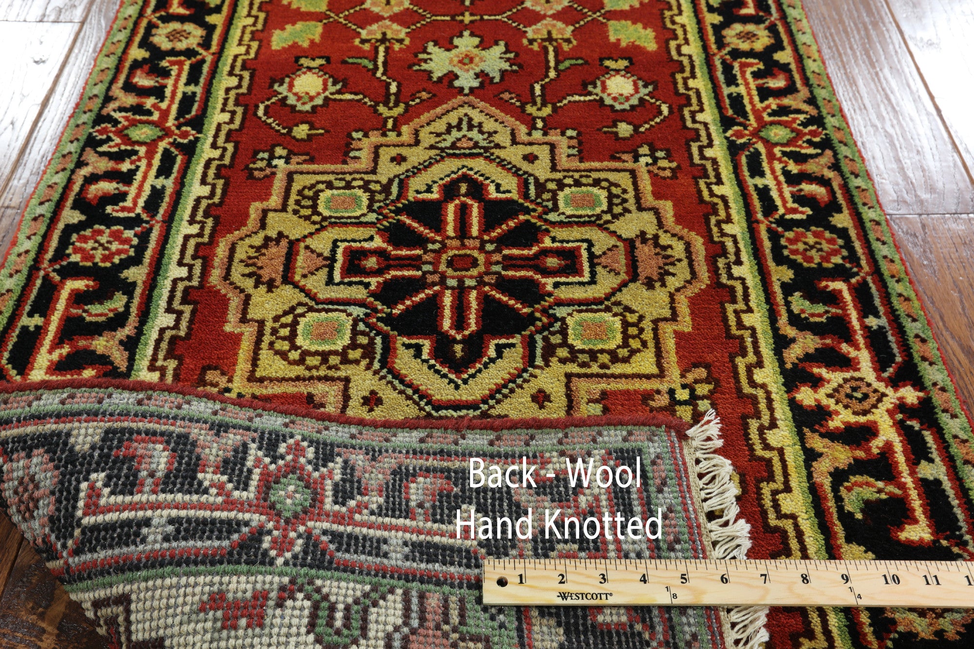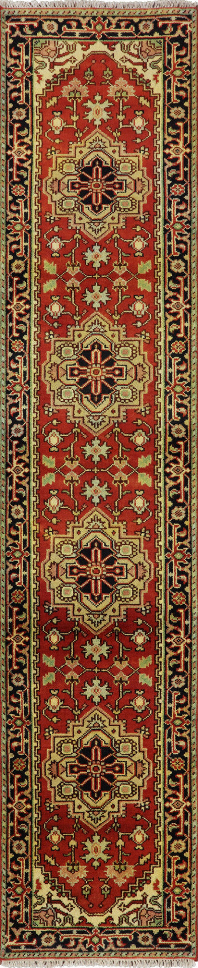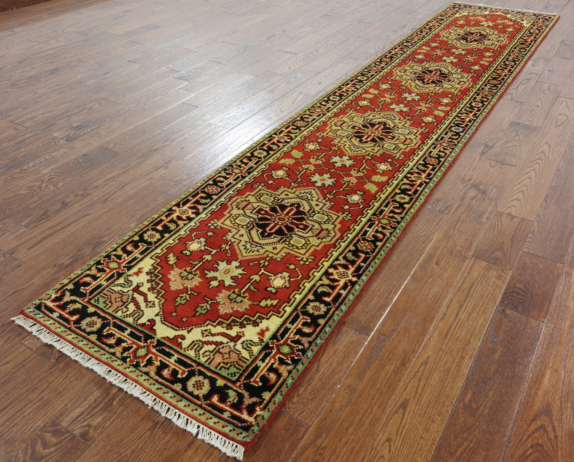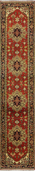 Heriz Serapi Hand Knotted Wool 3 X 12 Floral Design Area Rug