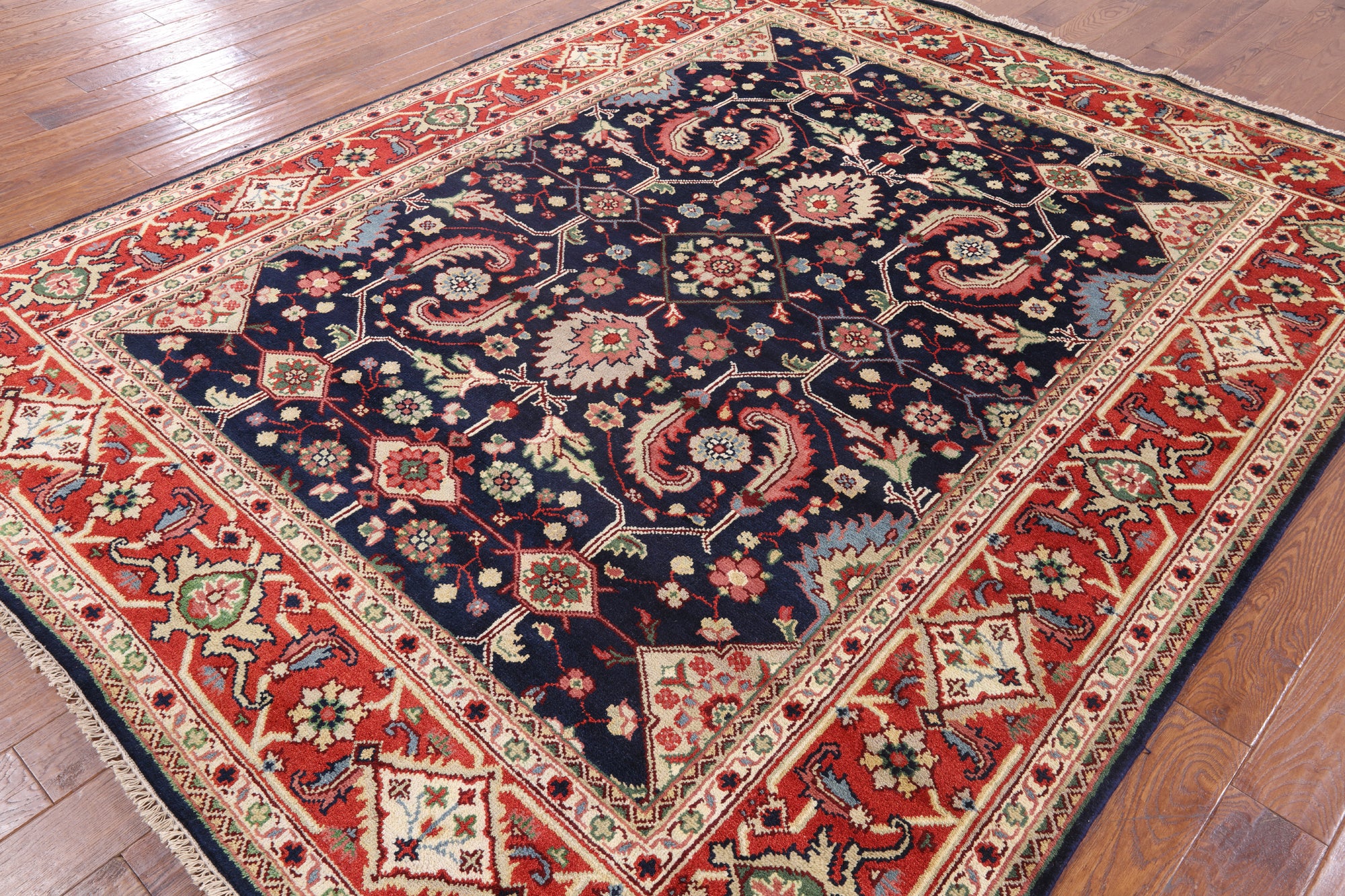 Serapi Rugs also known as Heriz, are known as the best handmade carpets with both geometric and curvilinear floral patterns. Their geometric figures, unique colors, high-quality construction and attention to detail makes Serapi Rugs the most iconic styles of Persian Rugs. Their colors consist of unique shades of blue, black, red, green & ivory.