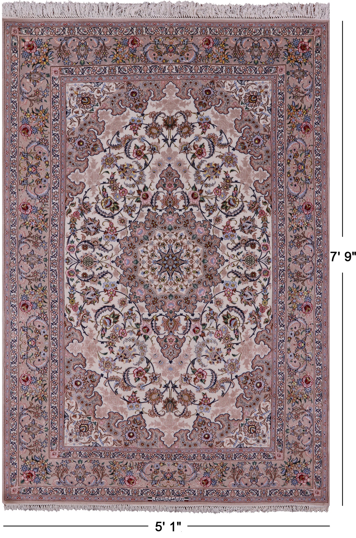 Ivory Isfahan Authentic Persian Hand Knotted Wool & Silk Area Rug - 5' 1" X 7' 9"