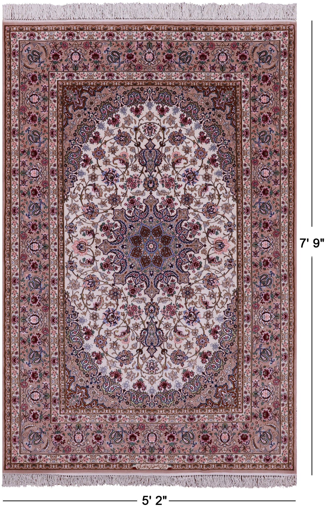 Ivory Isfahan Authentic Persian Hand Knotted Wool & Silk Area Rug - 5' 2" X 7' 9"