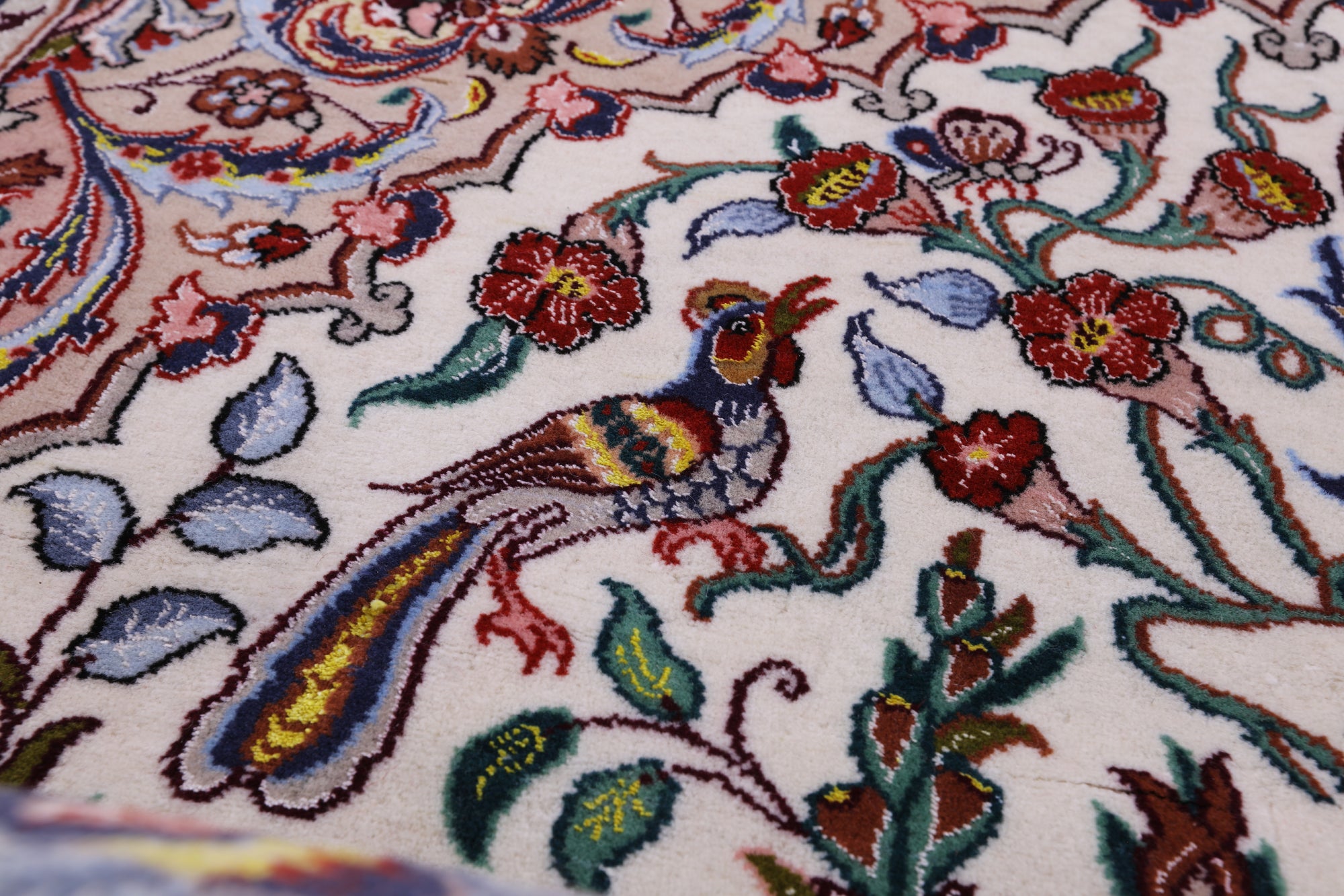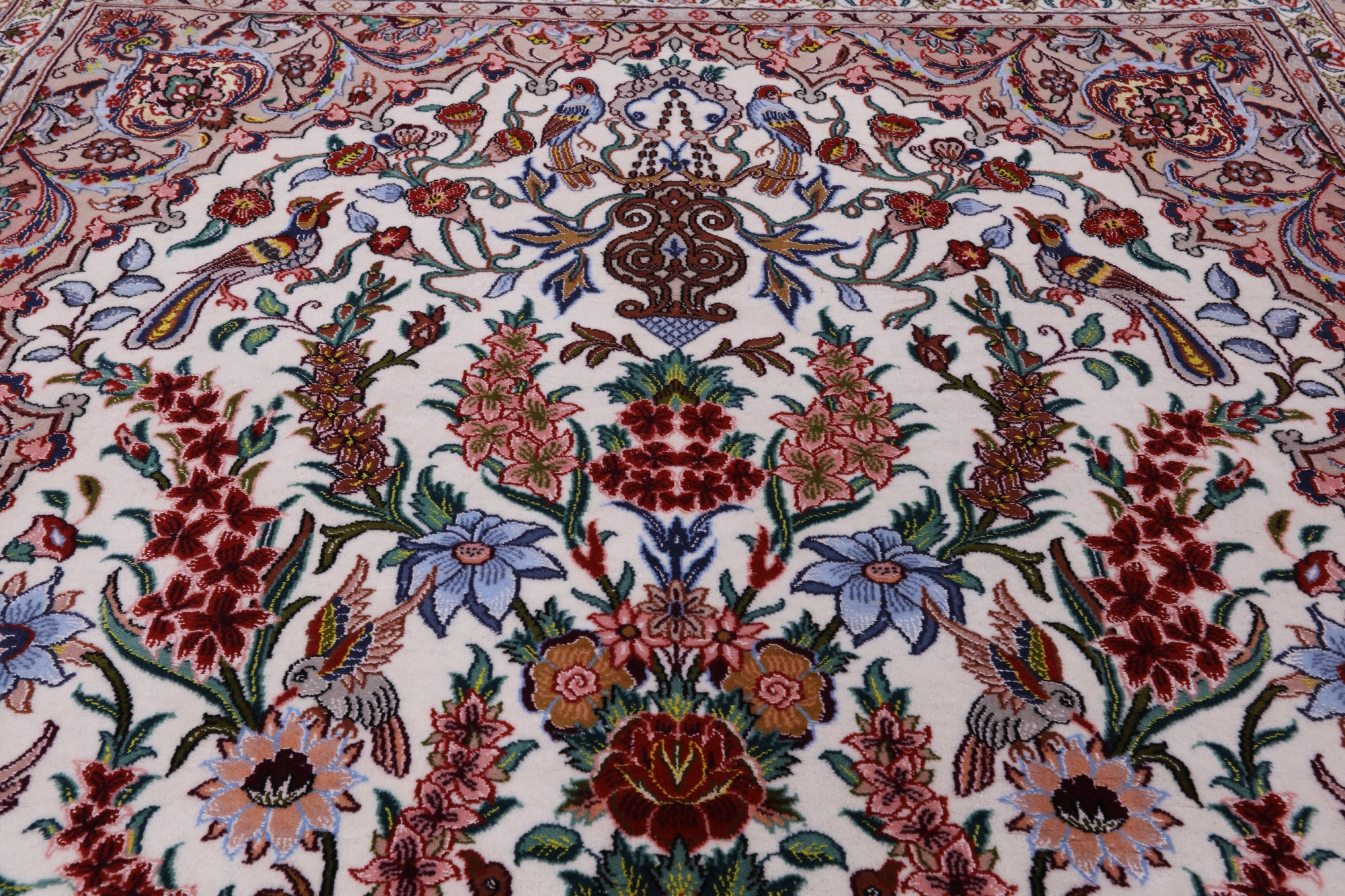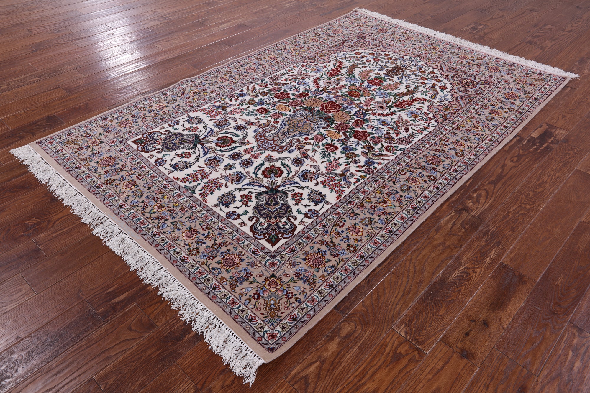 The Isfahan rugs are made with exceptionally good quality of wool & silk. They use traditional motifs inspired by architectural tiles that once decorated the historical buildings from which these rugs originated in. When it comes to high class designs the composition, patterns, and materials of Isfahan meets those expectations. The motifs usually consist of medallions with palmetts and also figural motifs. Isfahan rugs have an extremely high knot density and are woven with silk and golden threads, which give them their luxurious look.