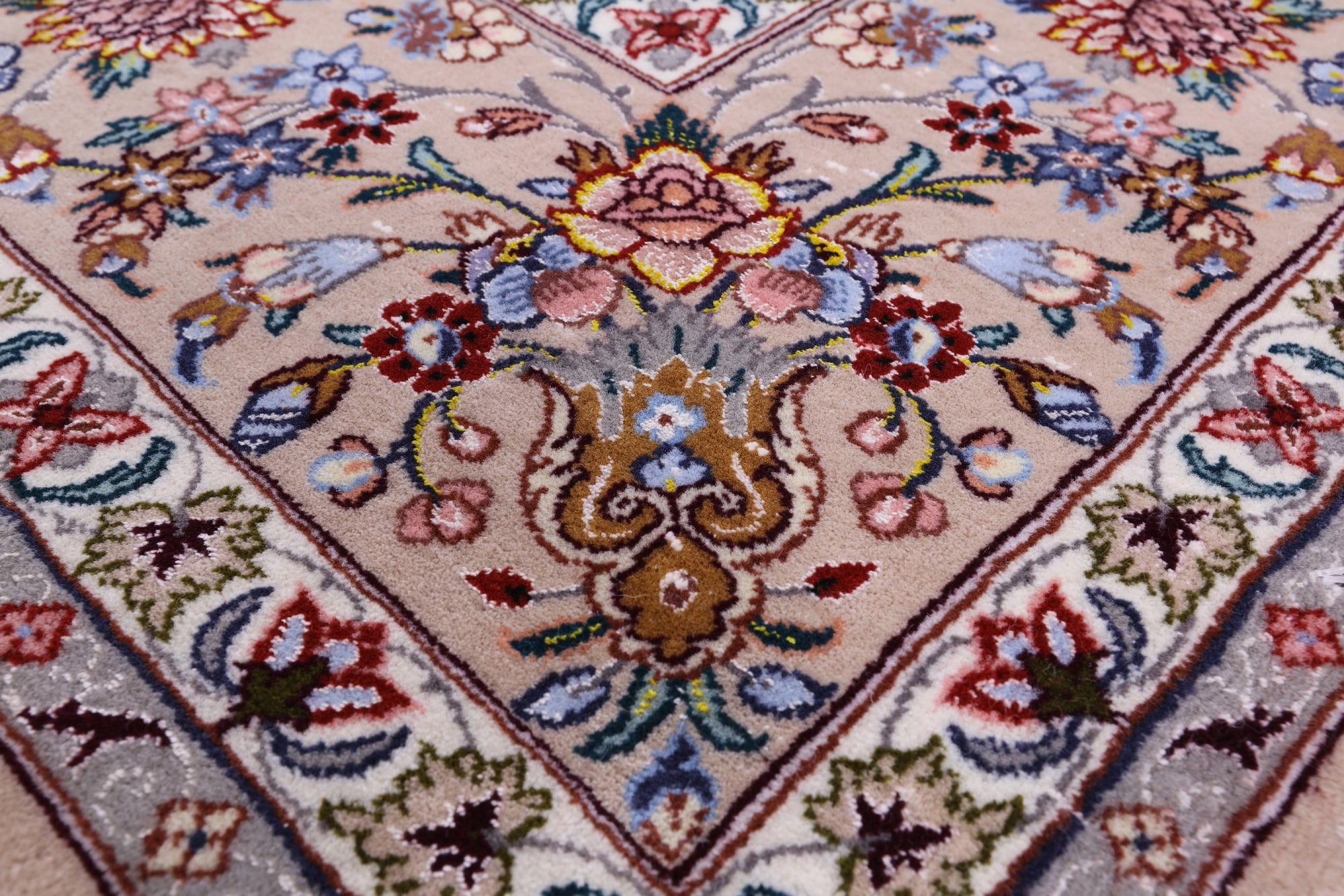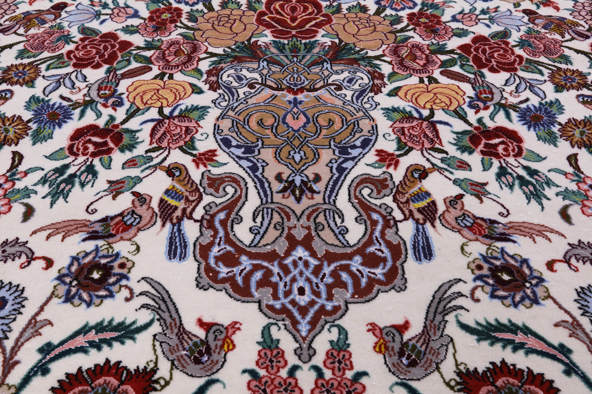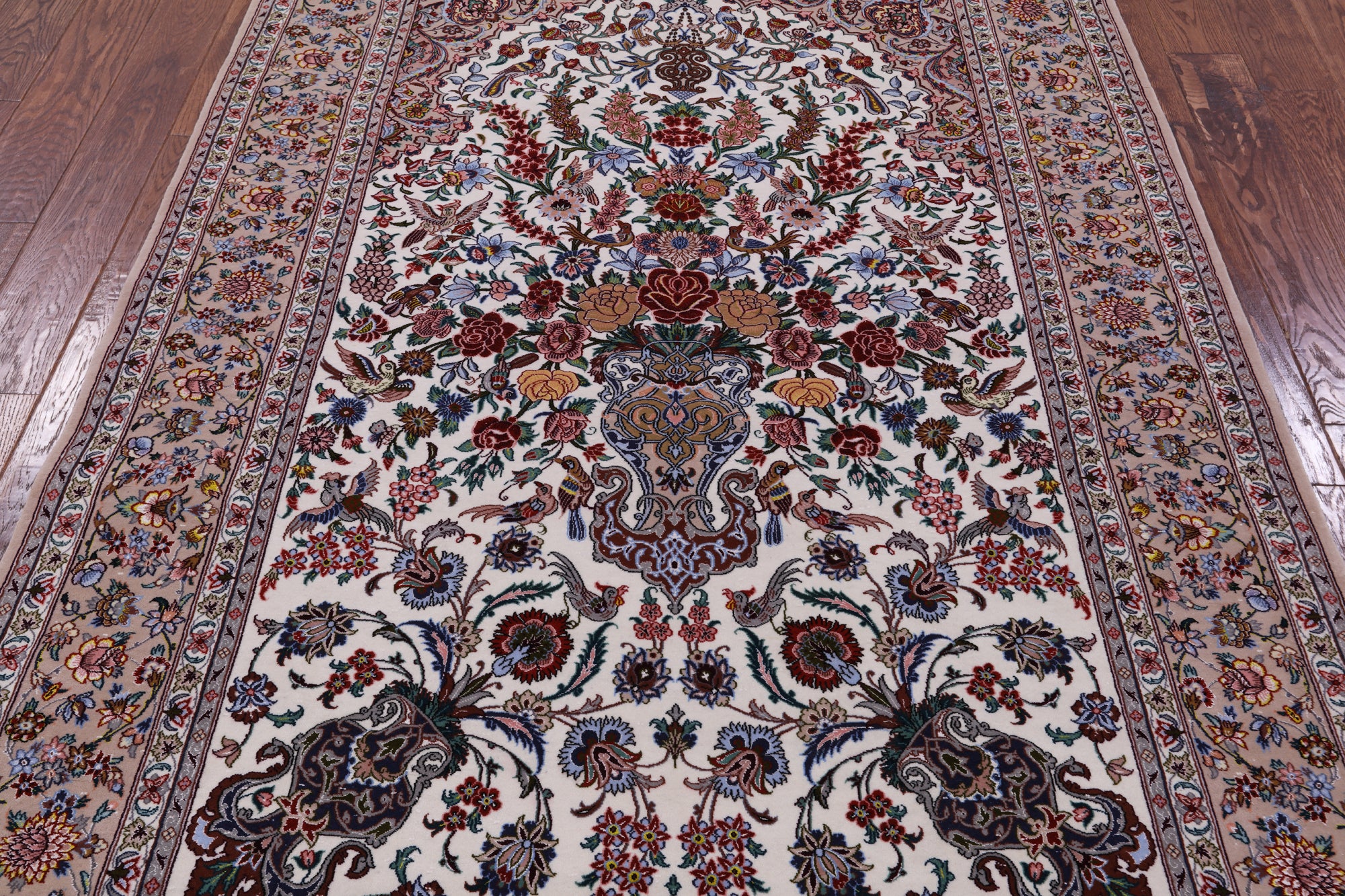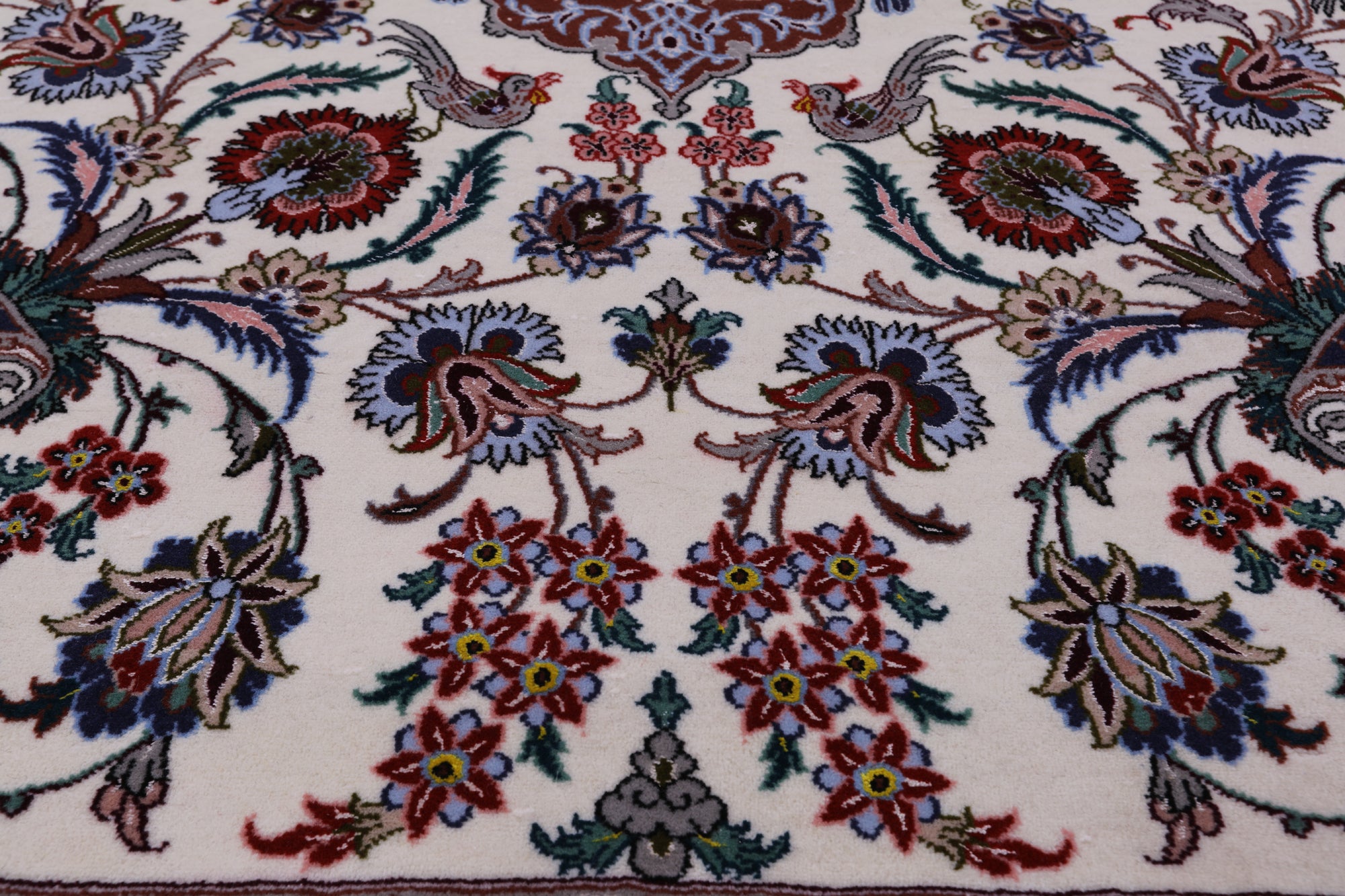 The Isfahan rugs are made with exceptionally good quality of wool & silk. They use traditional motifs inspired by architectural tiles that once decorated the historical buildings from which these rugs originated in. When it comes to high class designs the composition, patterns, and materials of Isfahan meets those expectations. The motifs usually consist of medallions with palmetts and also figural motifs. Isfahan rugs have an extremely high knot density and are woven with silk and golden threads, which give them their luxurious look.