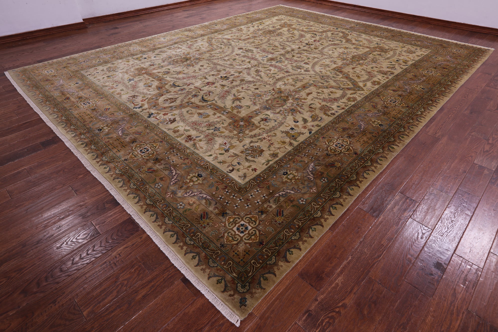 Ivory Persian Tabriz Handmade Wool Rug - 11' 10" X 15' 0"