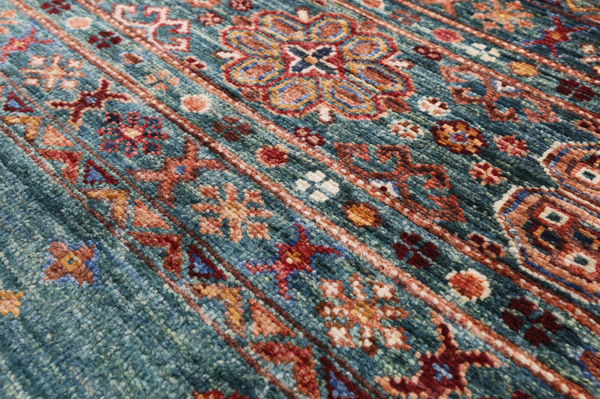 Gabbeh Rugs feature hand-spun wool in both the pile and foundation. These rugs are characterized by their abstract designs that relies upon open fields of color and a playfulness with geometric figures used to depict a story, person, or event. Gabbeh Rugs are popular in a contemporary or modern setting and are extremely durable, usually small to medium size.