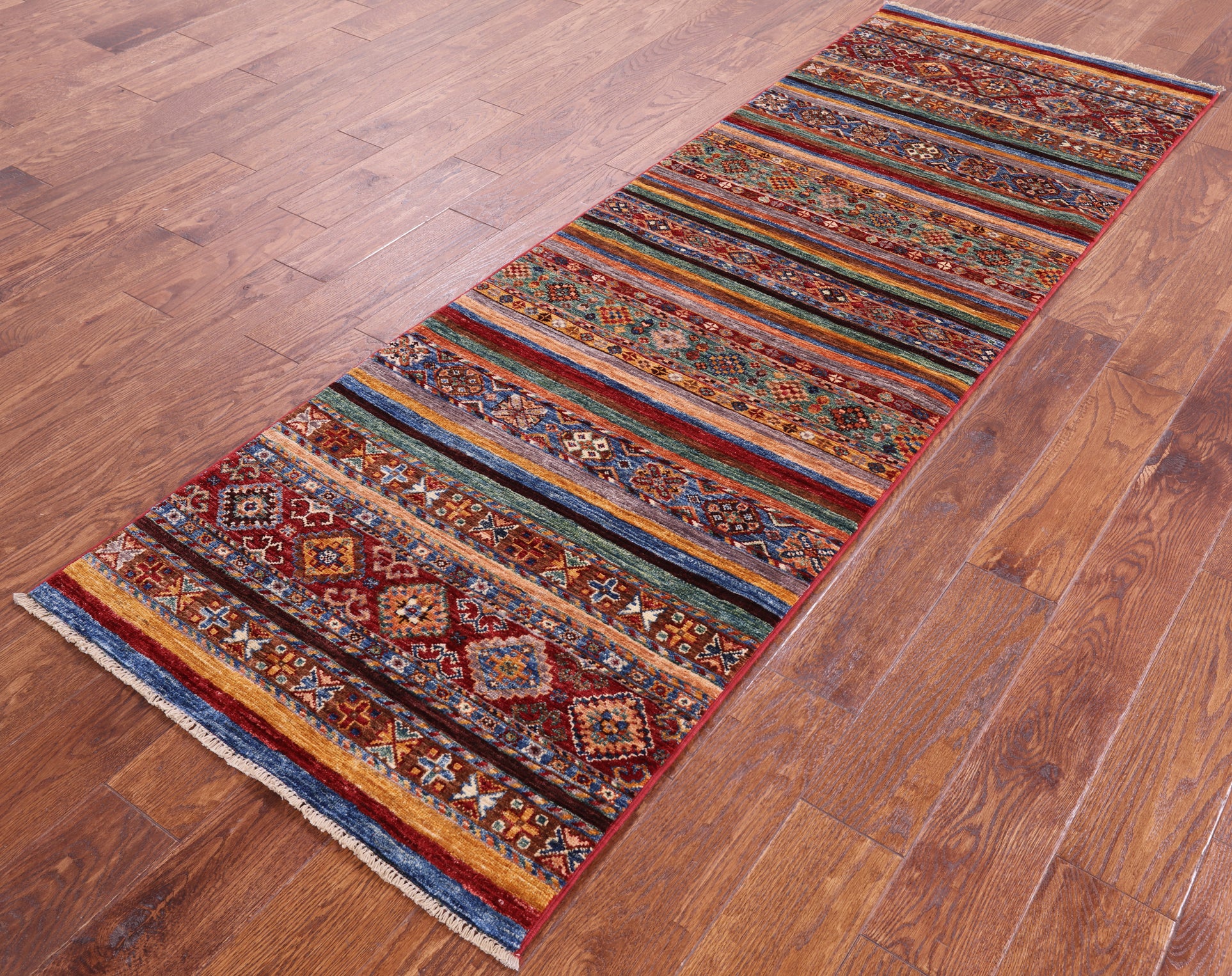Khorjin Persian Gabbeh Hand Knotted Wool Runner Rug - 2' 7" X 7' 11"