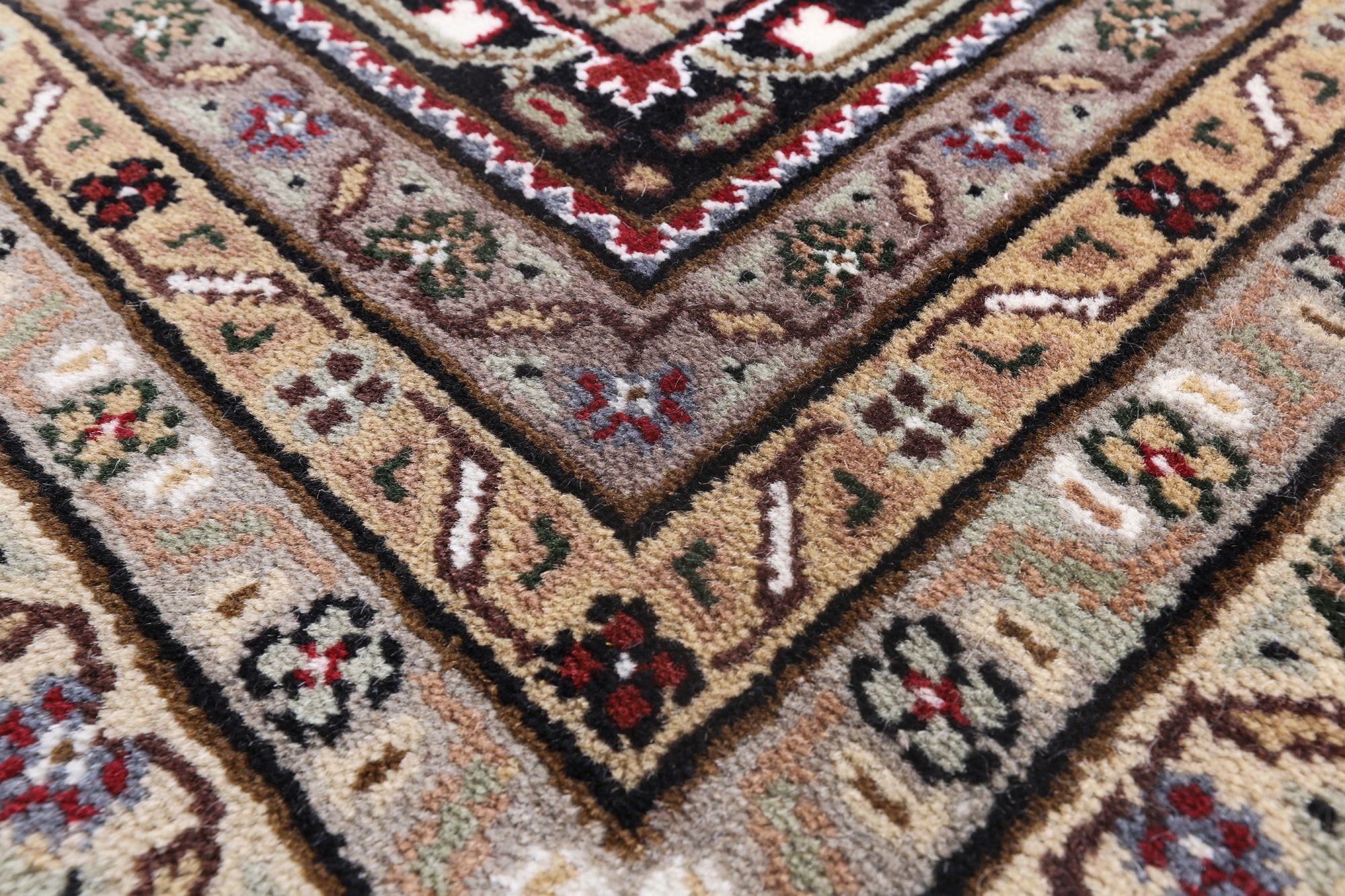 Tabriz Rugs are the most diverse and innovative in Persia due to its high-quality. Tabriz designs are hand-knotted with fine soft wool or silk, on a silk or cotton foundation, and may have either a thin silk, or wool pile. Their patterns consists of medallions surrounded by weeping willows, a cluster of trees and/or cypresses, arabesques (ornamental designs), and most popular, the four seasons used to depict the life of the Persian farmer. Their rich colors consist of red & blue with an ivory background, while newer Tabriz Rugs have softer colors such as green, blue and brown to correspond with modern interiors.