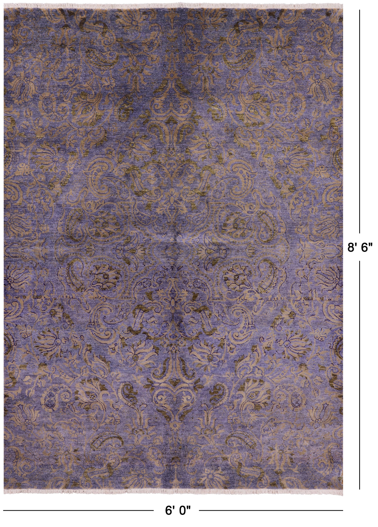 Purple William Morris Hand Knotted Wool Rug - 6' 0" X 8' 6"