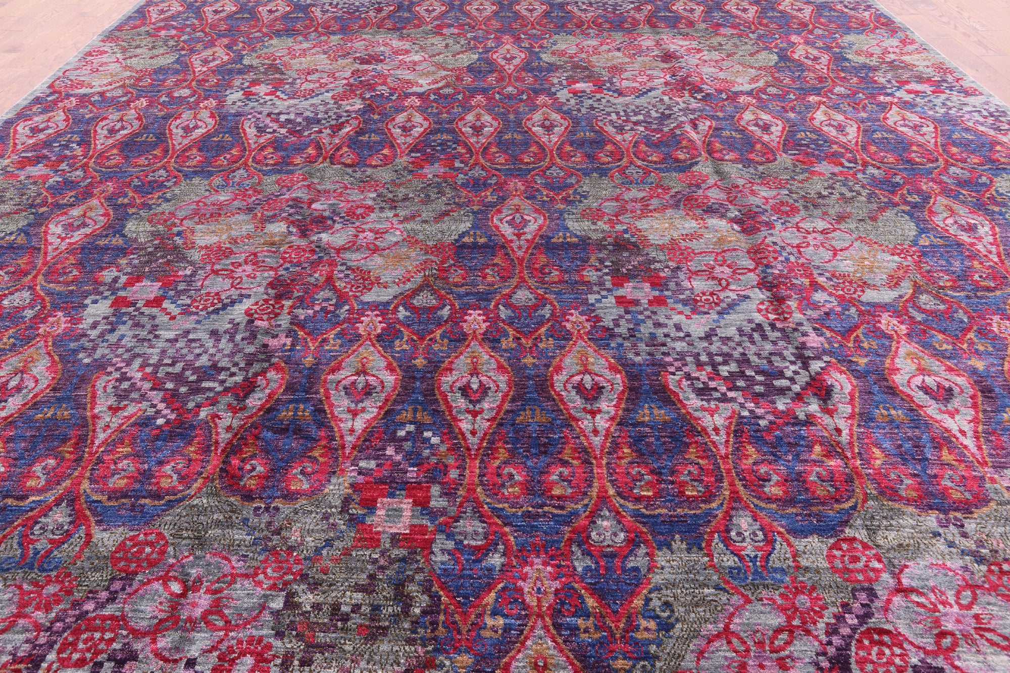 Art deco rugs are designed with both medallion as well as all-over designs. Colors are vibrant & energetic. Rich tones of magenta, turquoise, emerald, ruby and violet are common. Art Deco carpets are woven with pile & sometimes flat woven without pile, using various materials such as silk, wool, and cotton.