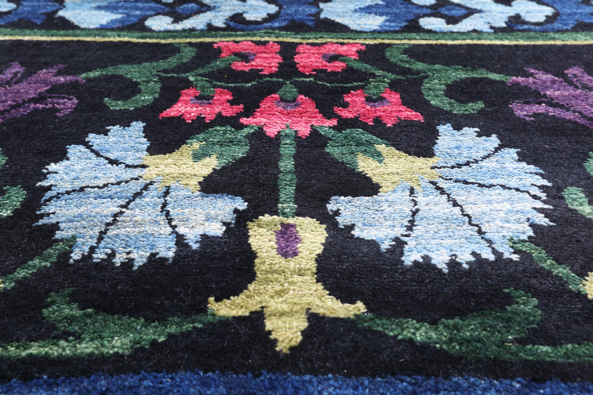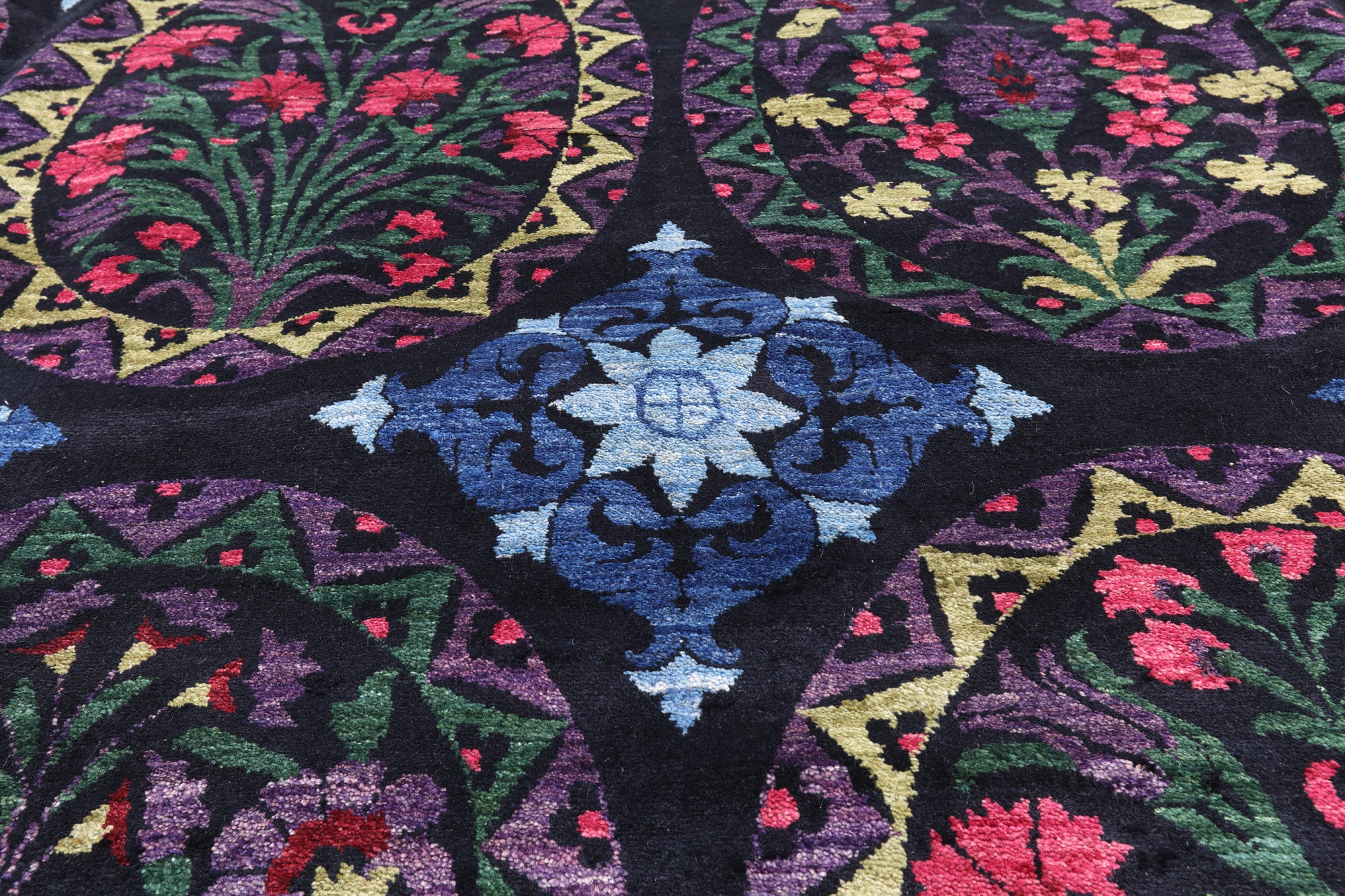 William Morris designs are inspired by the beauty of nature. Among them are willow trees, ginkgo leaves, thistles, meadow, floral details enhanced with vine and leaf accents. William Morris rugs are woven with high quality of wool, silk or both using bright colors.