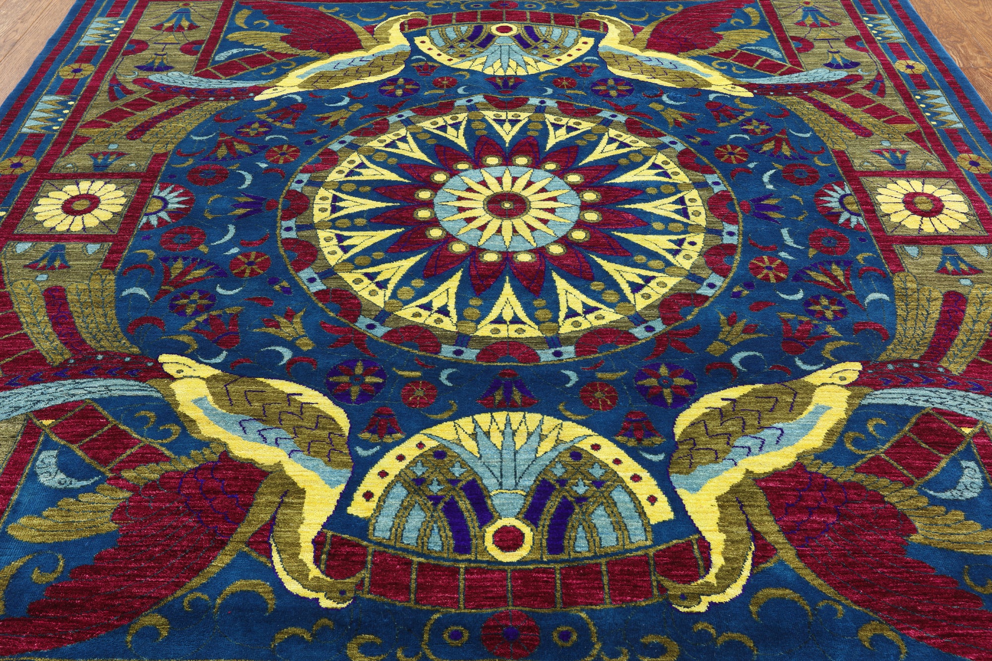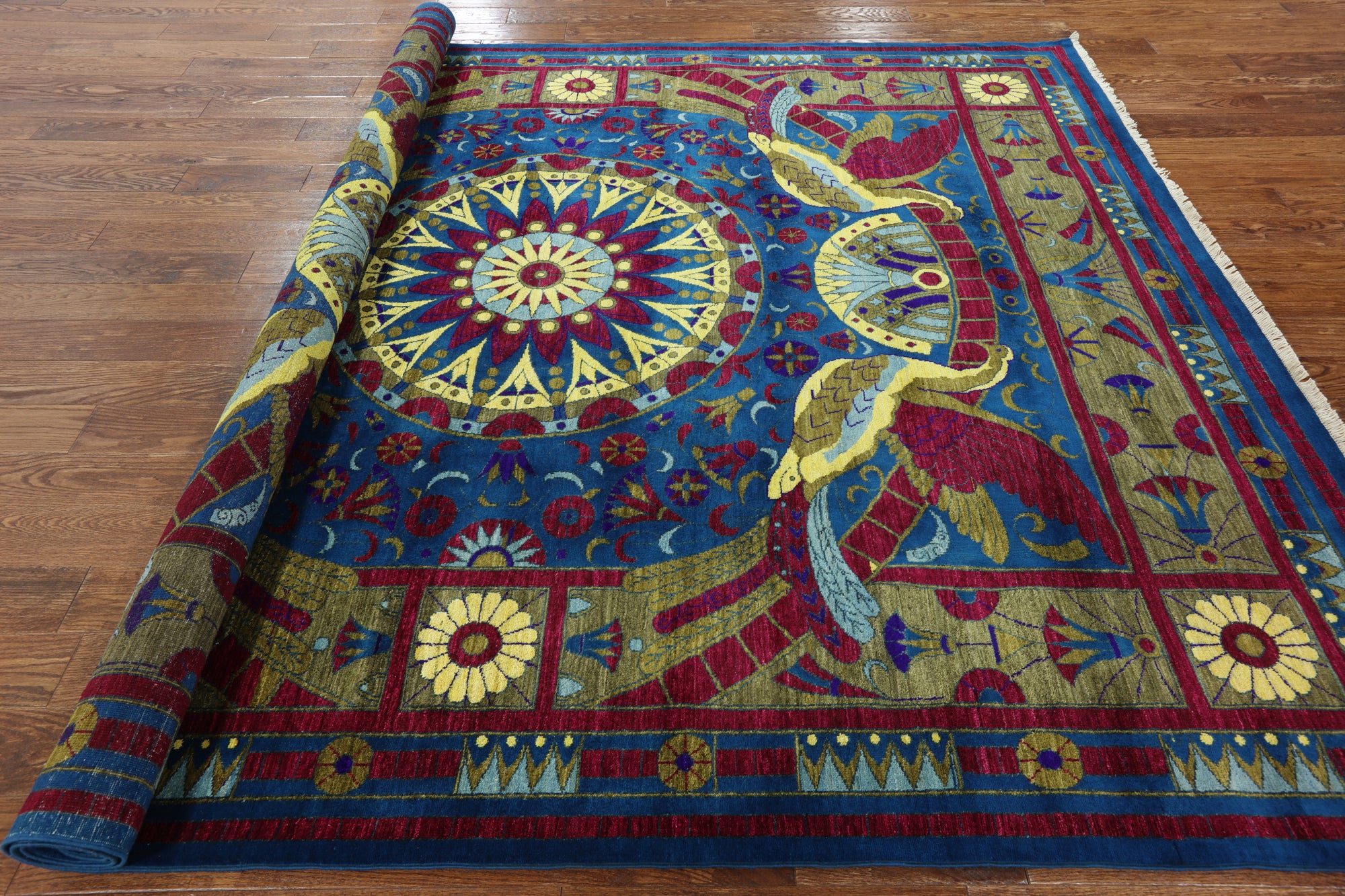 Peacock William Morris Hand Knotted Wool Area Rug - 8' 2" X 9' 11"