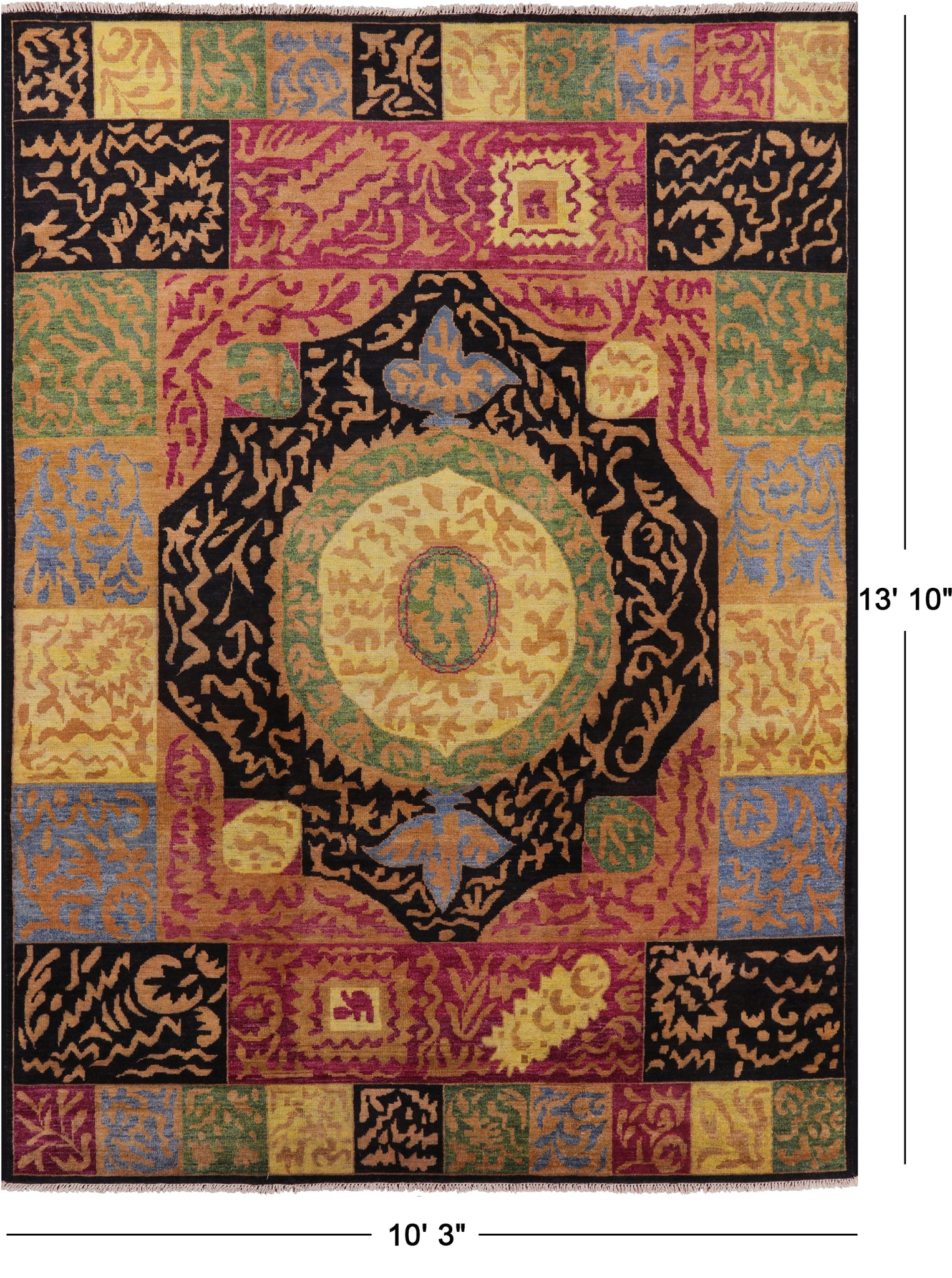 Black Persian Gabbeh Hand Knotted Wool Area Rug - 10' 3" X 13' 10"