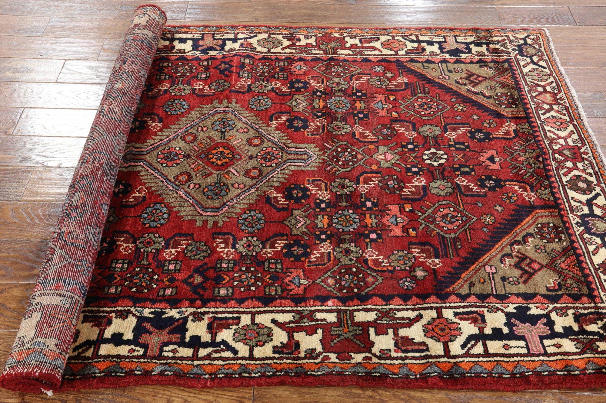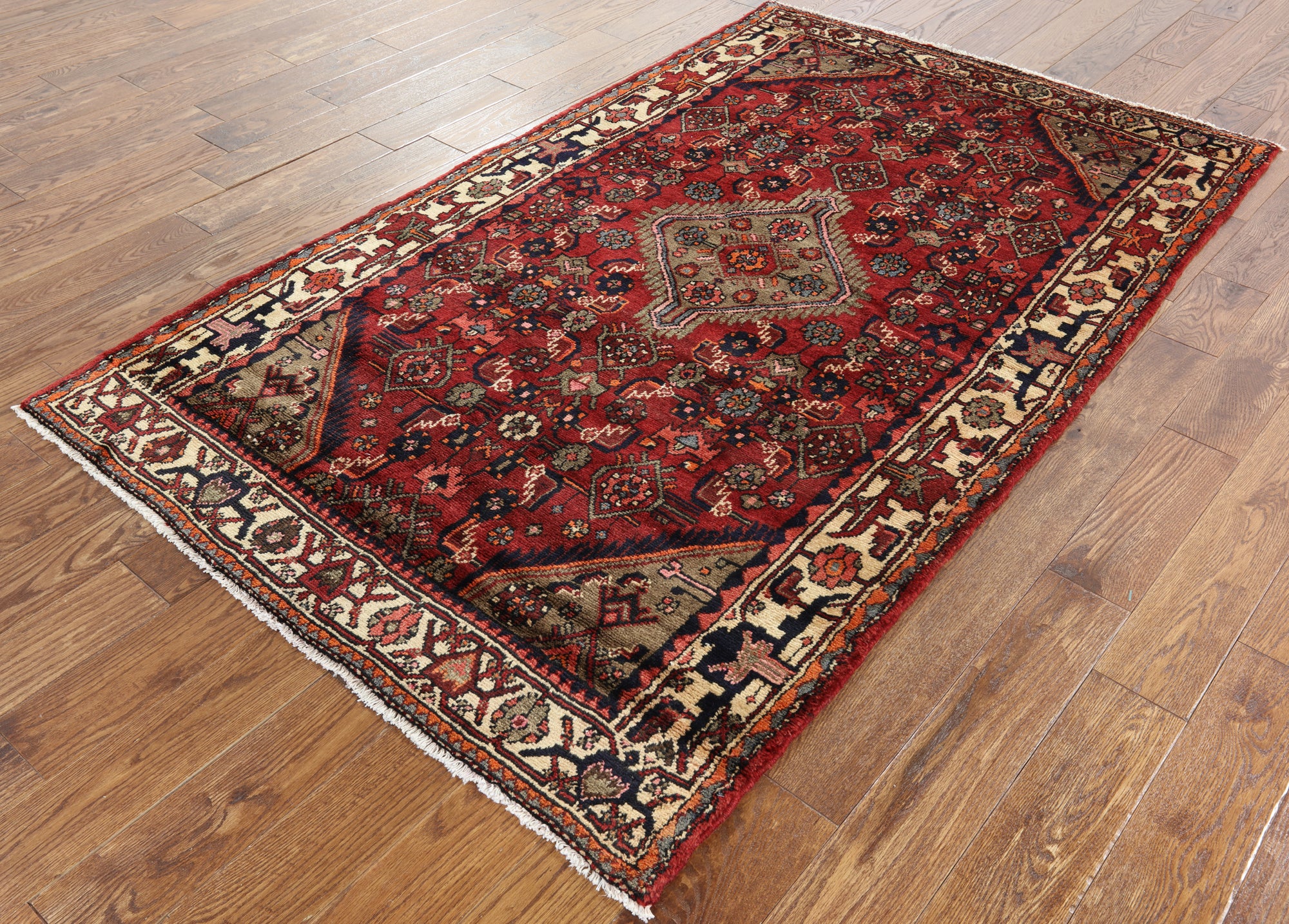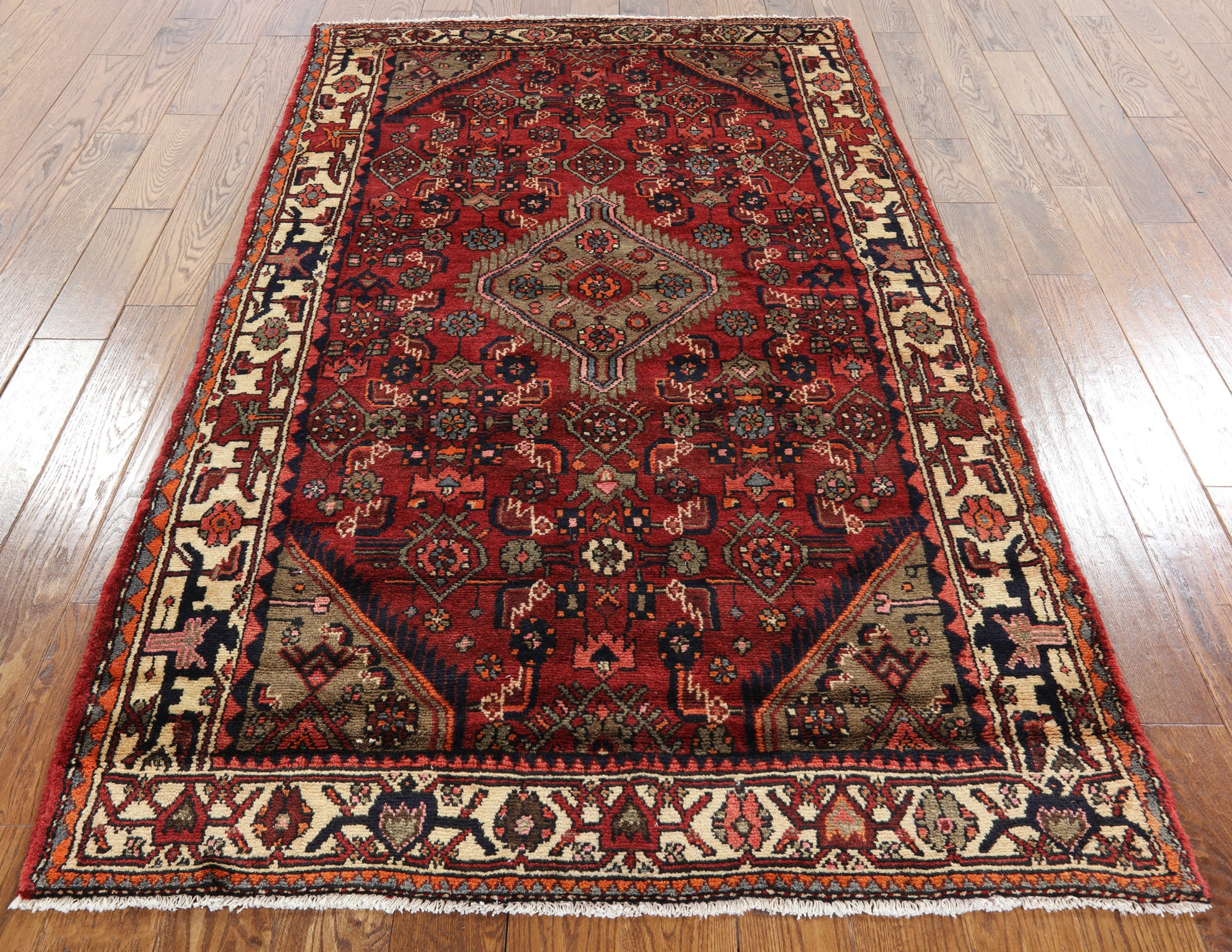 Easily recognizable for their typical patterns and sizes, Hamadan rugs are durable and made of high quality wool. Their design patterns are mostly geometric, but vary with medallion patterns. The colors which dominate their color schemes are, indigo blues, reds, and many more.