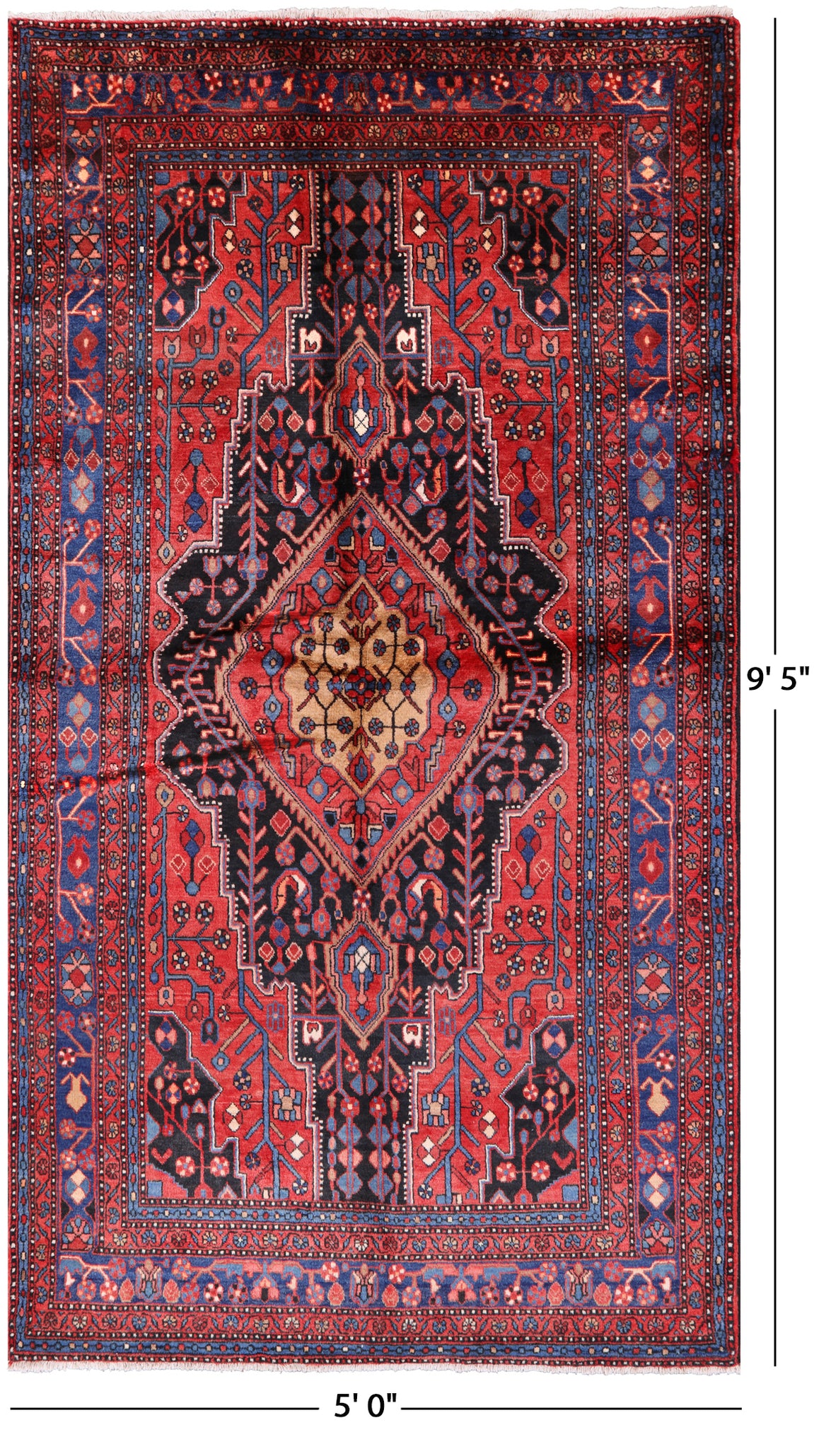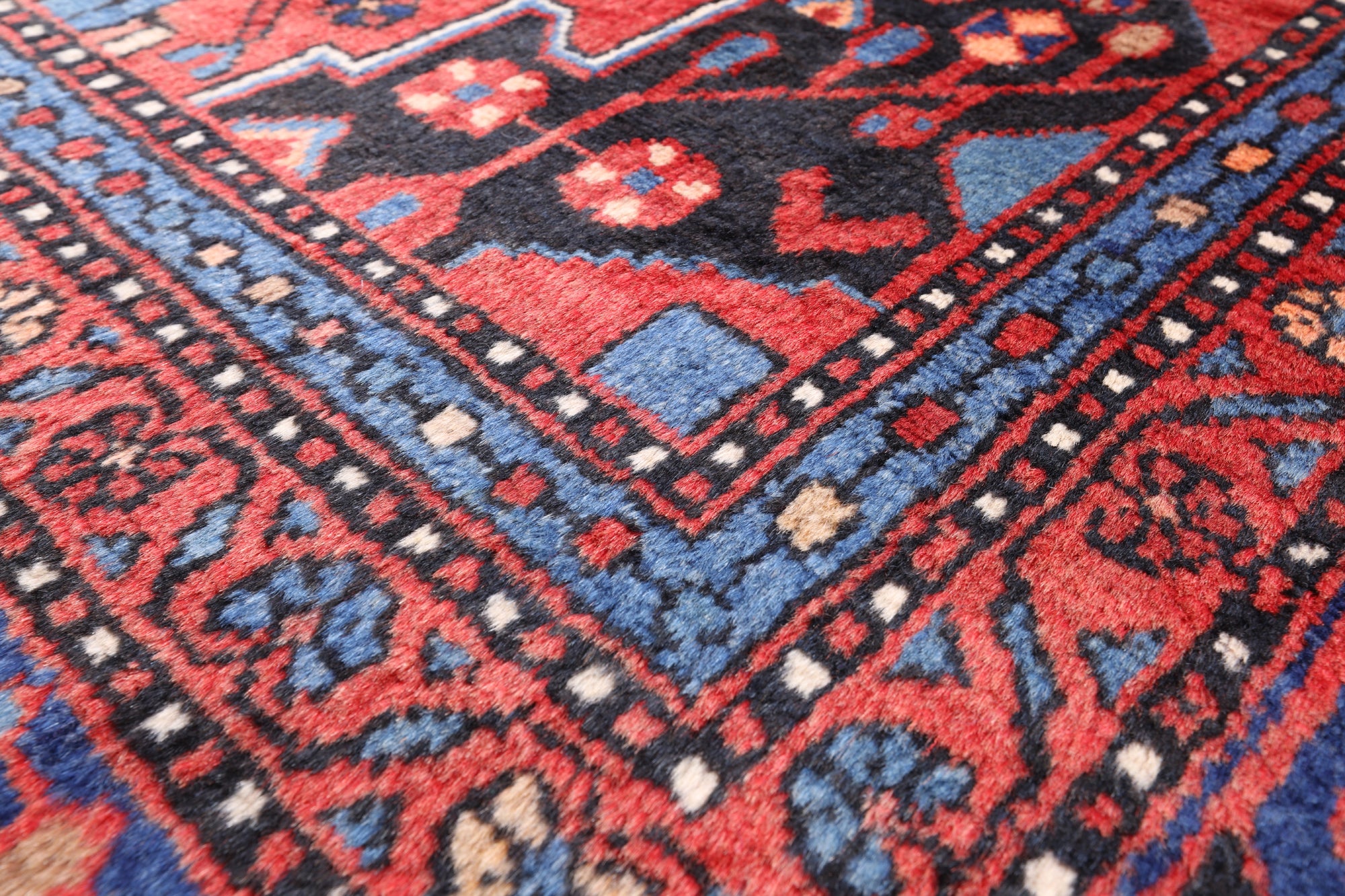 The quality of Nahavand rugs is very high this is thanks to the wool that is used to create these beautiful durable rugs. Most of the design elements in the Nahavand rugs are geometrical motifs. They often have β€œleaf’ like medallions in the center with flowers and twigs all around the background. The dominating colors for these rugs are often pale rust reds, beige, and many more.