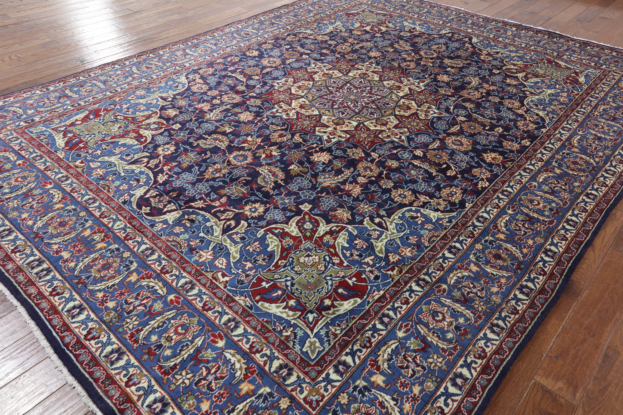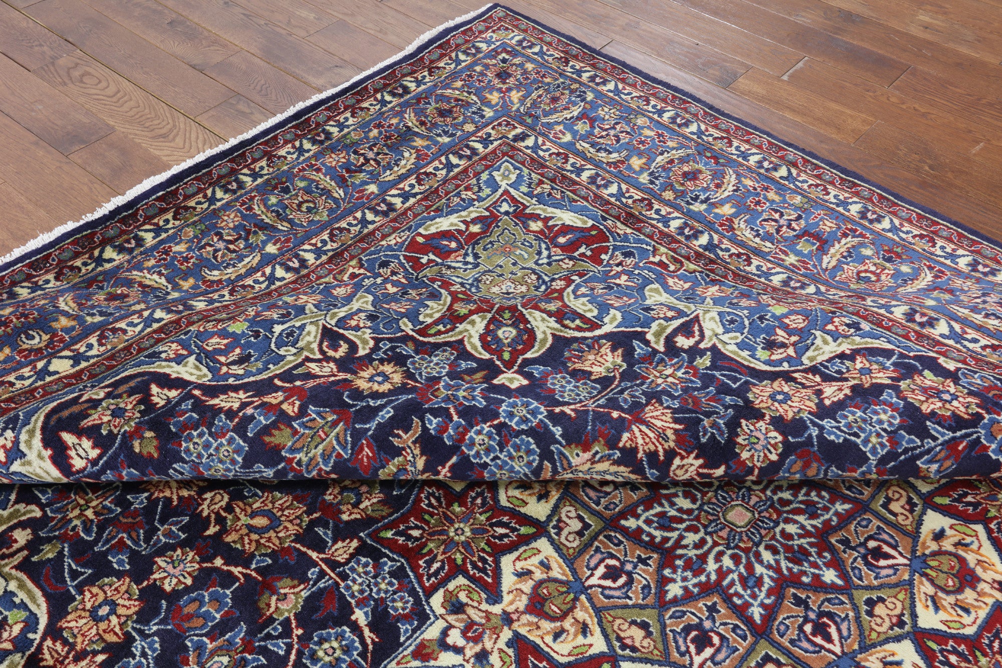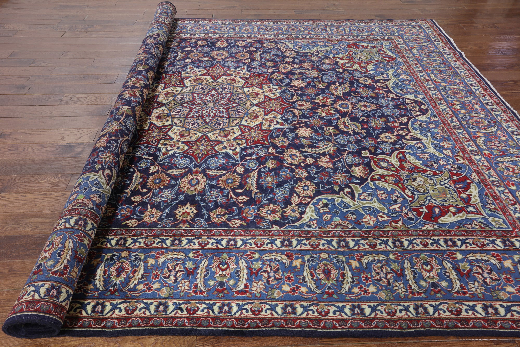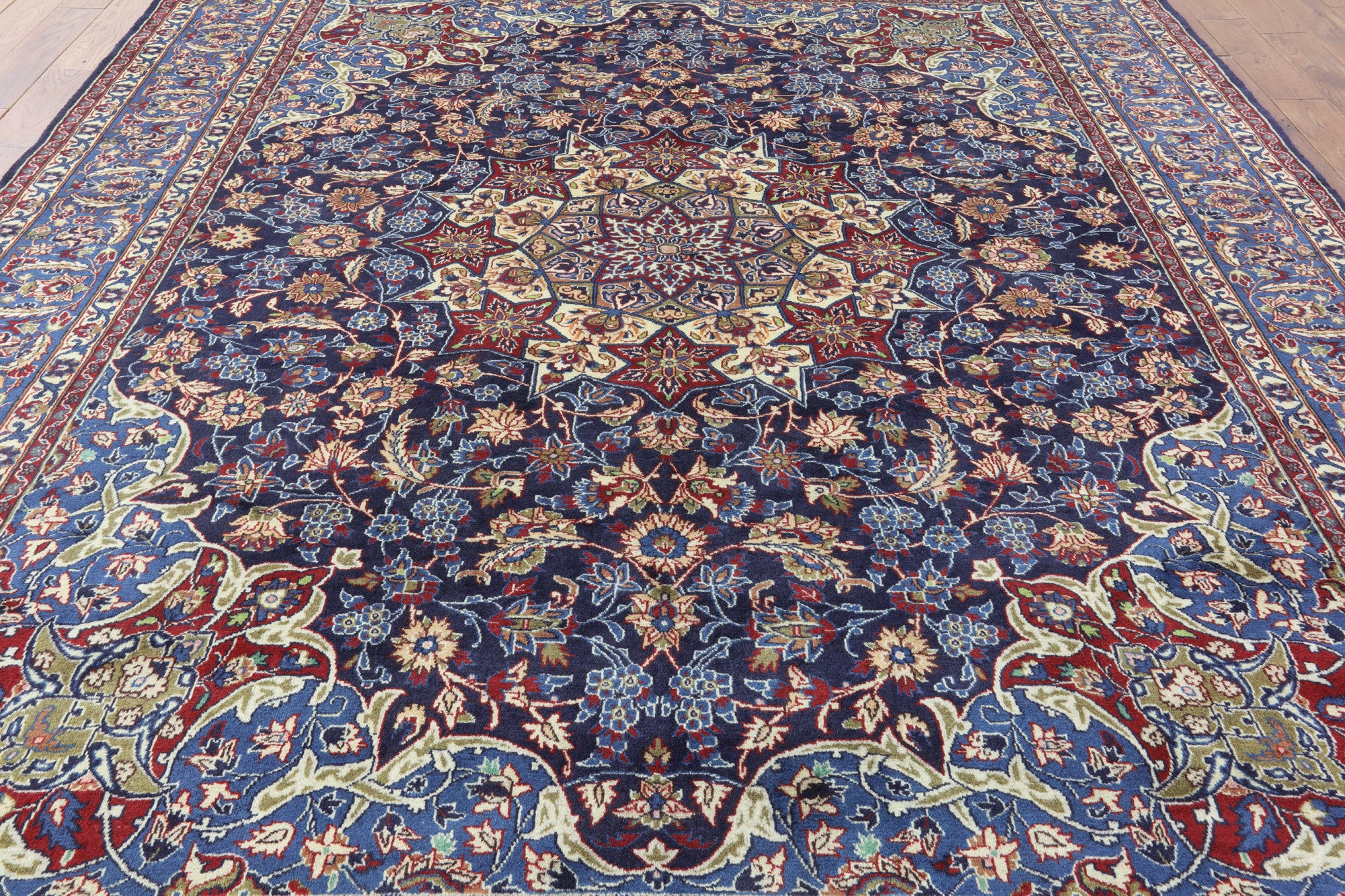 The Isfahan rugs, are made with exceptionally good quality wool. They use traditional motifs inspired by architectural tiles that once decorated the historical buildings from which these rugs originated in. When it comes to high class designs the composition, patterns, and materials of Isfahan meets those expectations. The motifs usually consist of medallions with palmetts and also figural motifs. Isfahan rugs have an extremely high knot density and are woven with silk and golden threads, which give them their luxurious look.