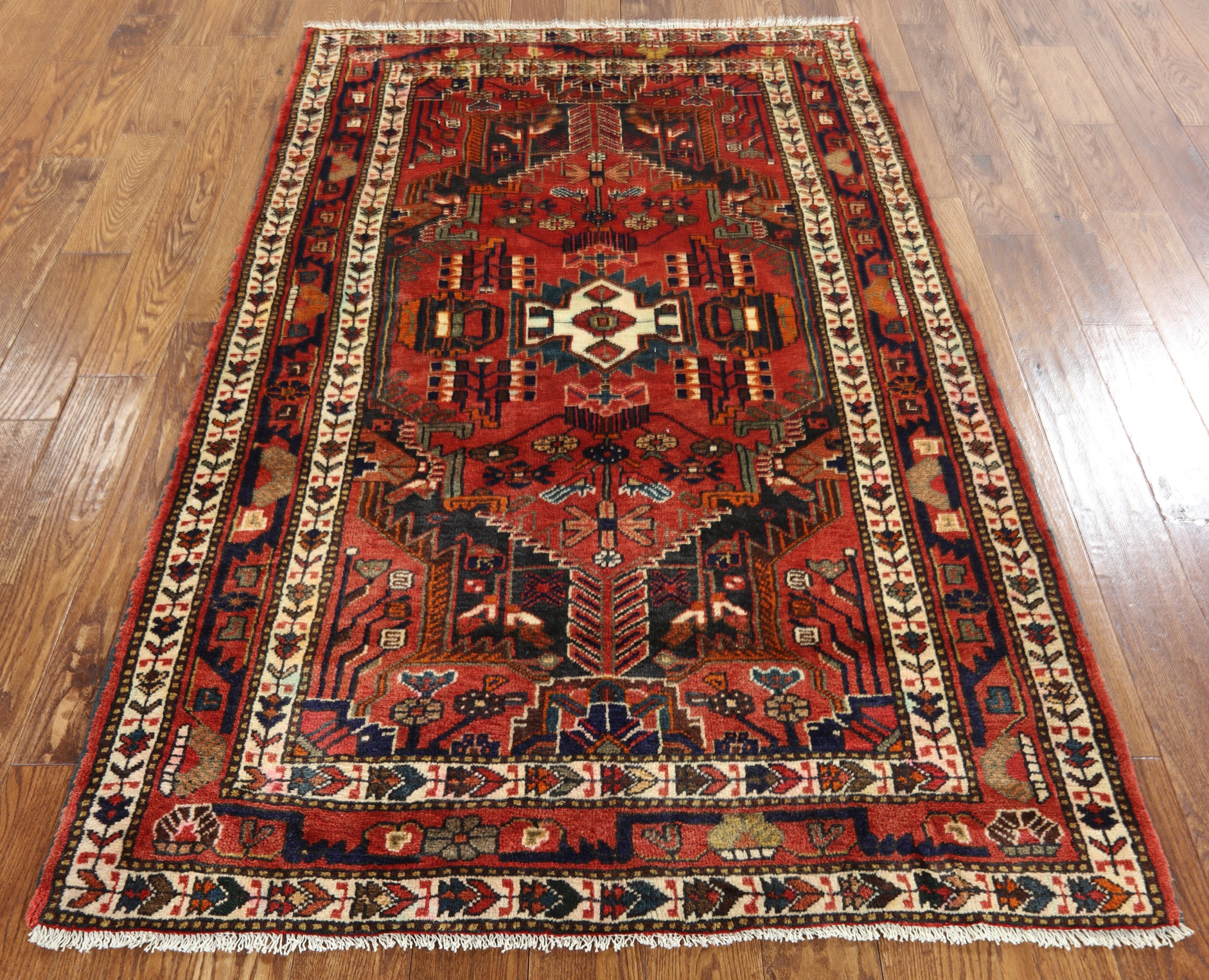 The quality of Nahavand rugs is very high this is thanks to the wool that is used to create these beautiful durable rugs. Most of the design elements in the Nahavand rugs are geometrical motifs. They often have βleafβ like medallions in the center with flowers and twigs all around the background. The dominating colors for these rugs are often pale rust reds, beige, and many more.