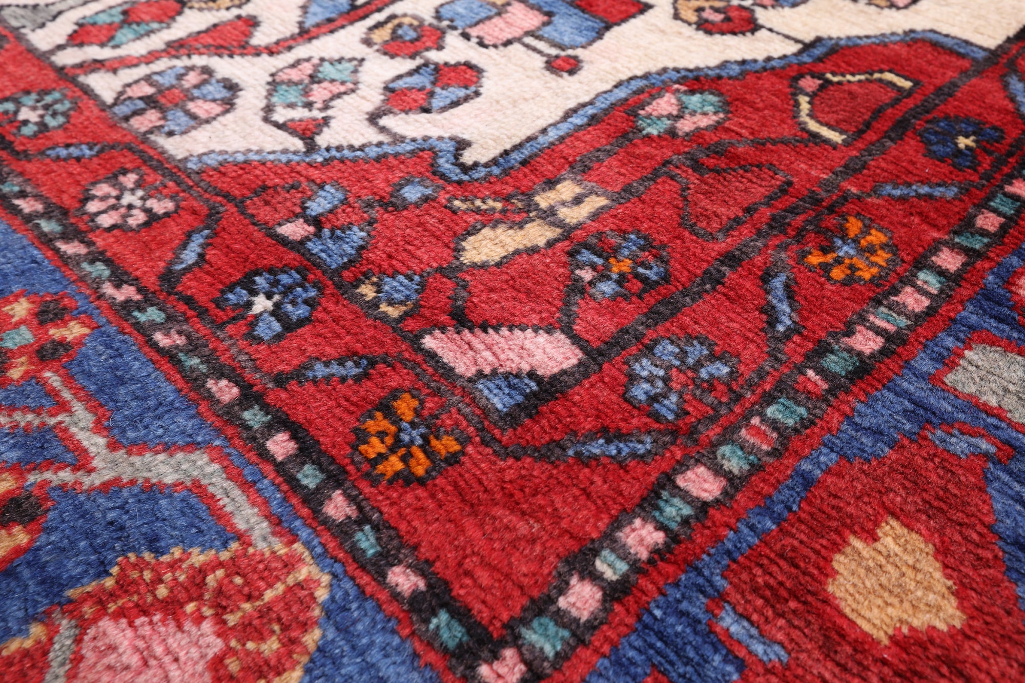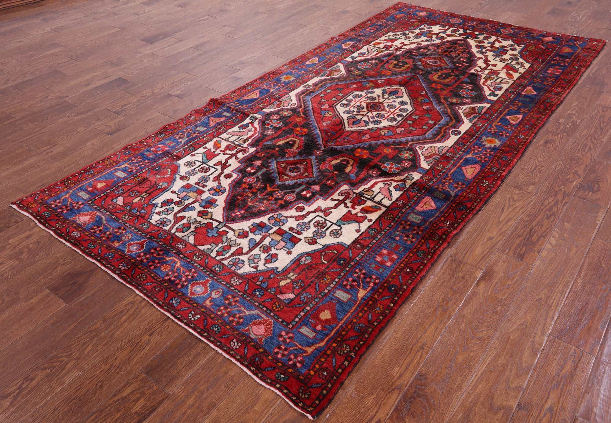 The quality of Nahavand rugs is very high this is thanks to the wool that is used to create these beautiful durable rugs. Most of the design elements in the Nahavand rugs are geometrical motifs. They often have β€œleaf’ like medallions in the center with flowers and twigs all around the background. The dominating colors for these rugs are often pale rust reds, beige, and many more.