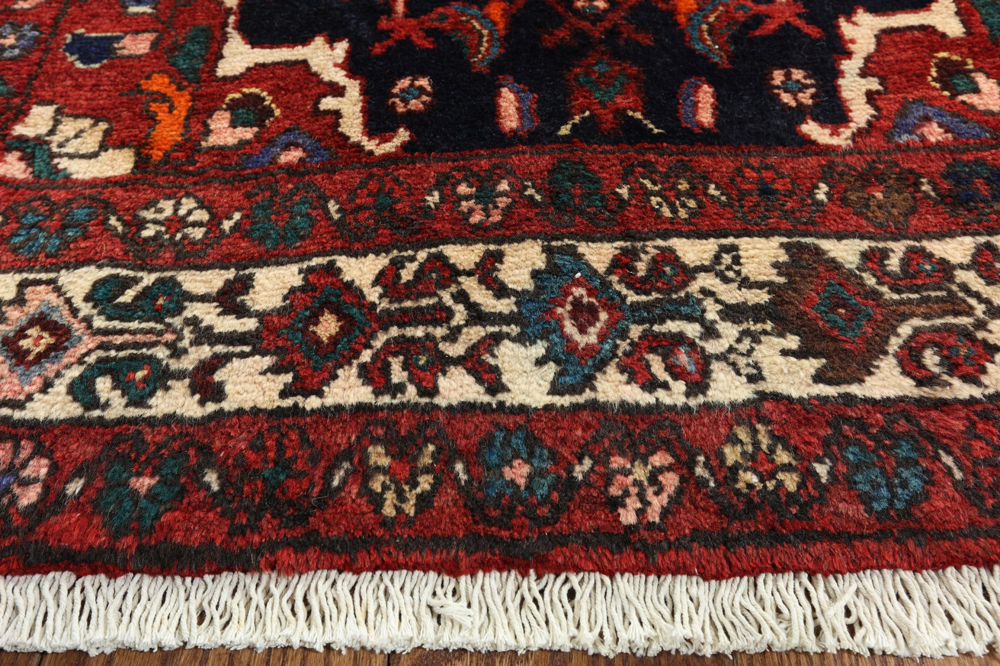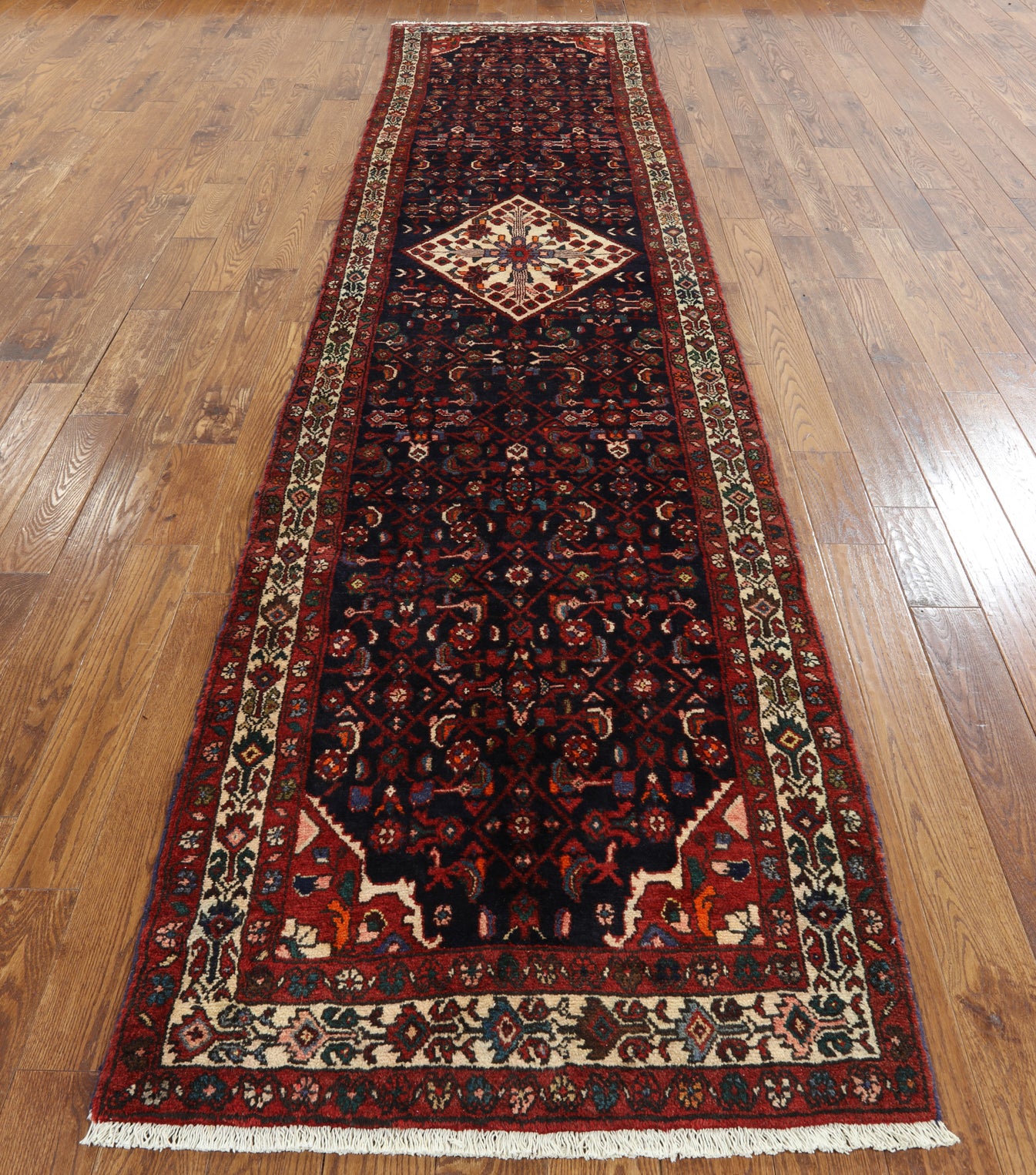 Easily recognizable for their typical patterns and sizes, Hamadan rugs are durable and made of high quality wool. Their design patterns are mostly geometric, but vary with medallion patterns. The colors which dominate their color schemes are, indigo blues, reds, and many more.