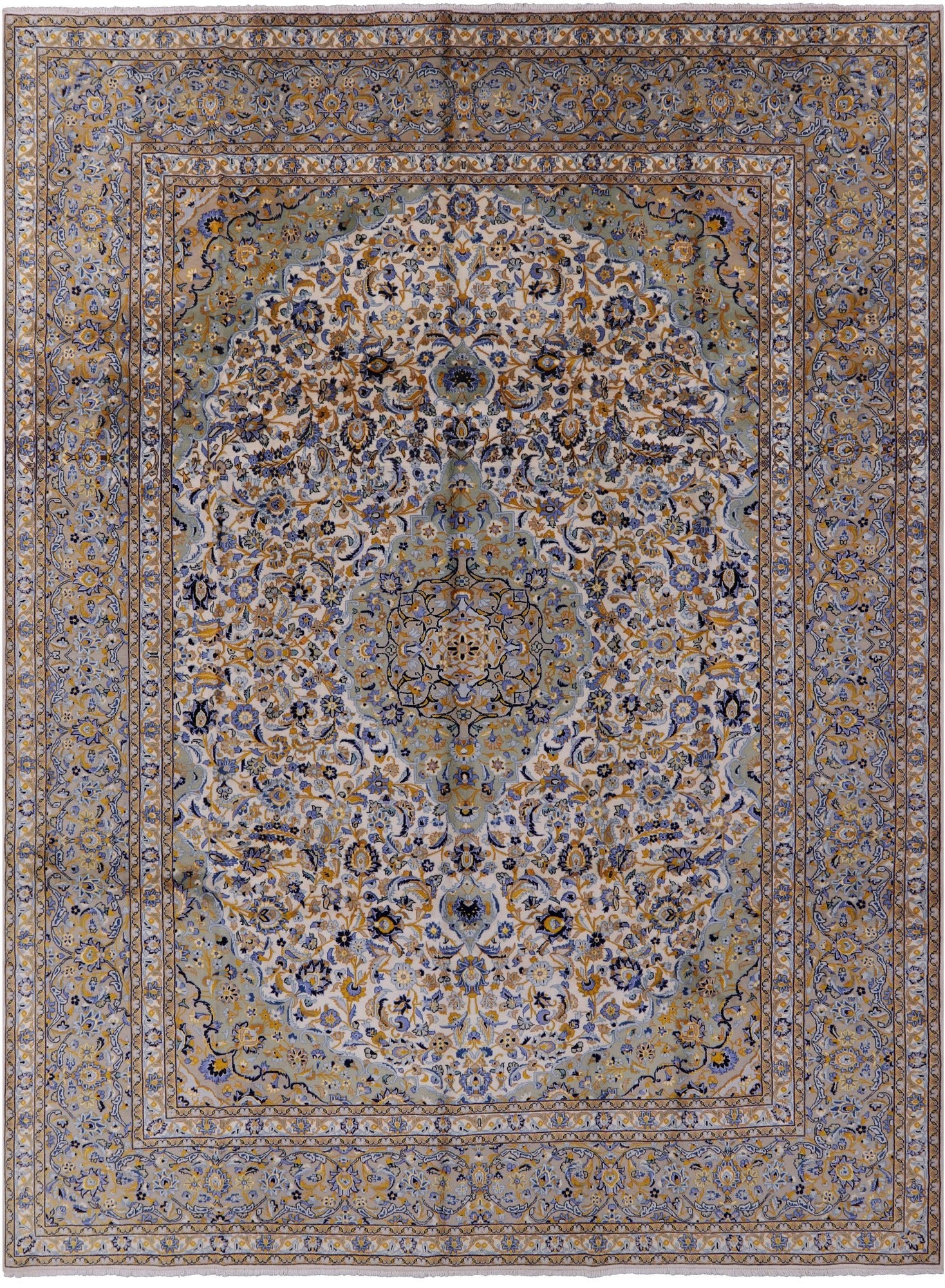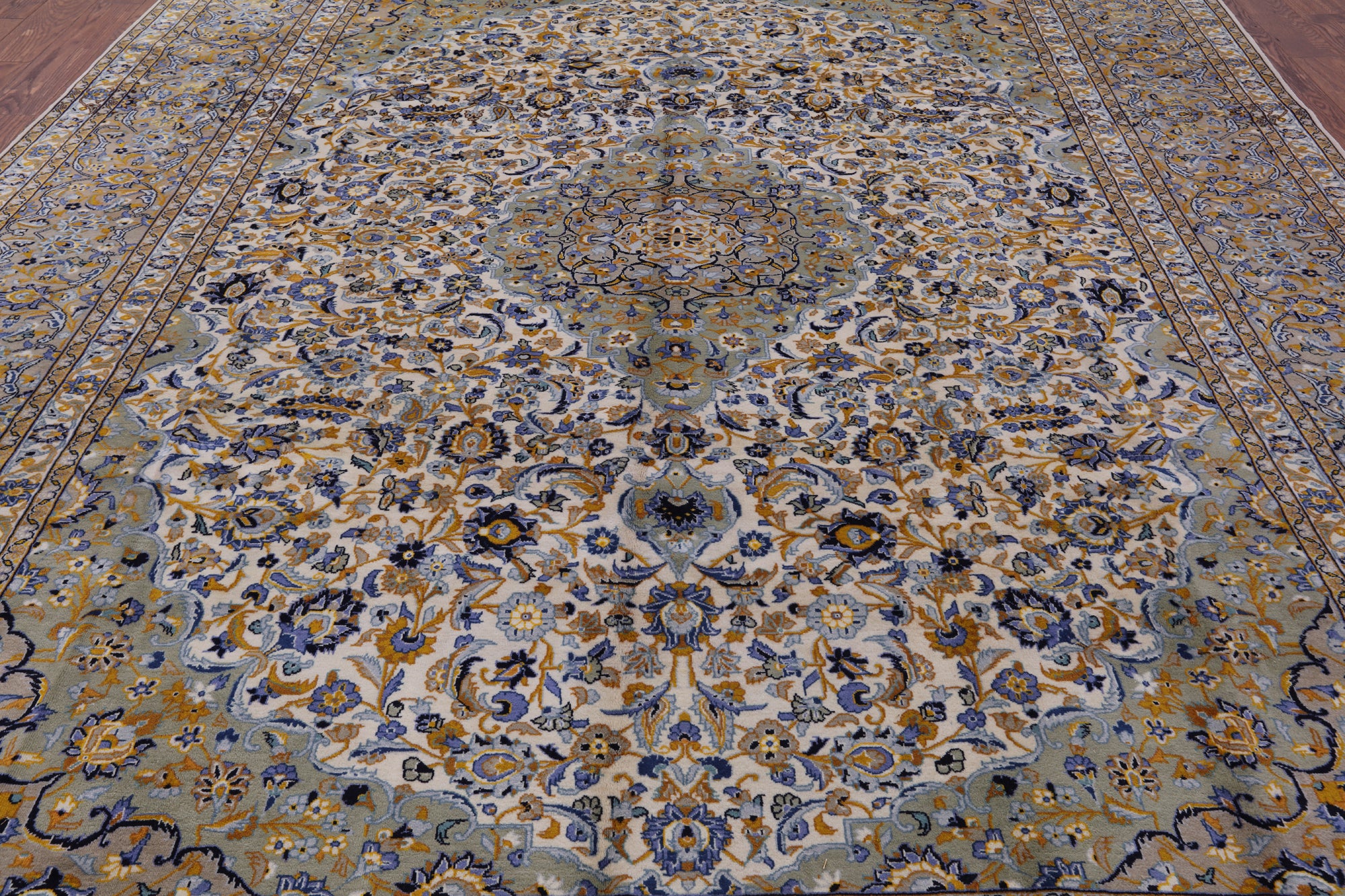 Ivory New Authentic Persian Kashan Rug - 9' 9" X 13' 0"
