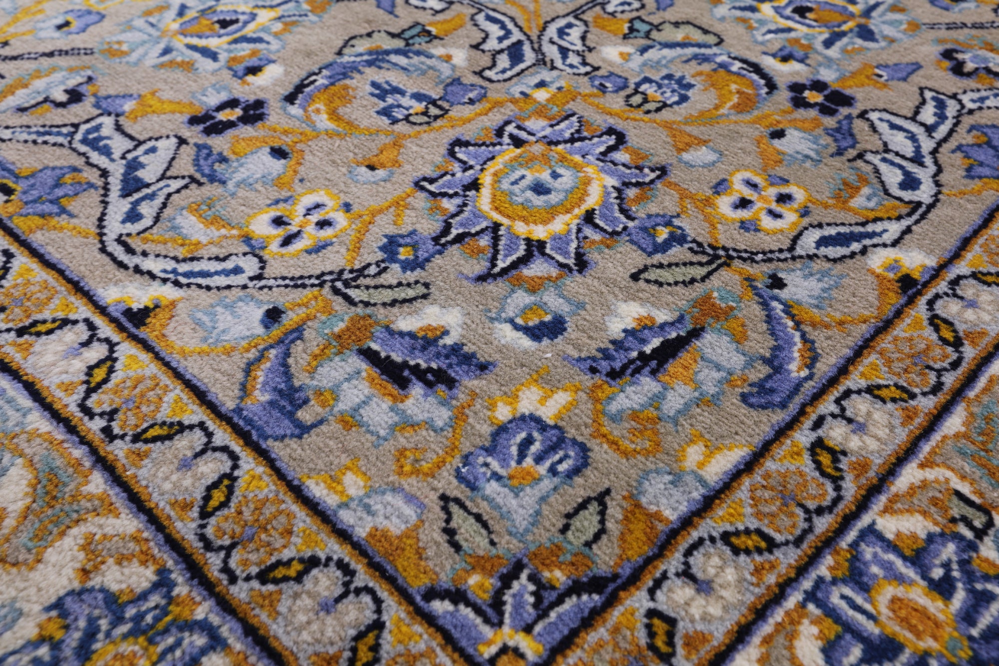 Kashan rugs are amongst the most famous of all the Persian Rugs. They have high quality weaves and their knot count is extremely tight and high. Traditionally Kashan rugs have a central medallion on a red field with navy and ivory boarders. There designs do have silk incorporated into them which highlights the designs details. The wool on these rugs is soft and the pile is tightly knotted.
